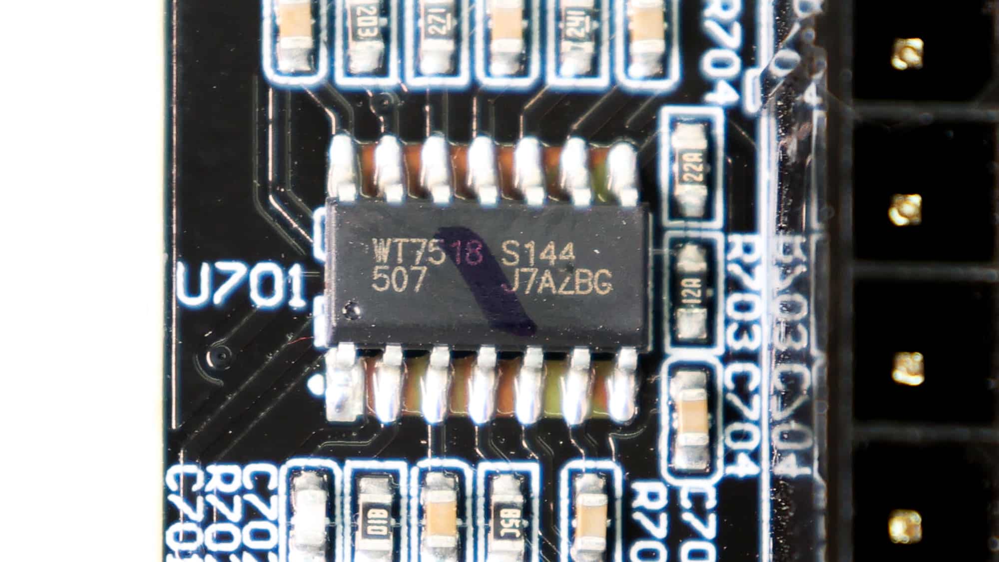 The supervisor IC is a Weltrend WT7518 (OVP, UVP, OCP, PG). It is installed on the modular board.