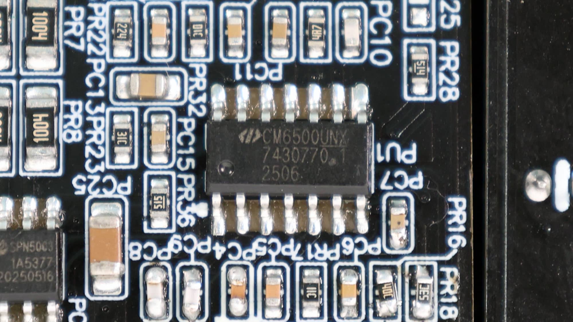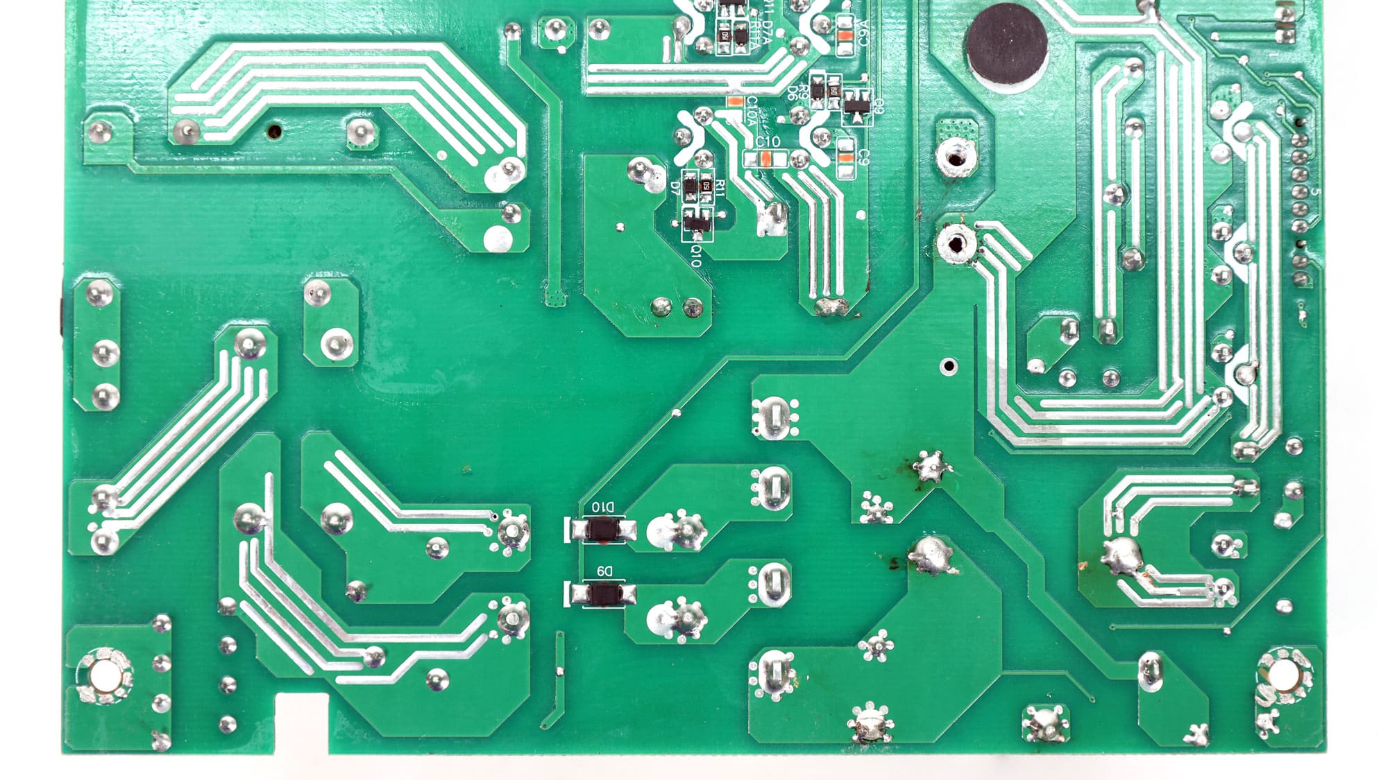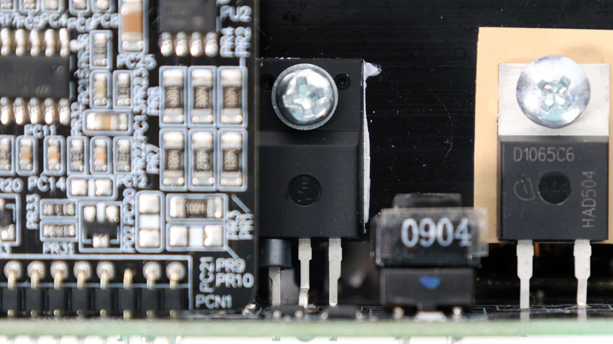 Soldering quality is good in most areas. The area under the 12V FETs is the “worst”- looking, but it will in no way affect the unit’s performance or reliability.