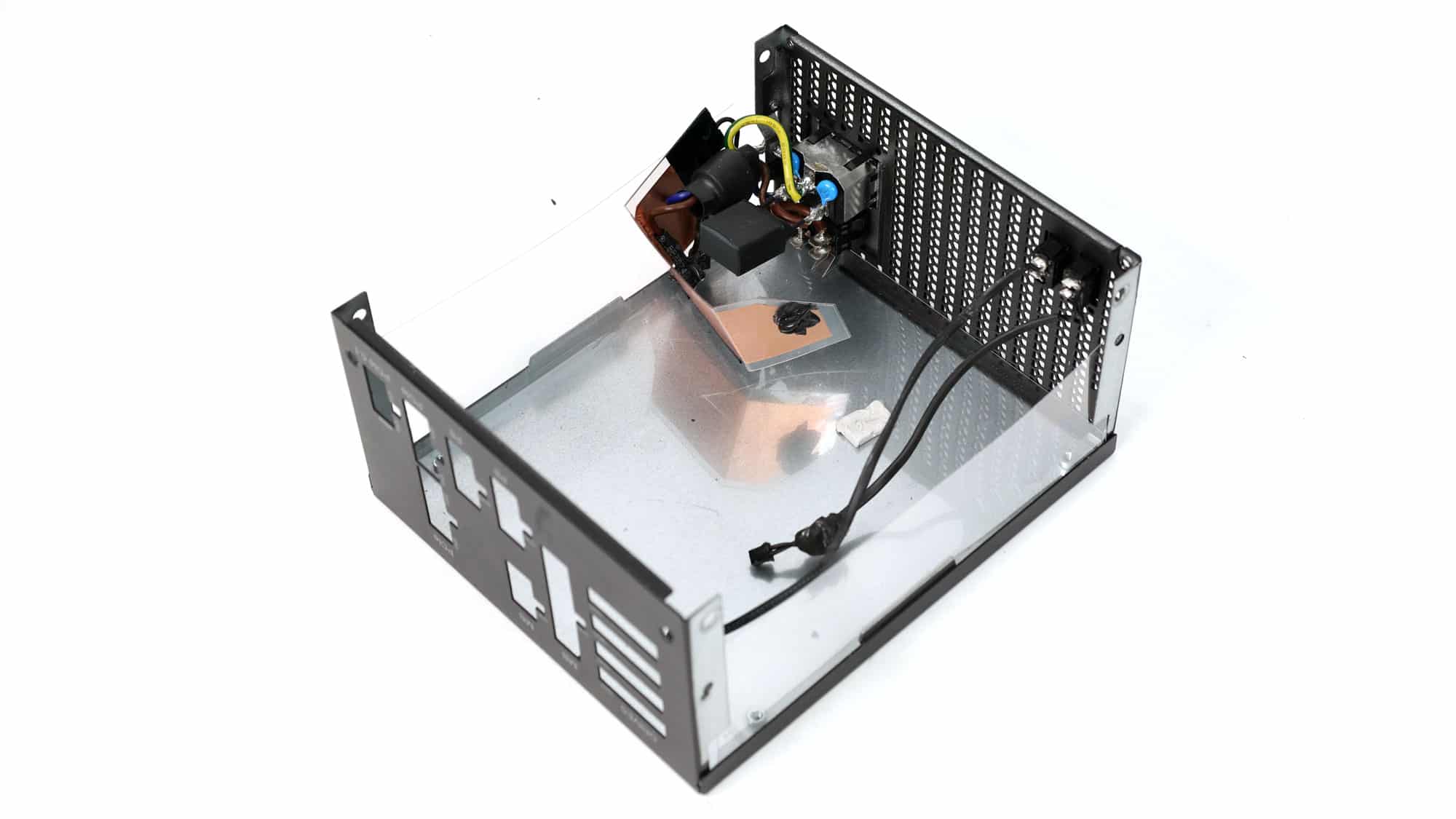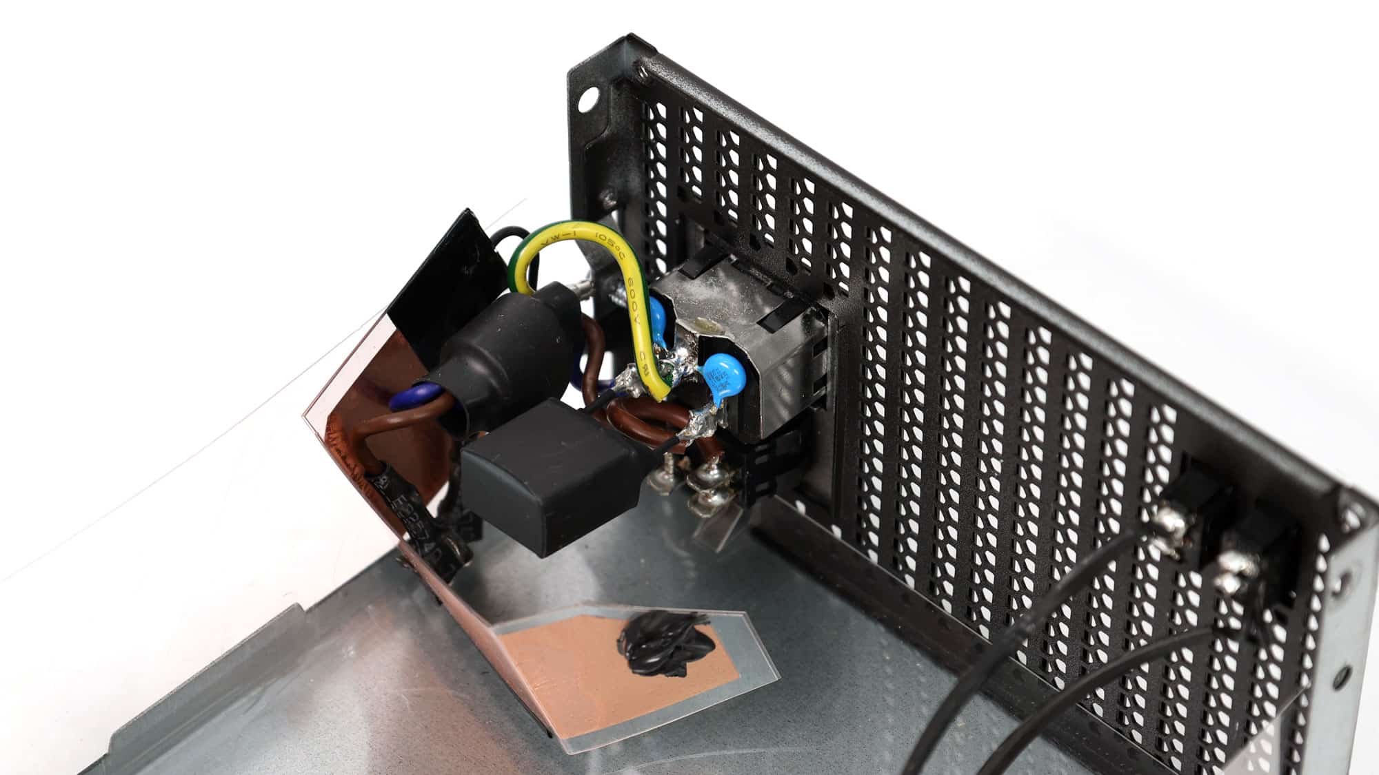 Many polymers and a large electrolytic capacitor on the modular panel’s face form an additional ripple-filtering layer.