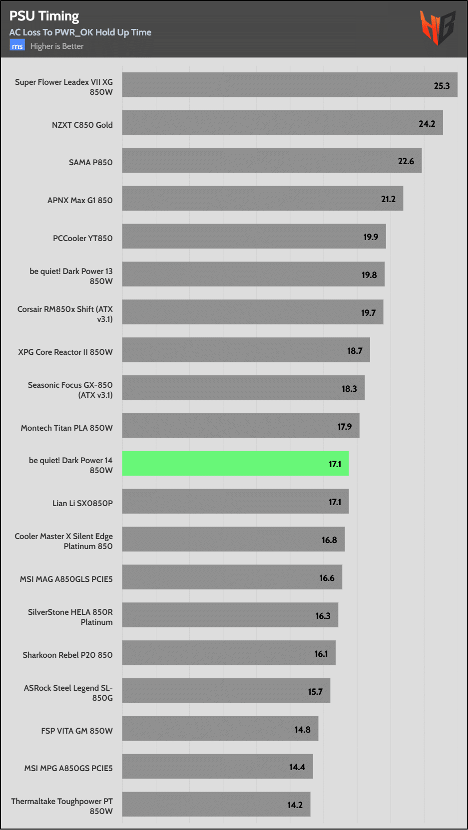 The hold-up time is longer than 19ms, and the power ok signal is accurate and above 16ms.