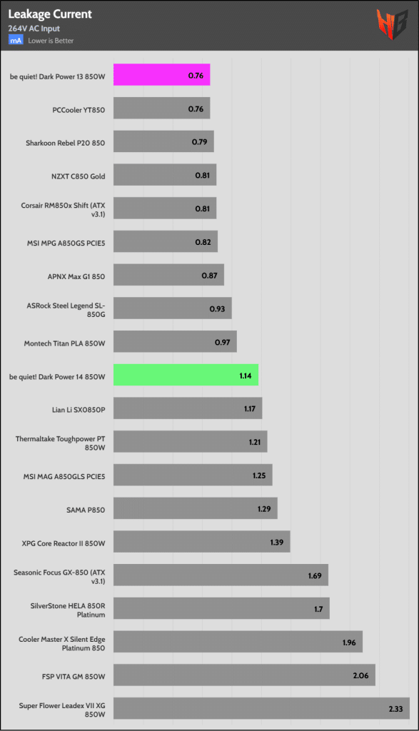 Leakage current graph is for the 1000W models so wrong graph used here, too bad your graphs don’t include Pure Power 13 M , that model seems to be a better value and maybe better unit than this.