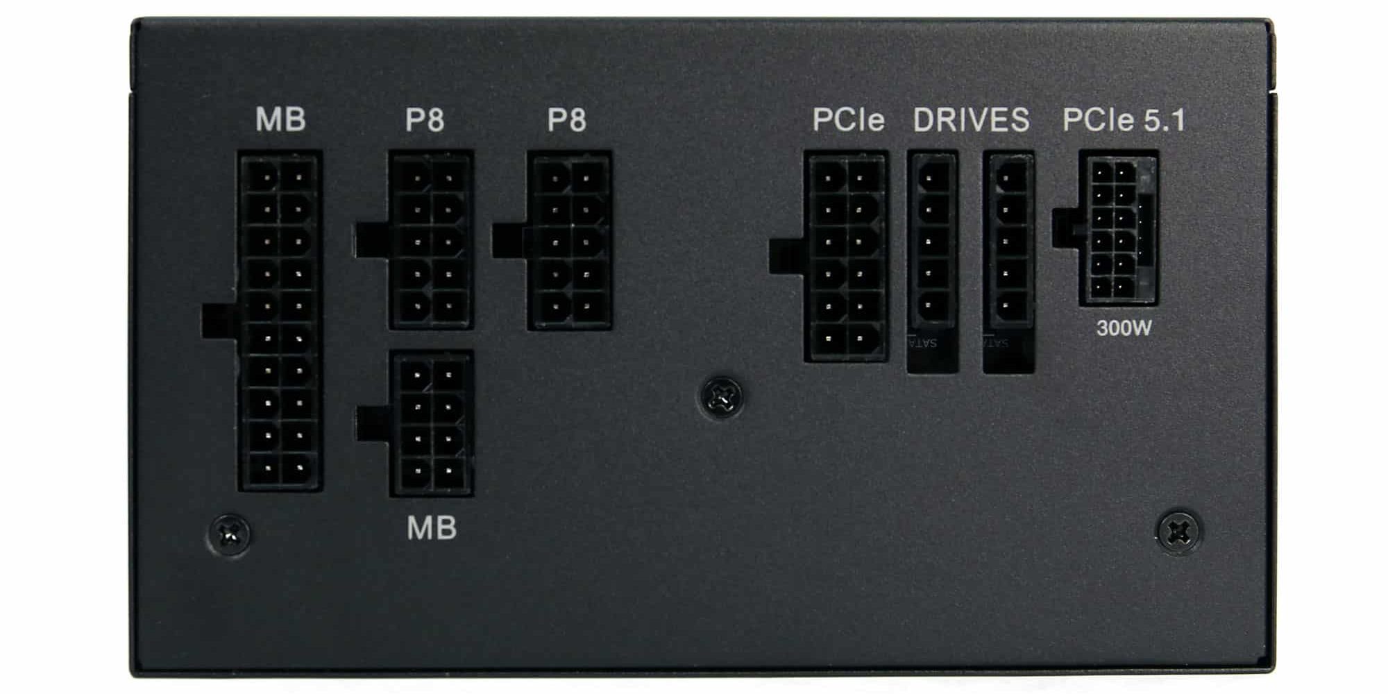 The modular panel features eight sockets, including a native 12V-2×6 header with a maximum power output of 300W.