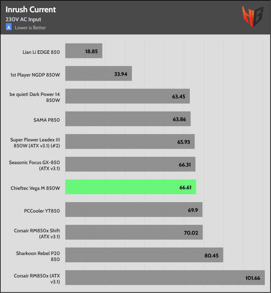 Just retested the Chieftec PSU for inrush current, as expected values are way lower. I cannot say about the GEX Pro 650 since I haven’t tested it or at least I don’t remember doing so, my team 🙂