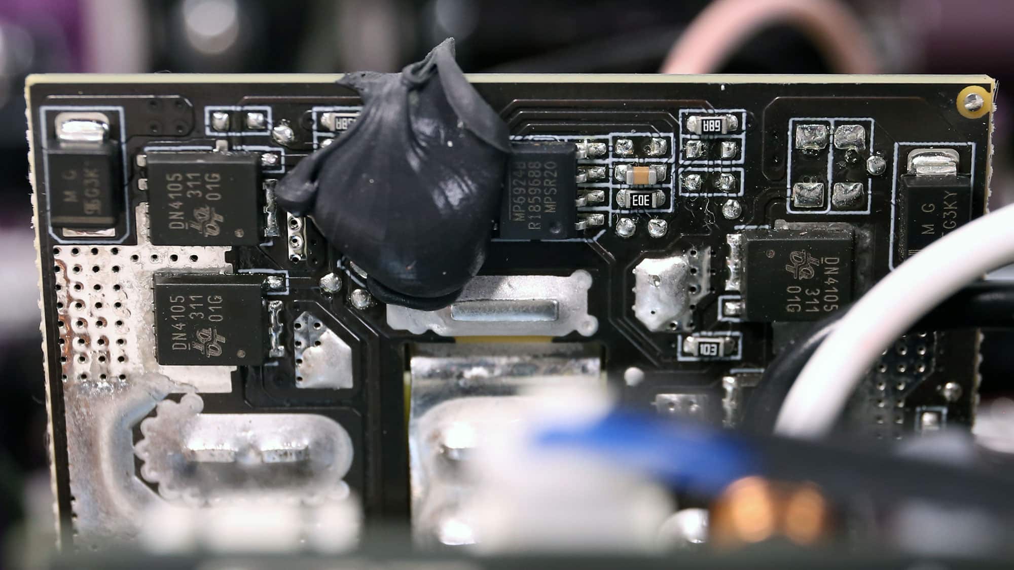 The soldering quality is impeccable, and the FETs Lite-On used are high-quality, especially on the primary side. I cannot say the same for the TK (Toshin Kogyo Co., Ltd.) caps, which might be Japanese on paper but are not up to the quality of other Japanese manufacturers (e.g., Chemi-Con and Rubycon). Besides electrolytic caps, many polymer ones handle ripple filtering on the secondary side.