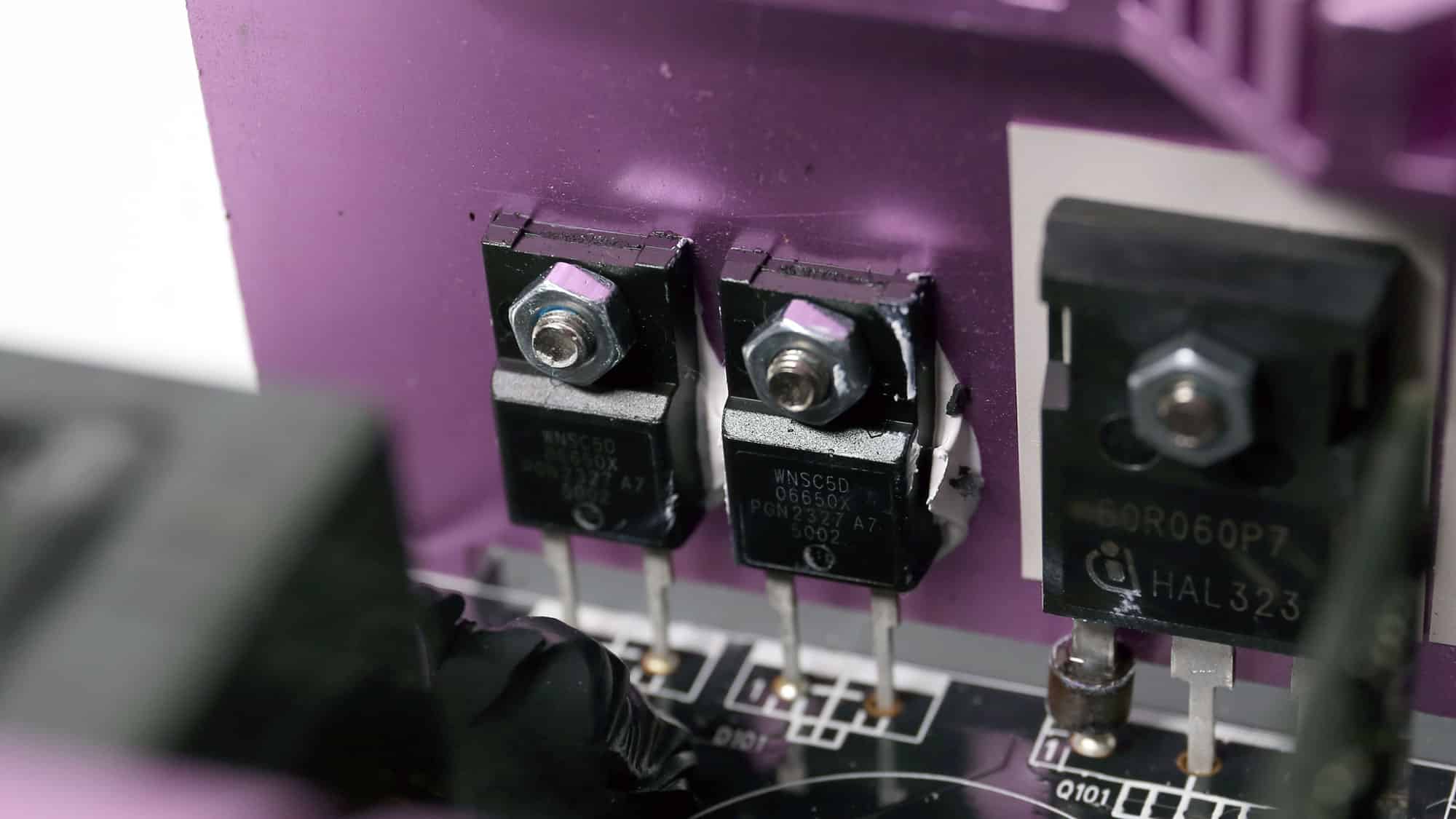 2x Infineon IPA60R060P7 (650V, 30A @ 100°C, Rds(on): 0.06Ohm)