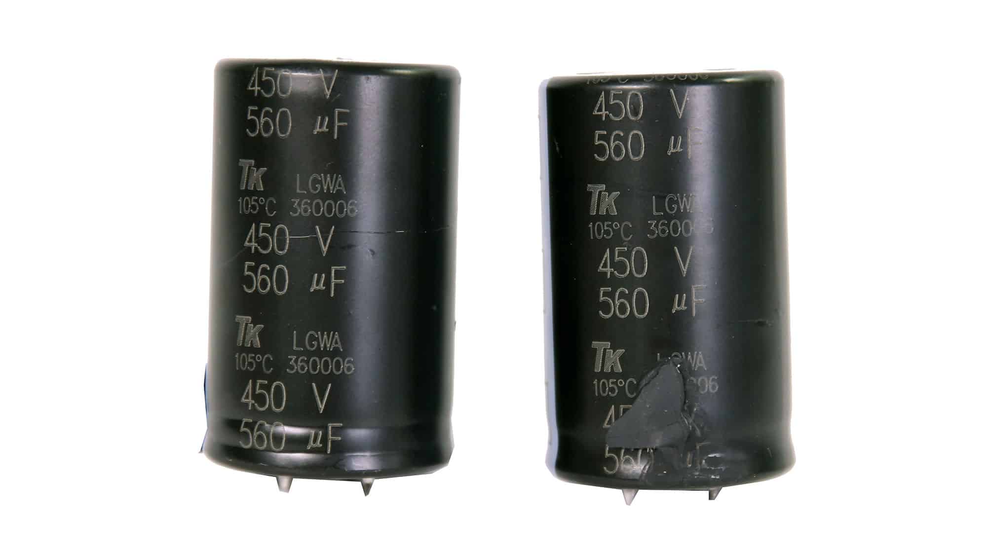 2x TK (450V, 560uF each or 1120uF combined, 3000h @ 105°C, LGWA)