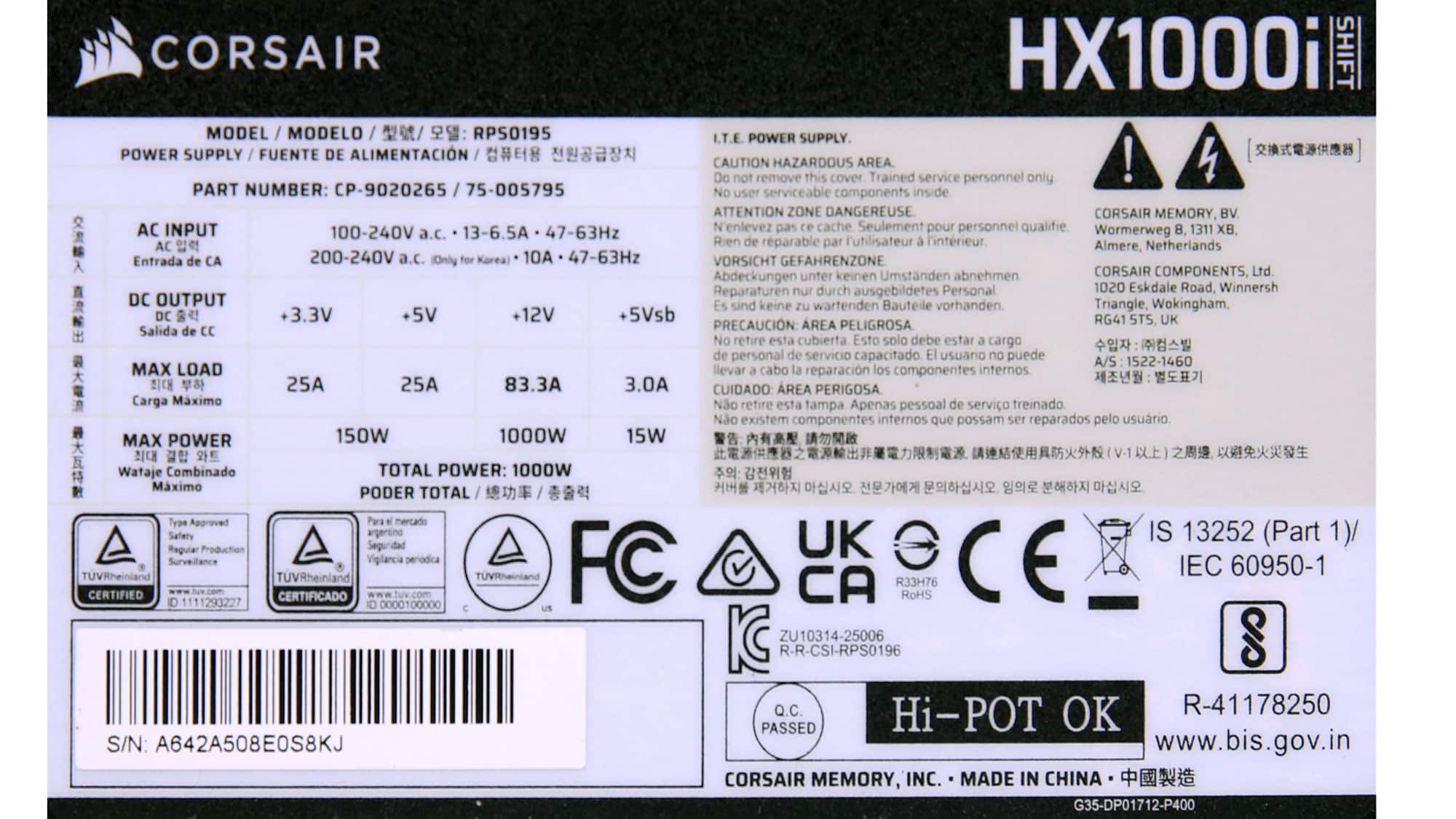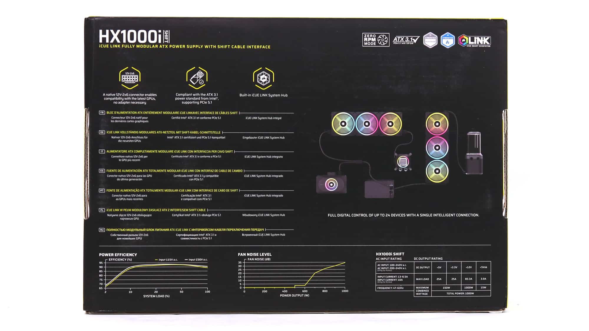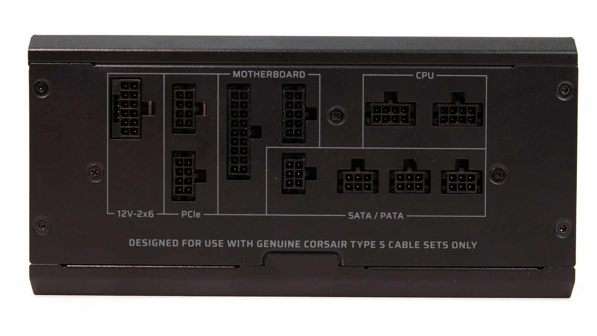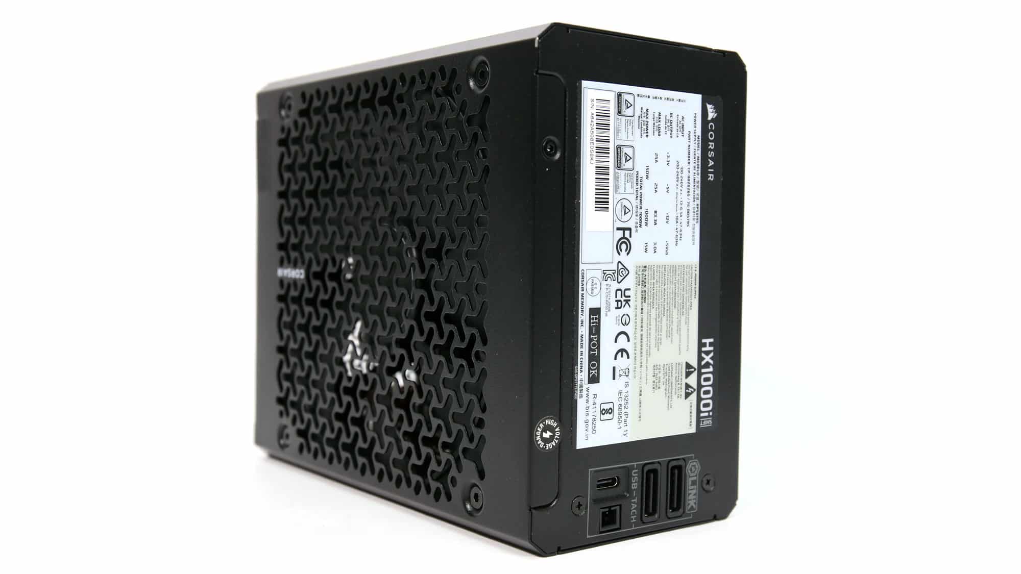 The exterior design stands out from the crowd thanks to the shifted modular panel, perforations at the fan grille, and the unit’s exhaust side. Around the back, where you typically find the modular panel in “standard” PSUs, there are the iCUE RS-485, Type-C, and tachometer output ports.