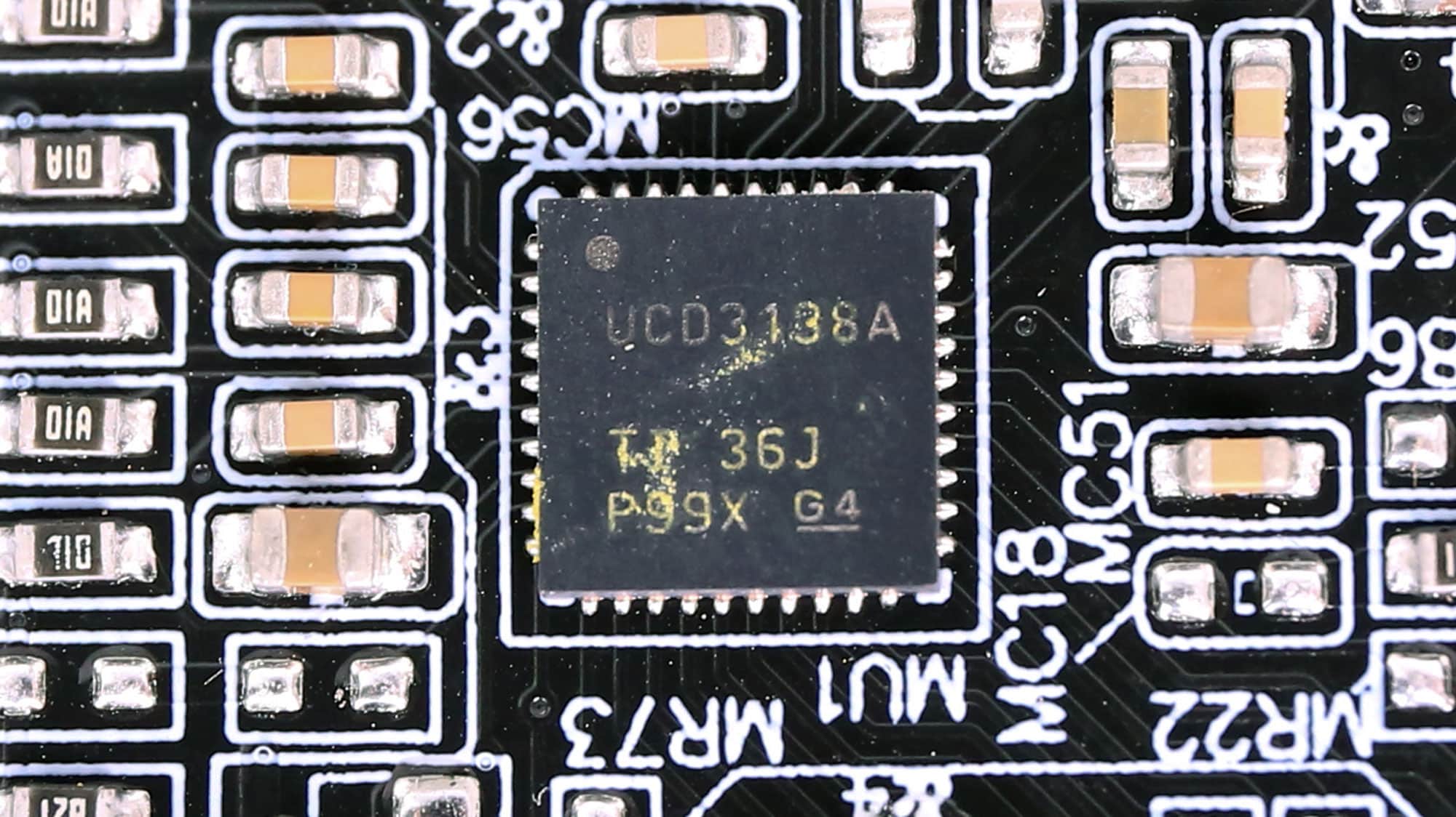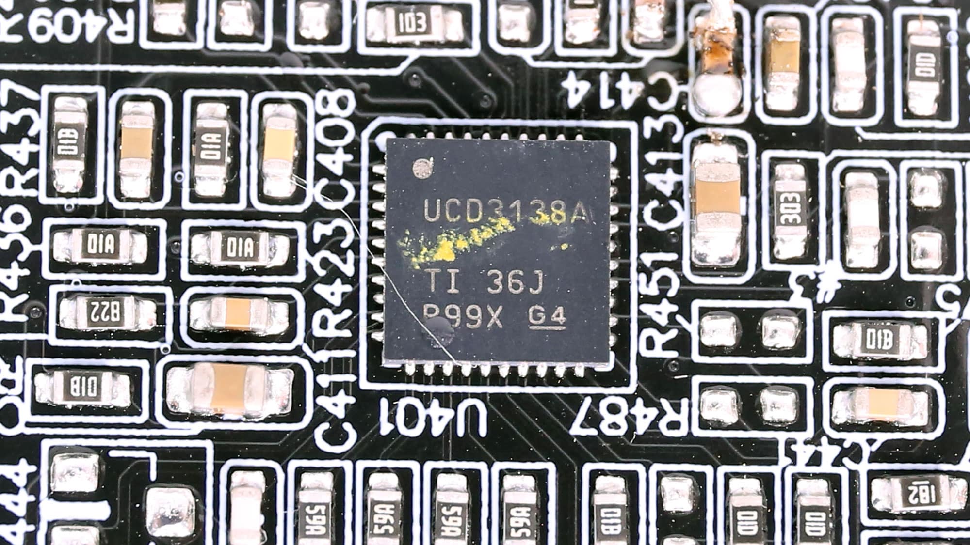 A pair of digital controllers handles the APFC, the primary switching, and the 12V FETs. We would have a fully digital platform if digital controllers also dealt with the minor rails. The PSU’s brain is a Microchip PIC32MM0064GPM036 MCU, which also handles communication between the system and the PSU’s circuits.