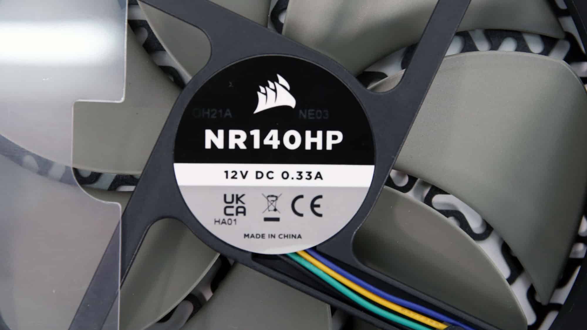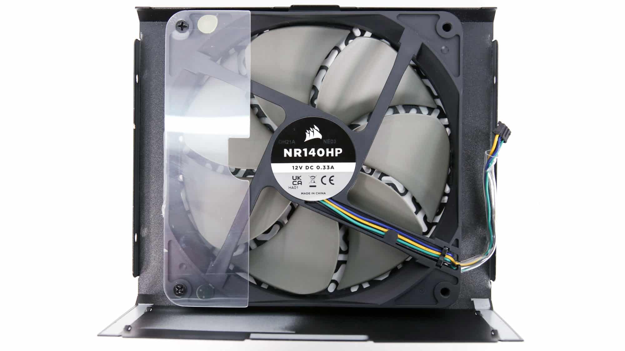 The cooling fan is a Corsair NR140P with a fluid-dynamic bearing.