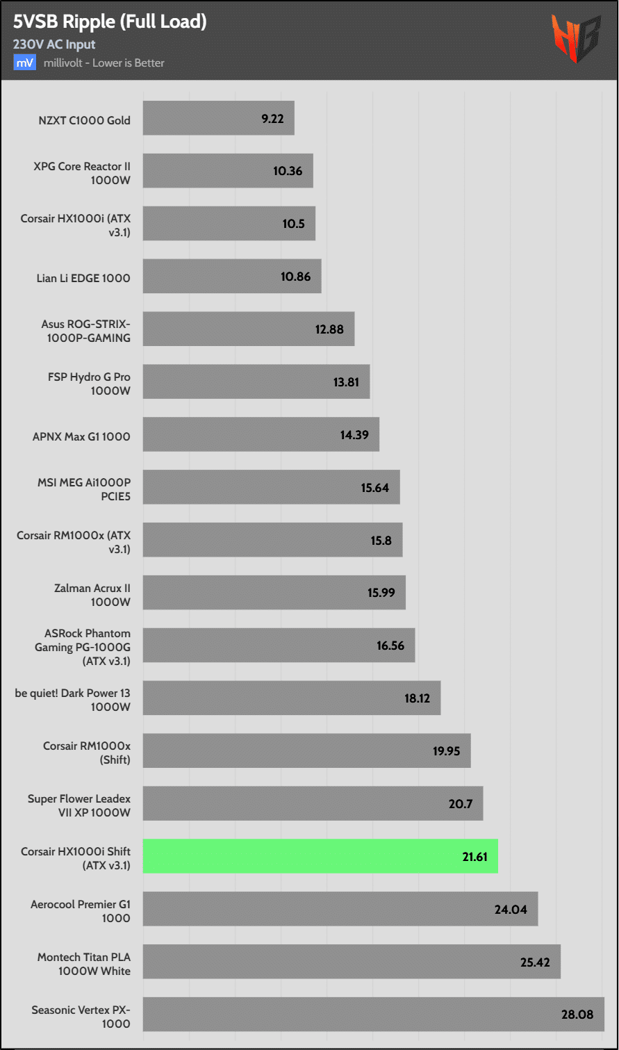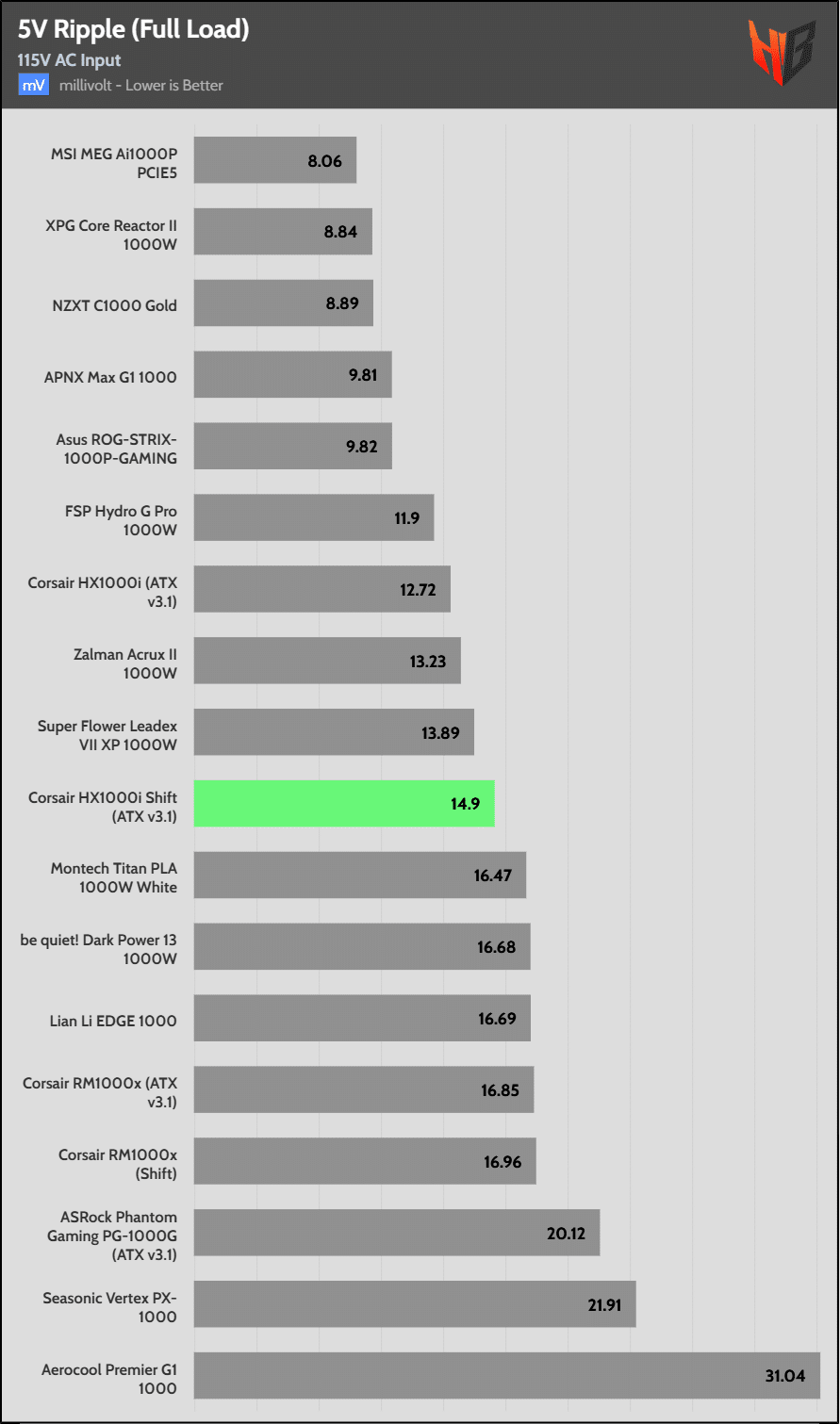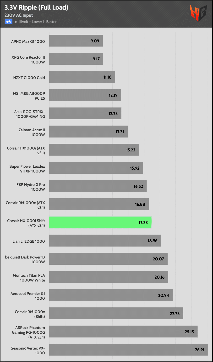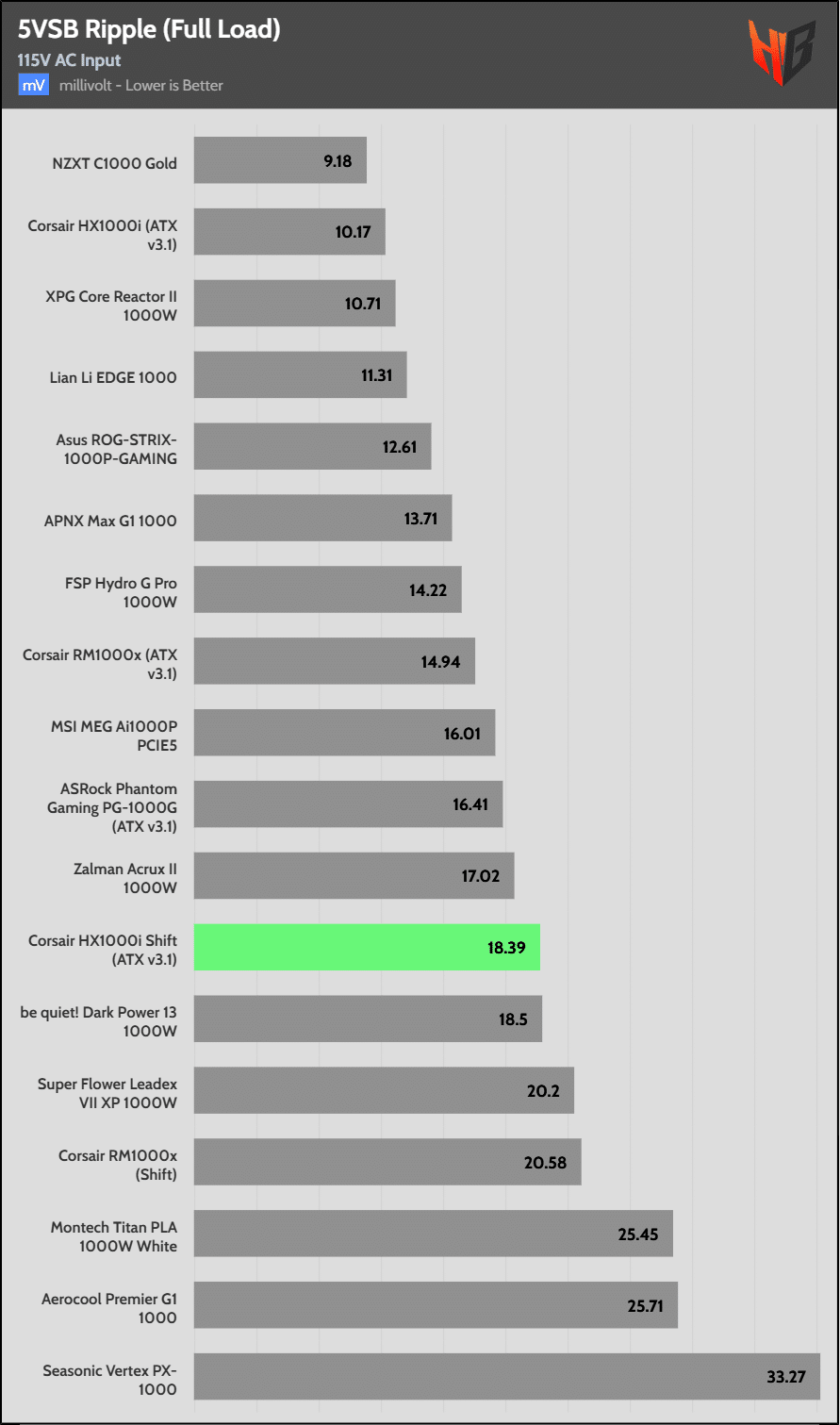 Load regulation is within 1% on all primary rails. I would like to see a tighter load regulation at 12V, given the digital control.