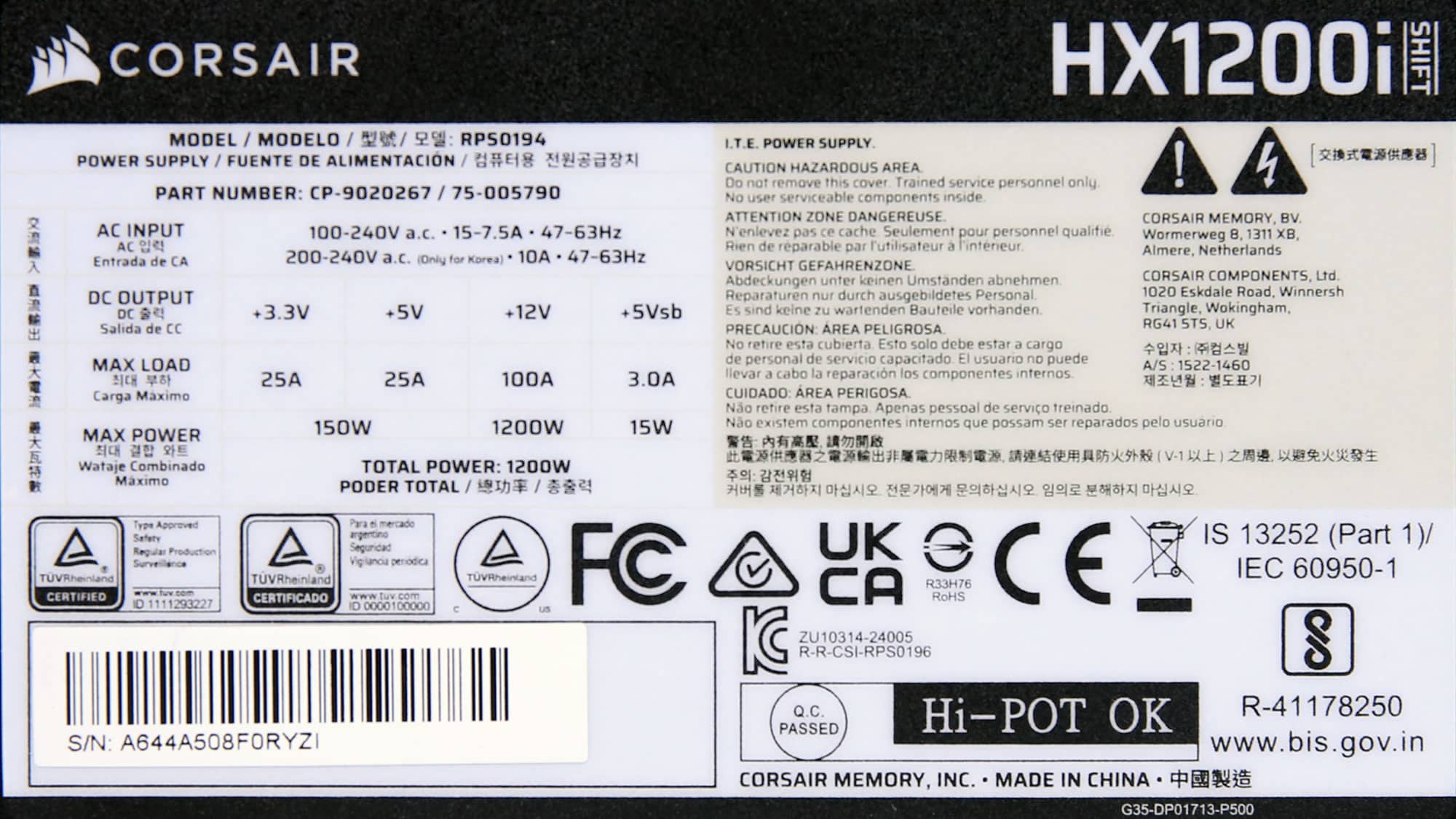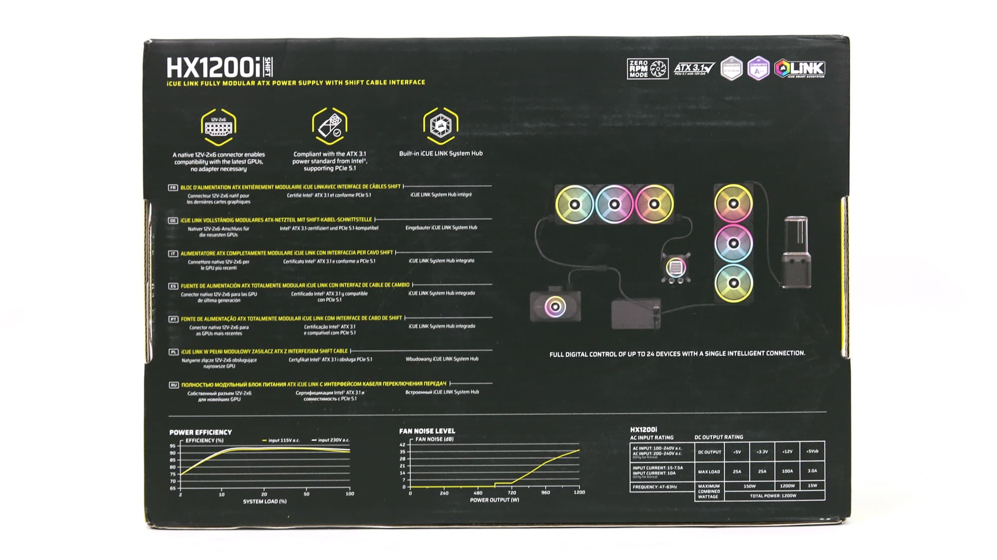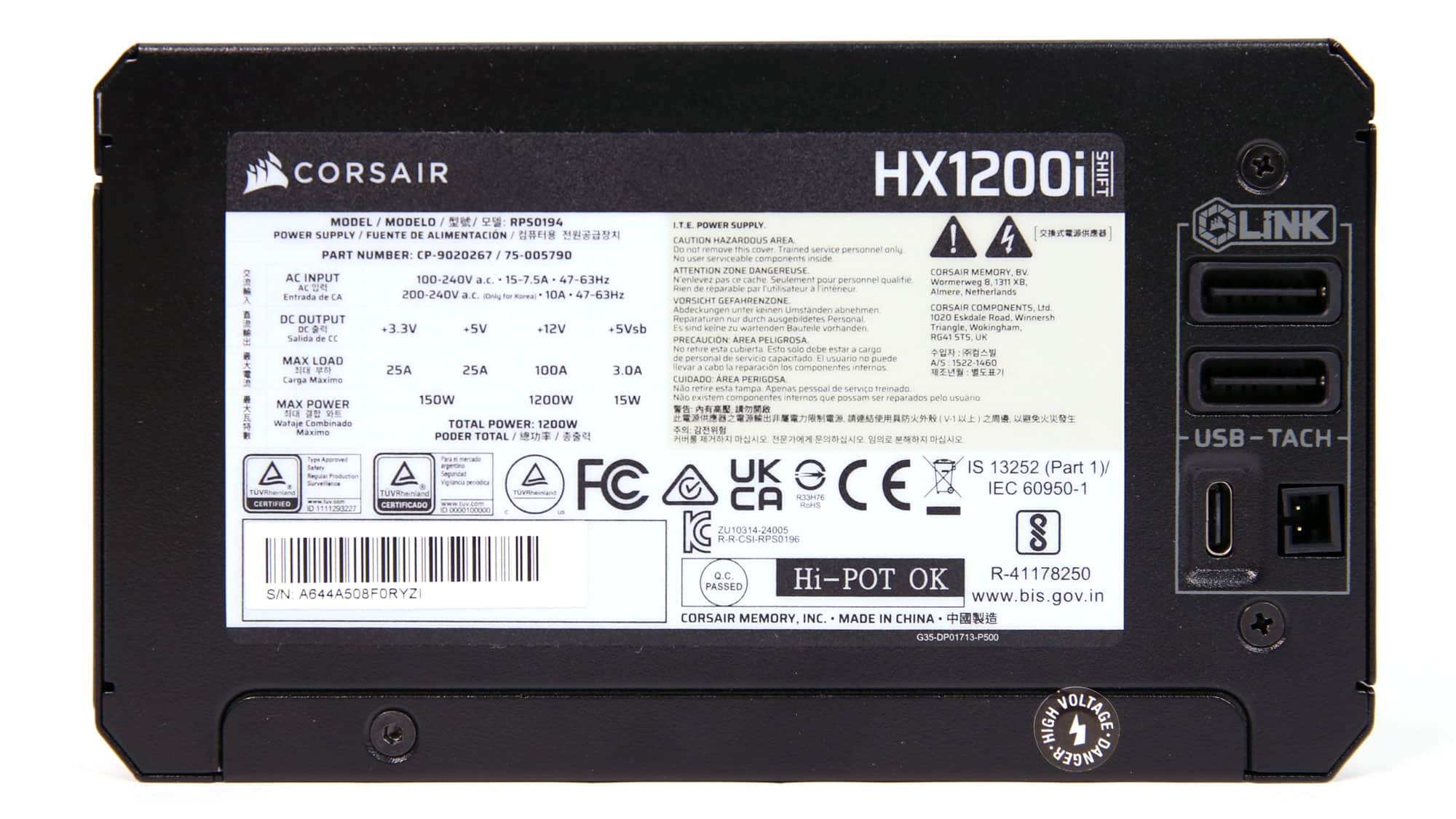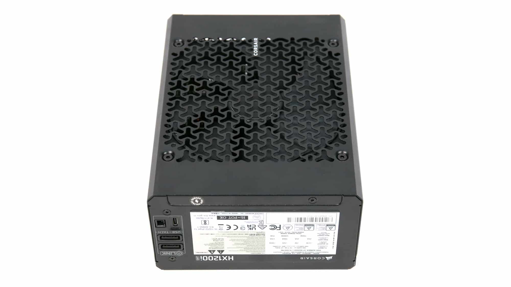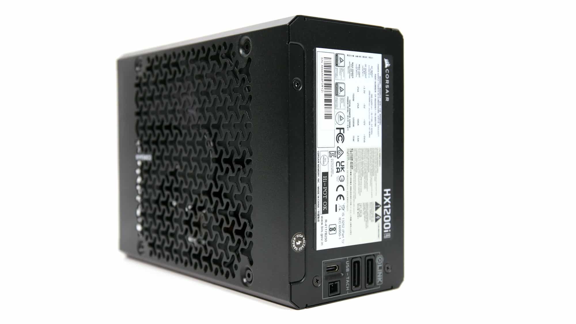 The exterior design stands out from the crowd thanks to the shifted modular panel, perforations at the fan grille, and the unit’s exhaust side. Around the back, where you typically find the modular panel in “standard” PSUs, there are the iCUE RS-485, Type-C, and tachometer output ports.
