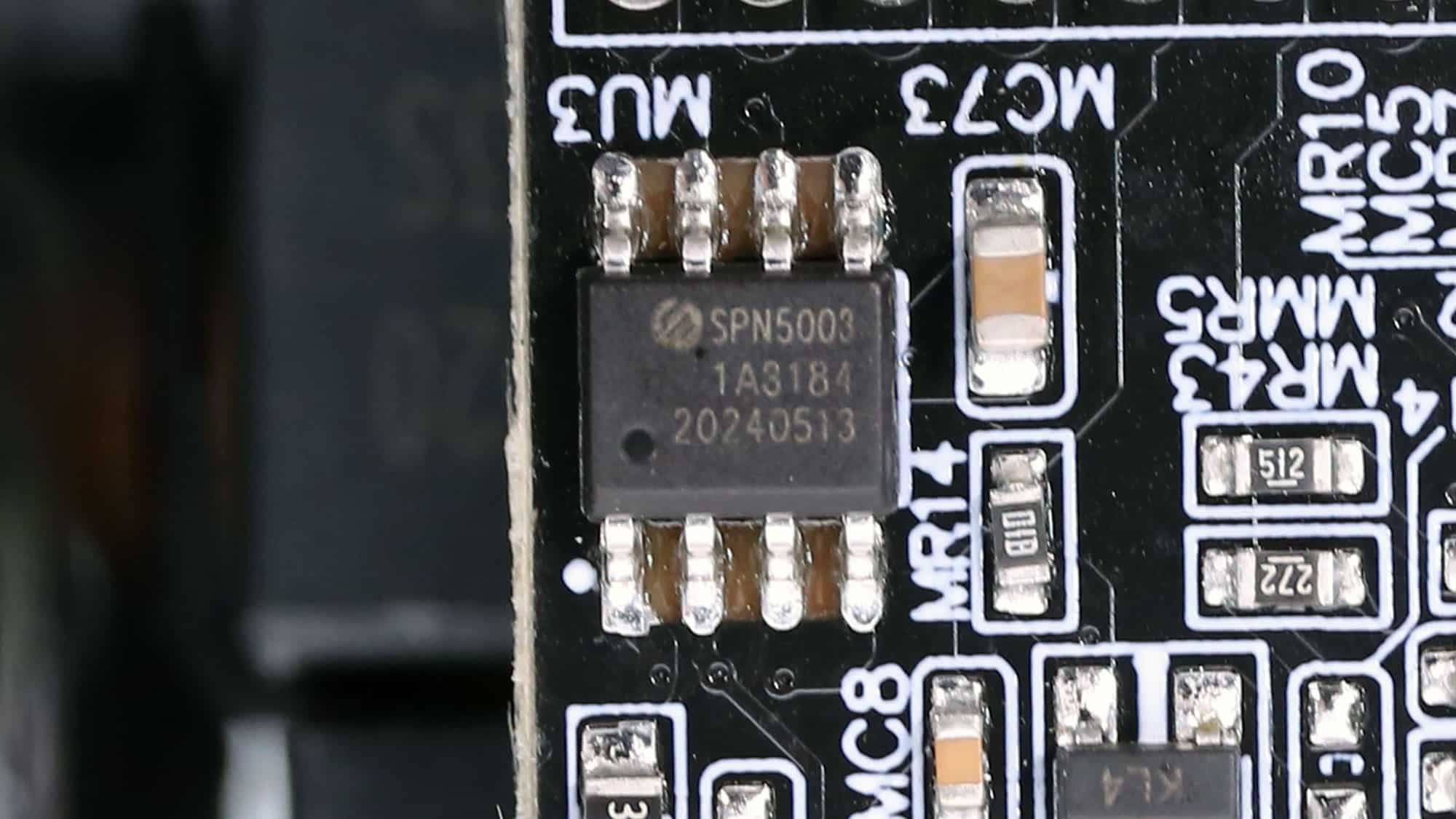 Two DC-DC converters generate the minor rails. They use six UBIQ Semi QN3107M6N FETs. The PWM controller is a UPI-Semi uP3861P.