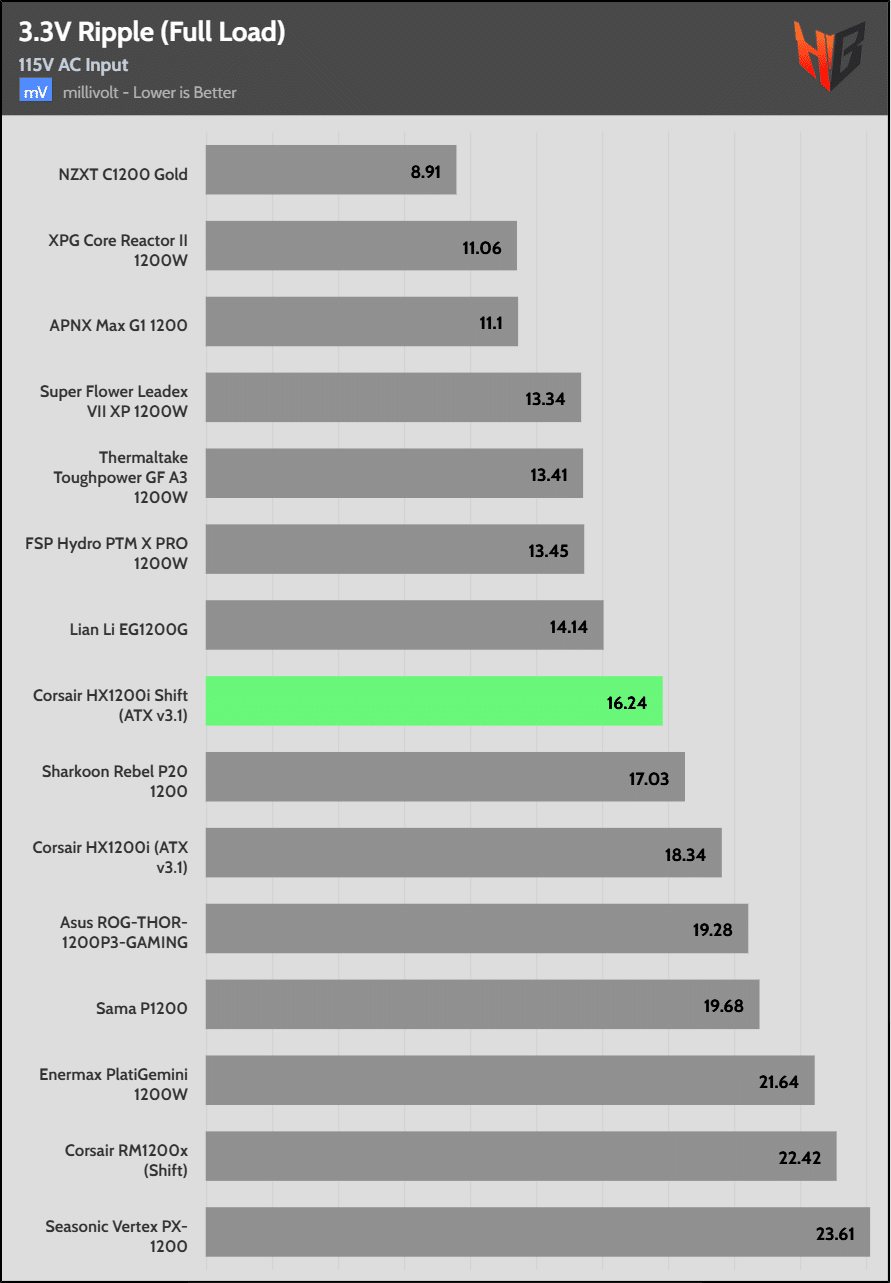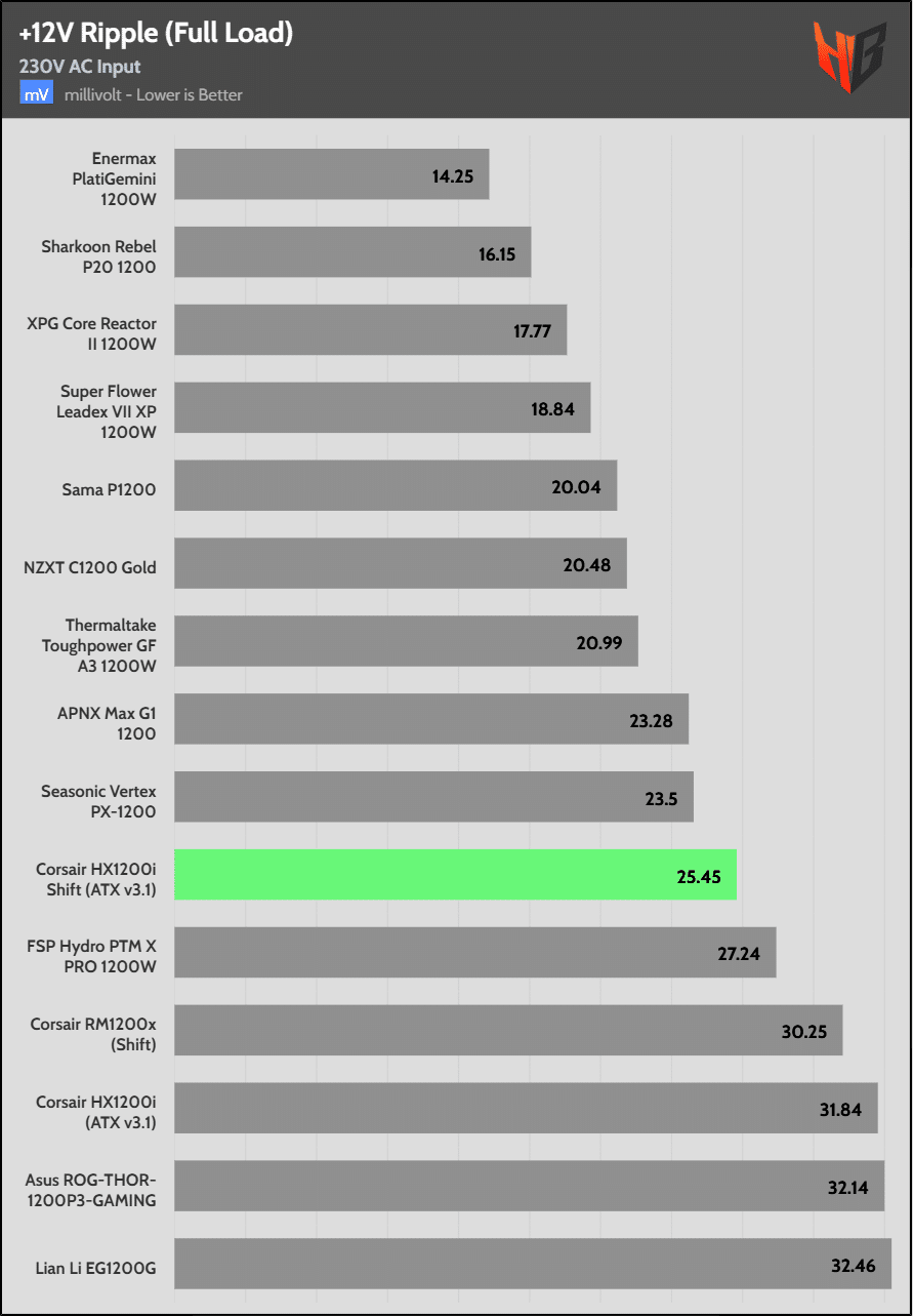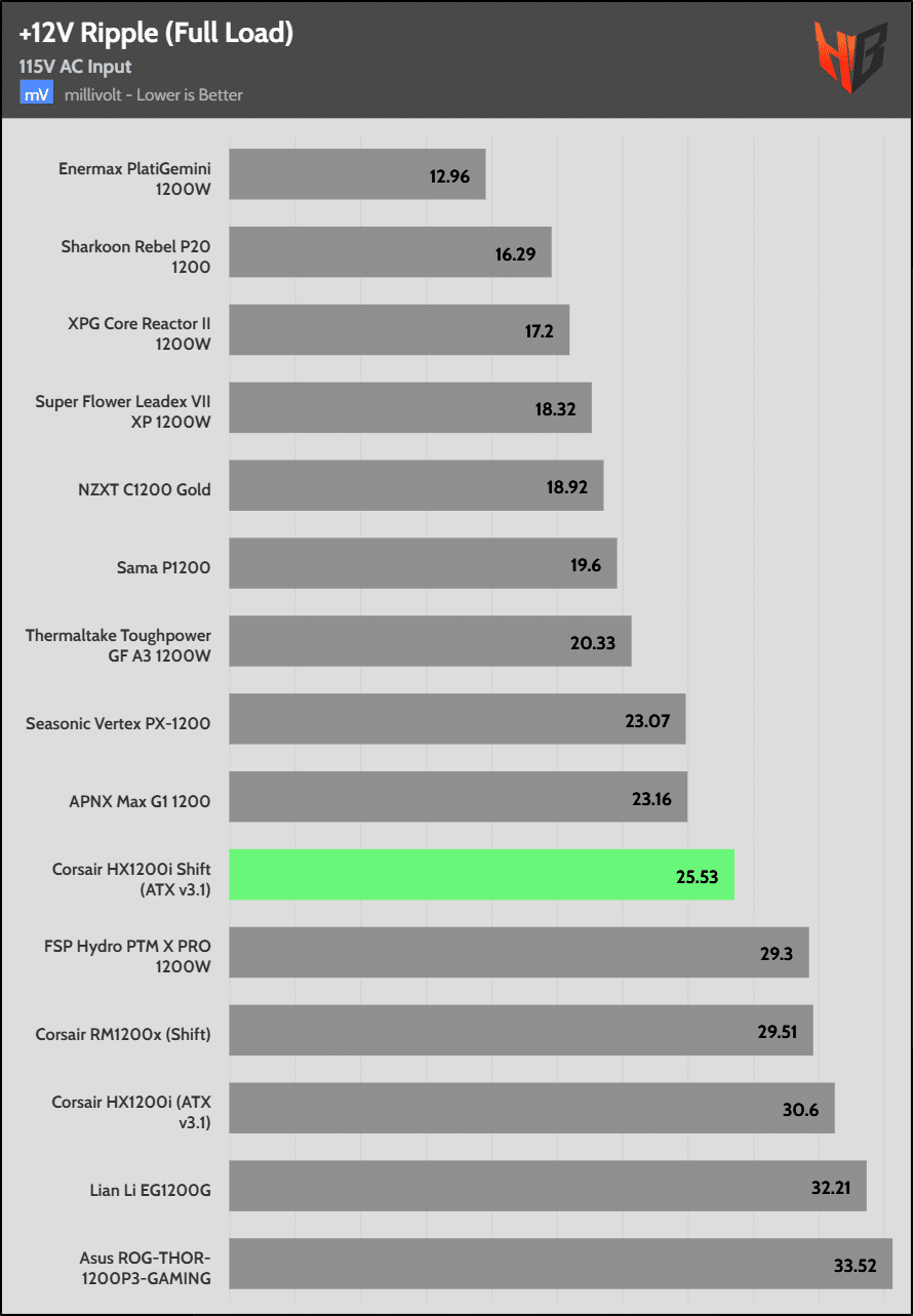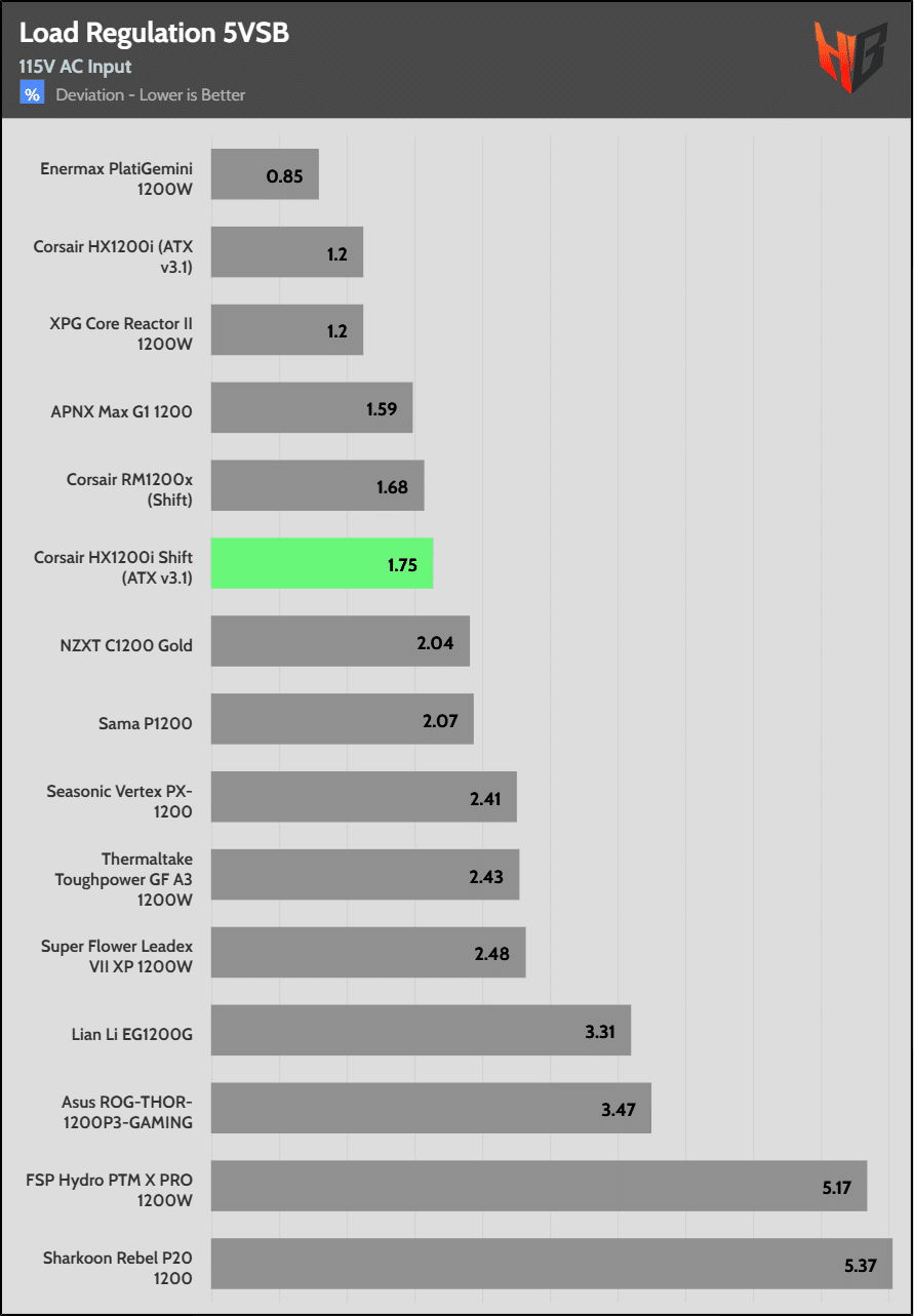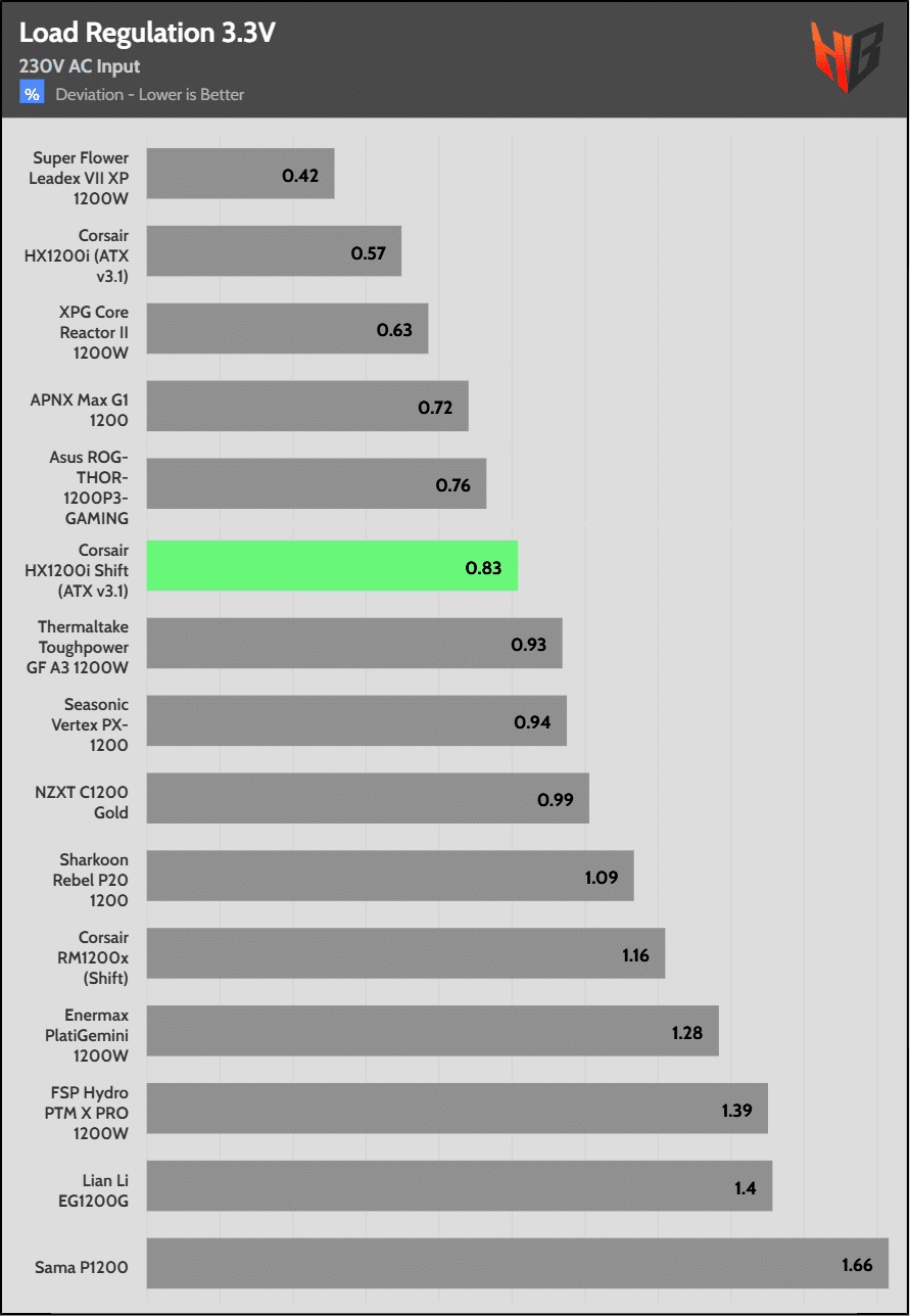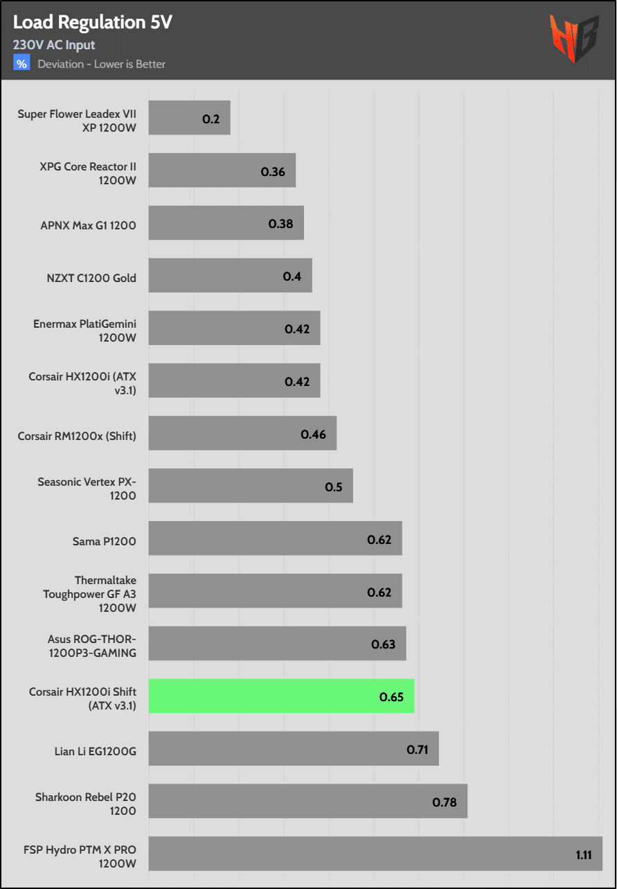 Load regulation is within 1% on all primary rails. I would like to see a tighter load regulation at 12V, given the digital control.