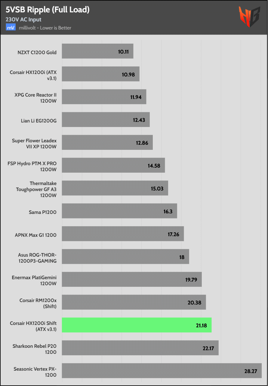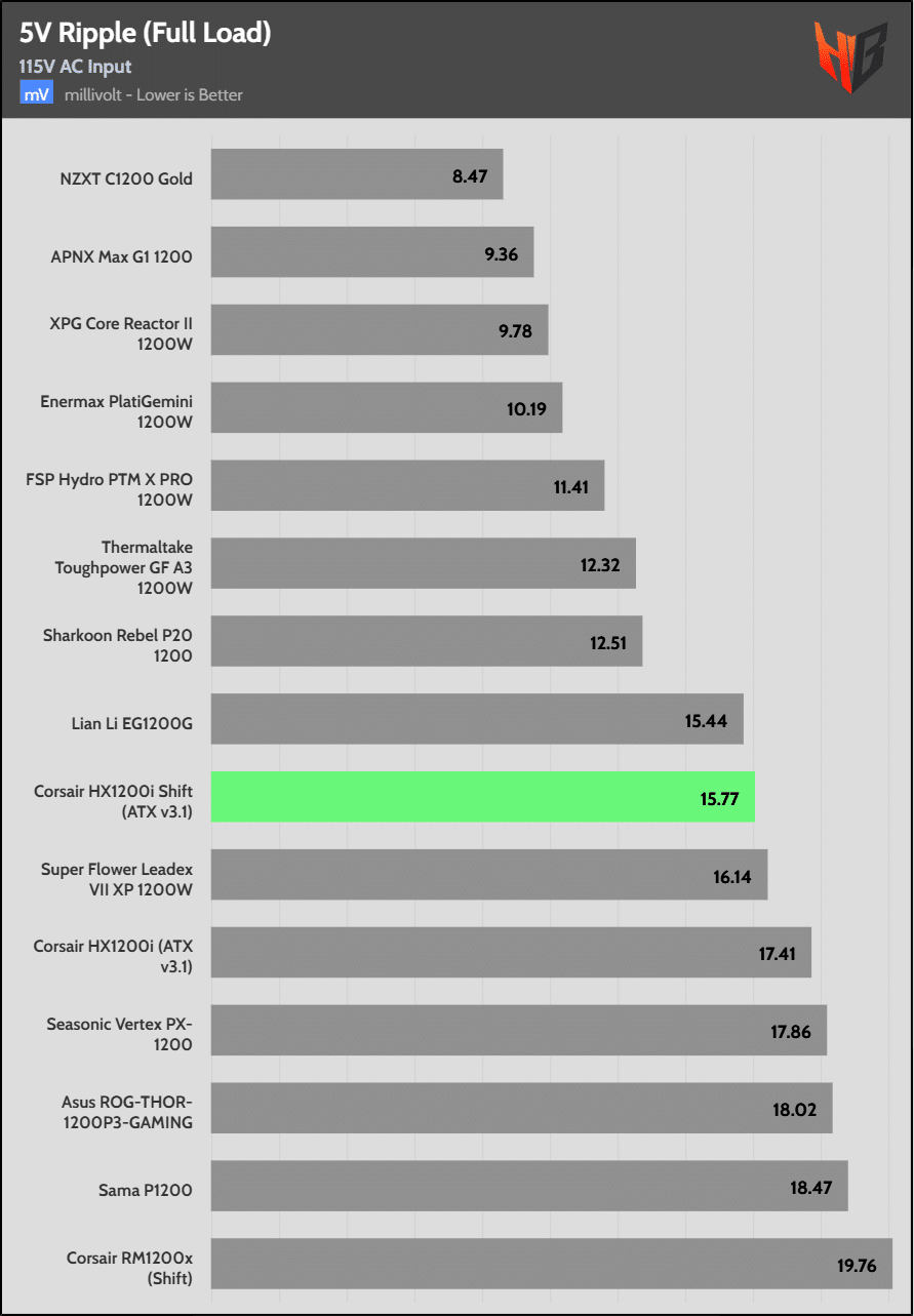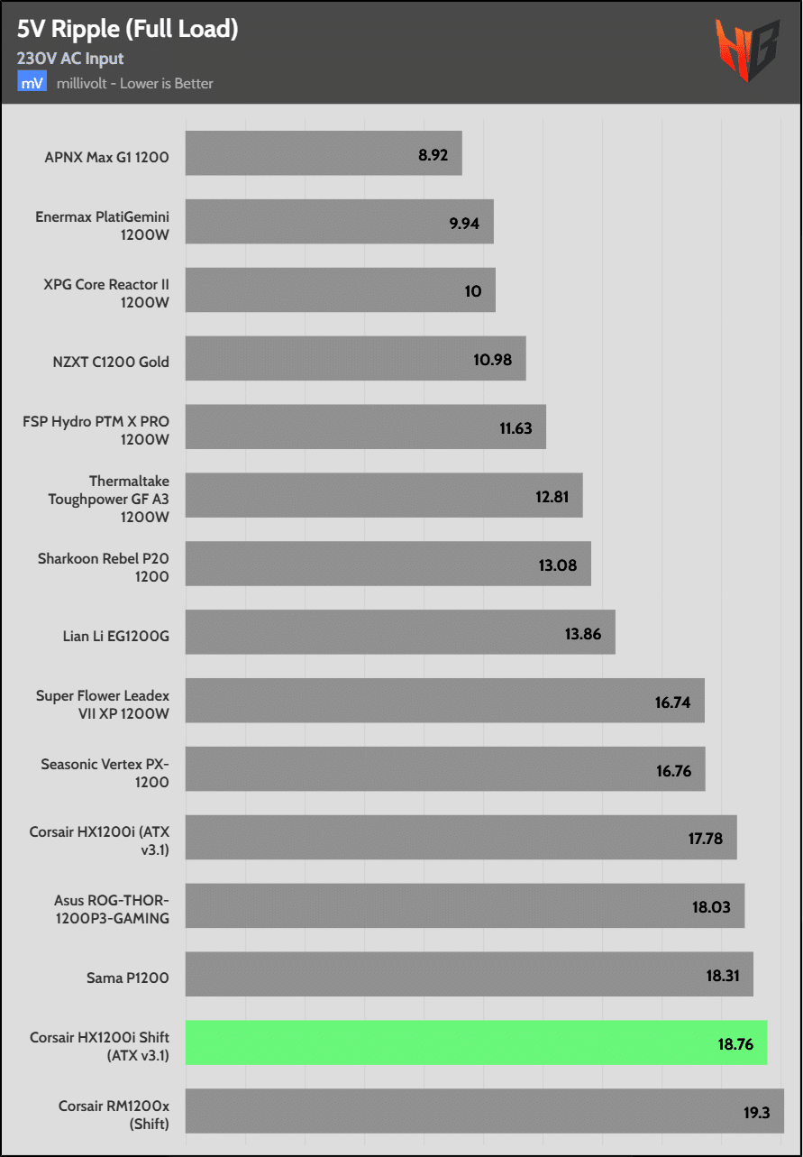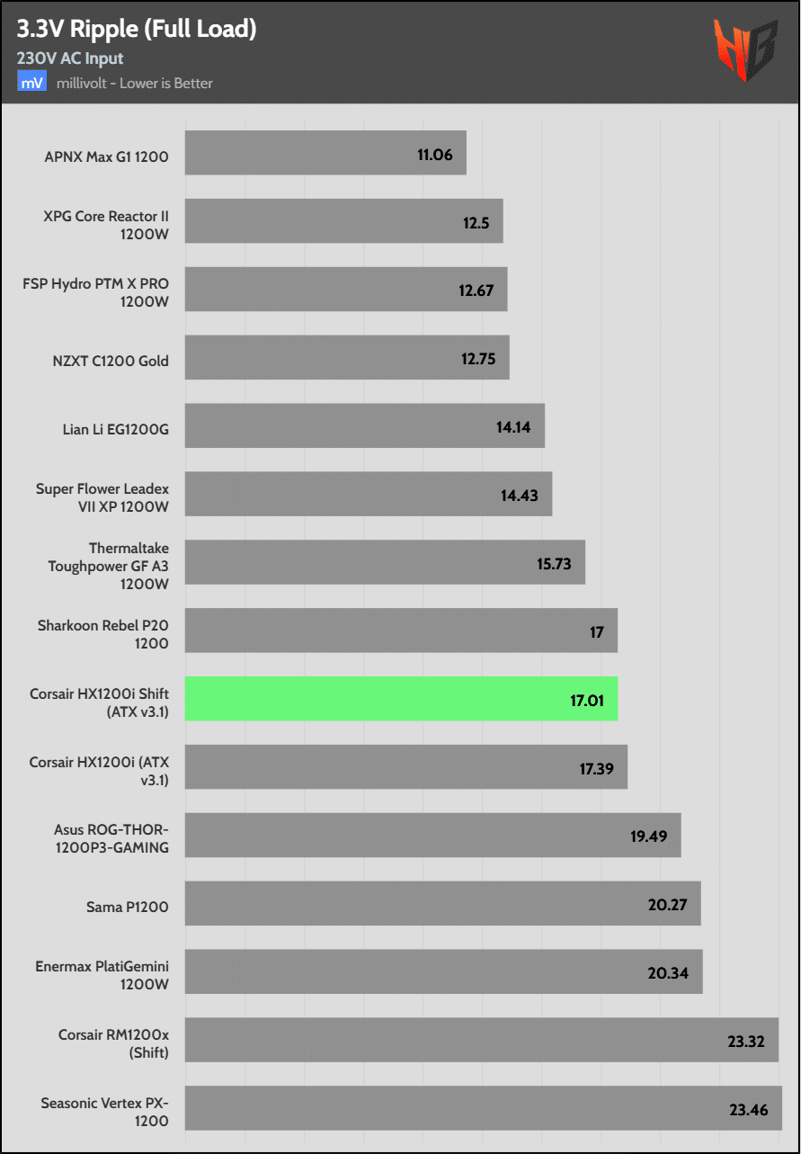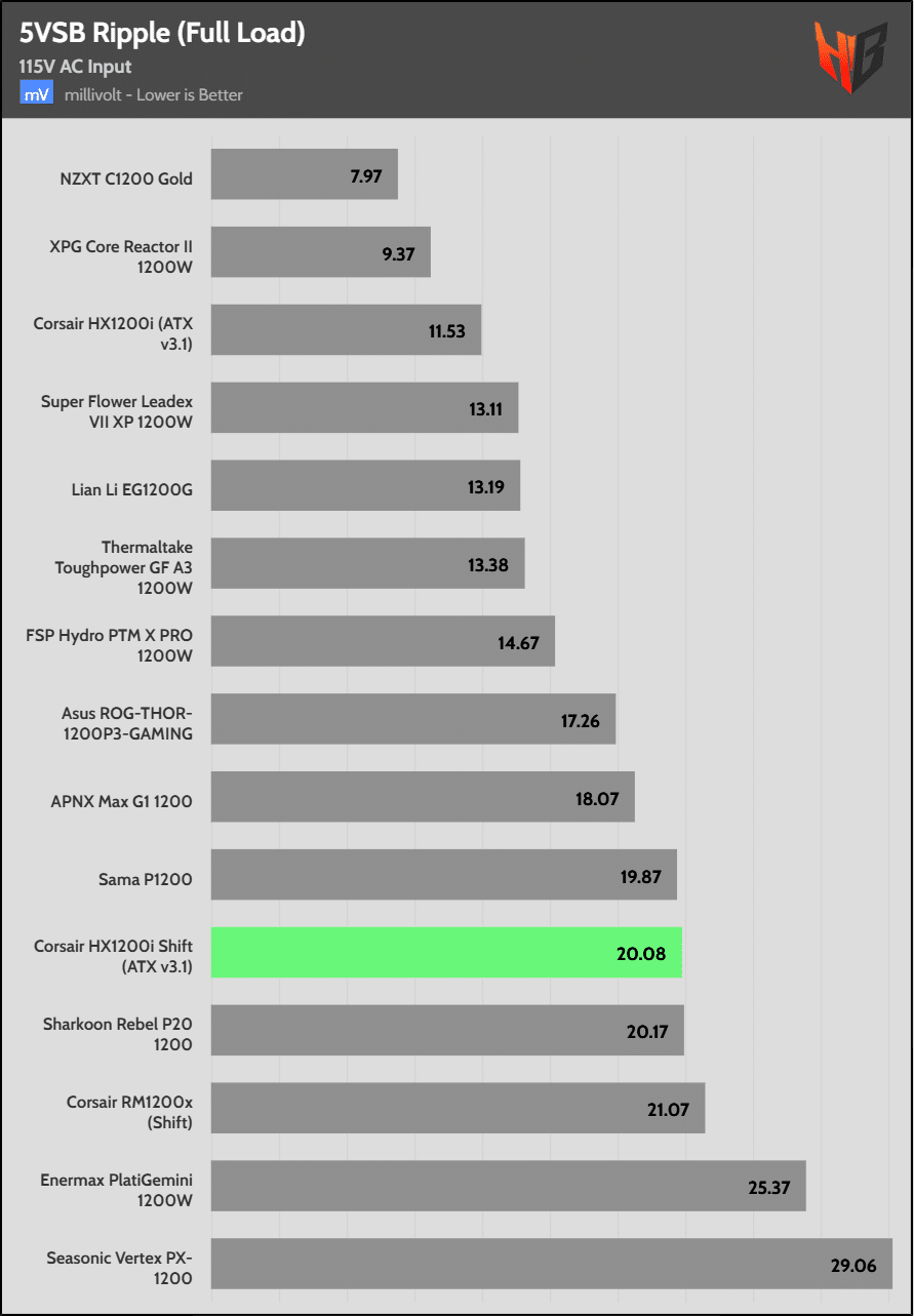 Load regulation is within 1% on all primary rails. I would like to see a tighter load regulation at 12V, given the digital control.