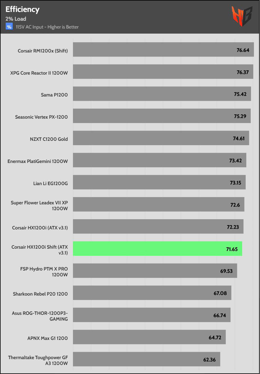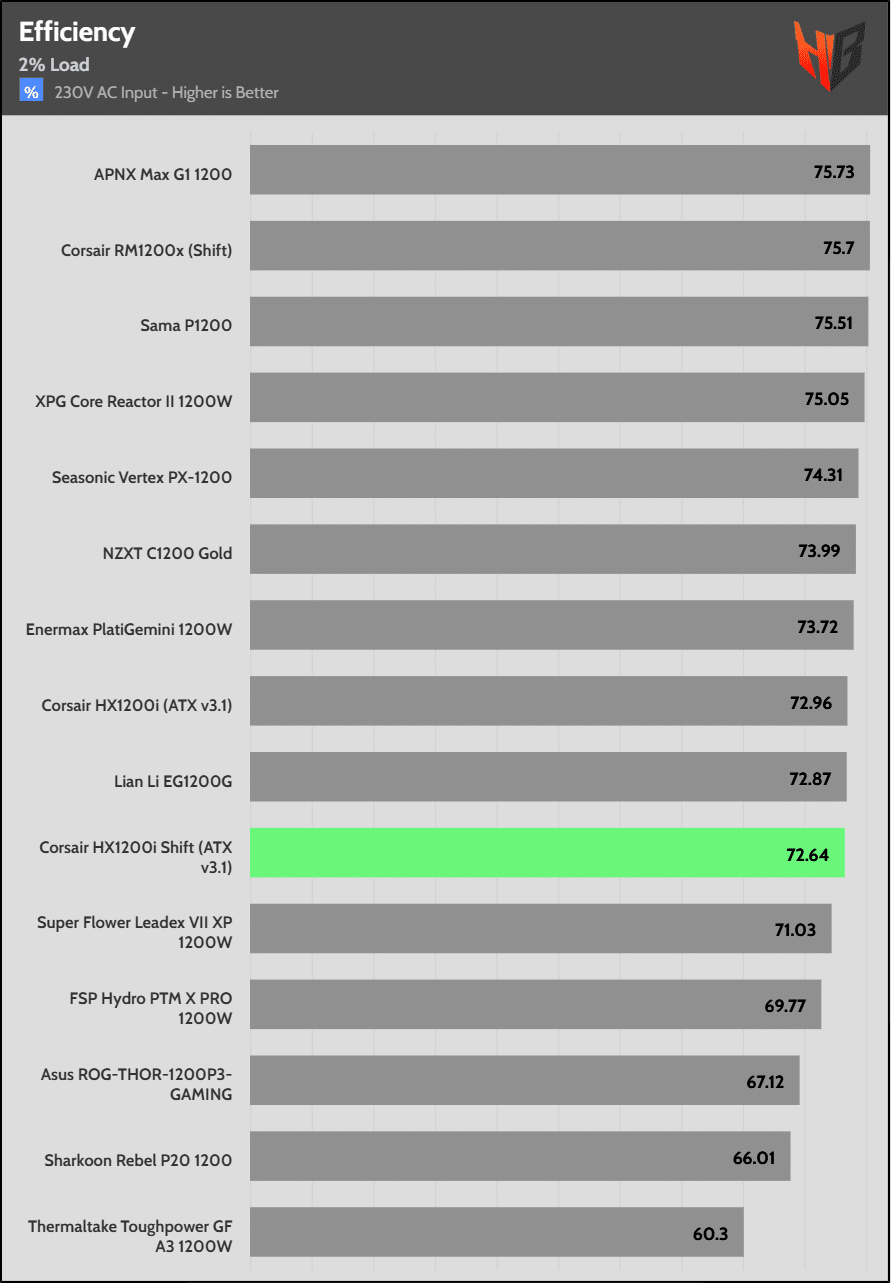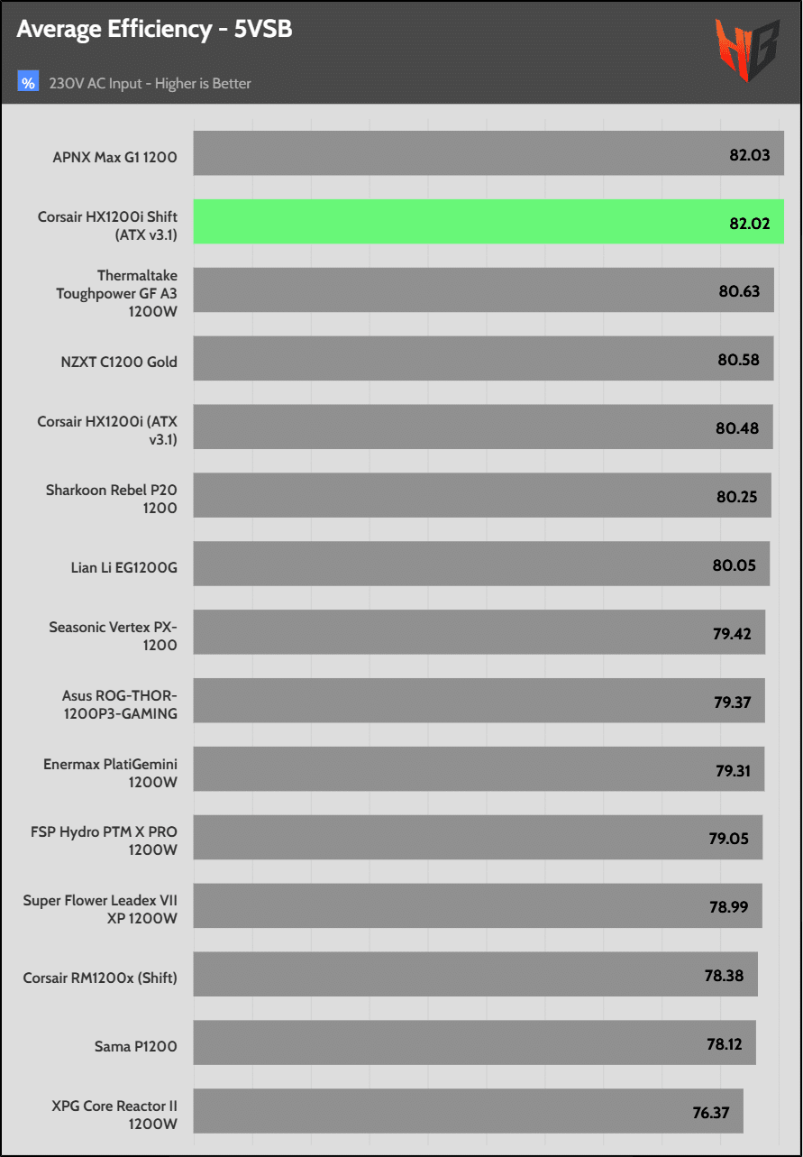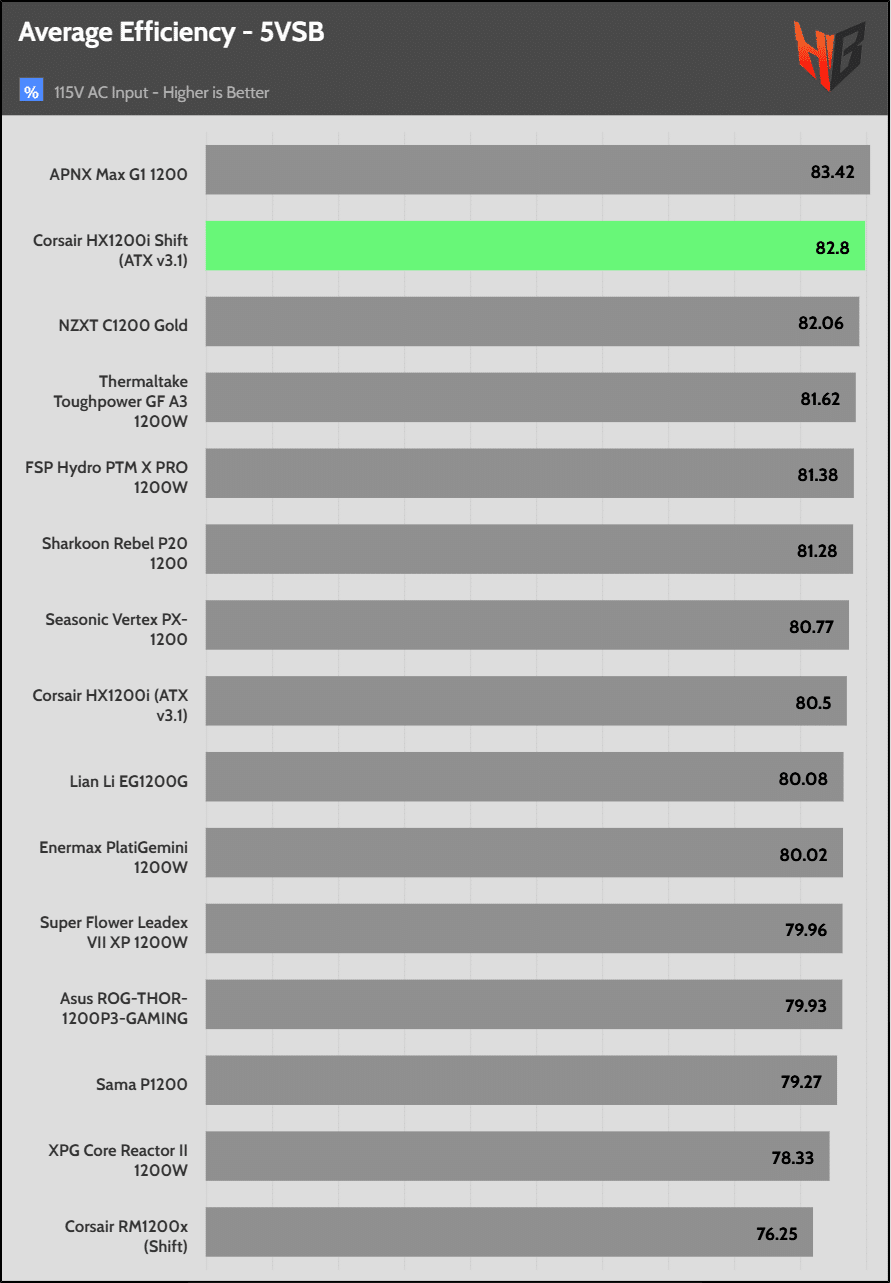 The 5VSB rail’s efficiency is high.