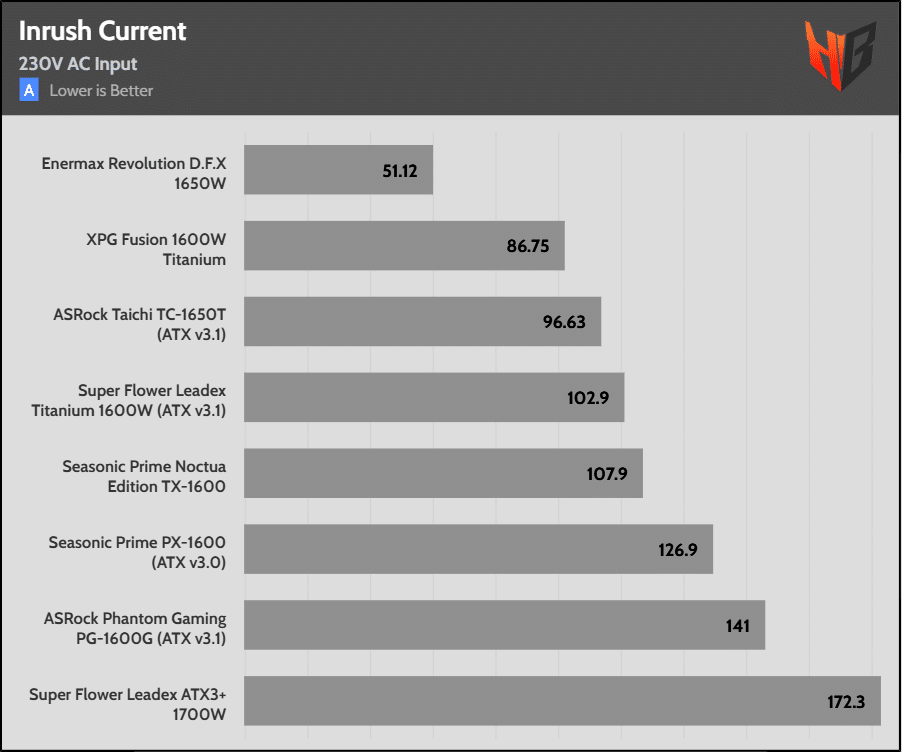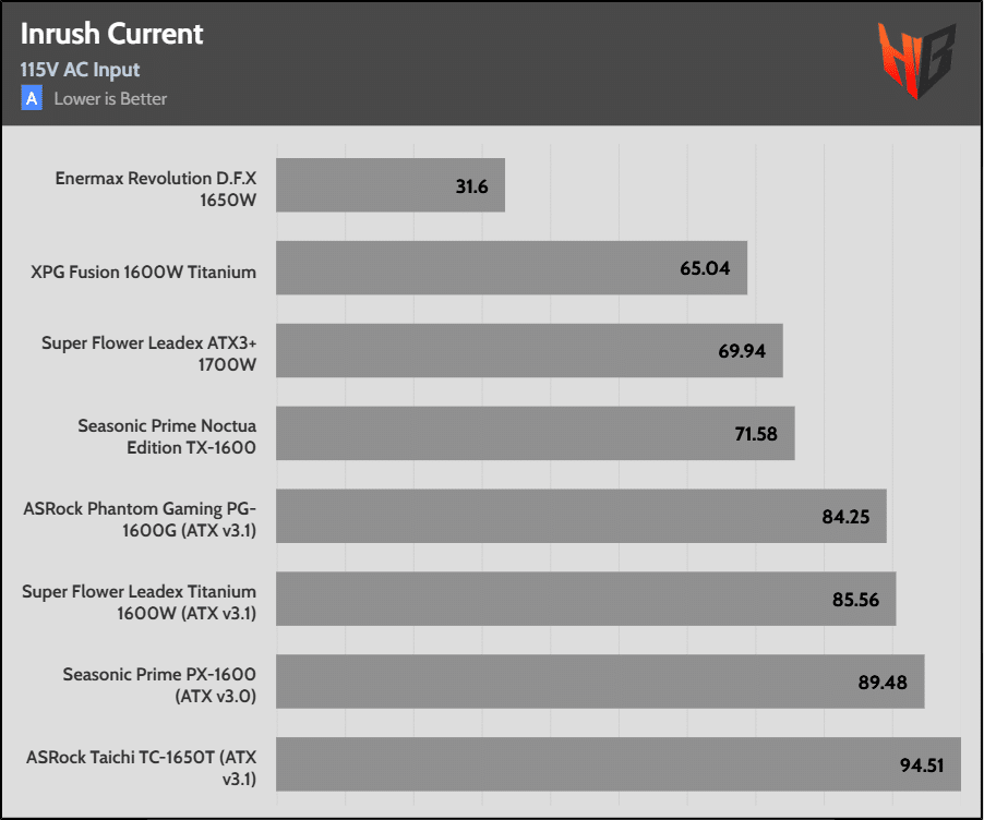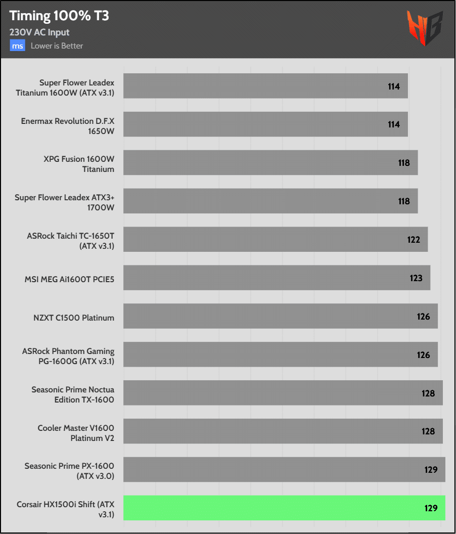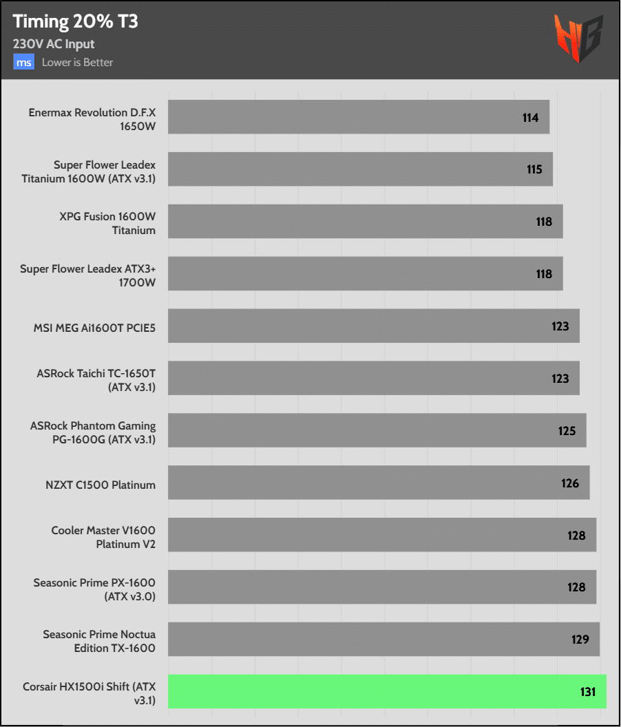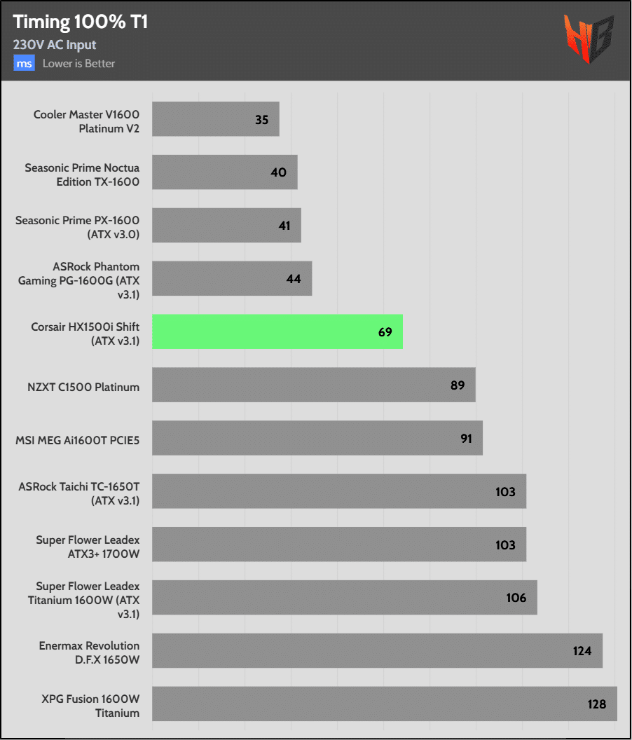 With three high-capacity bulk caps, it isn’t a surprise that the PSU achieves first place in hold-up time.