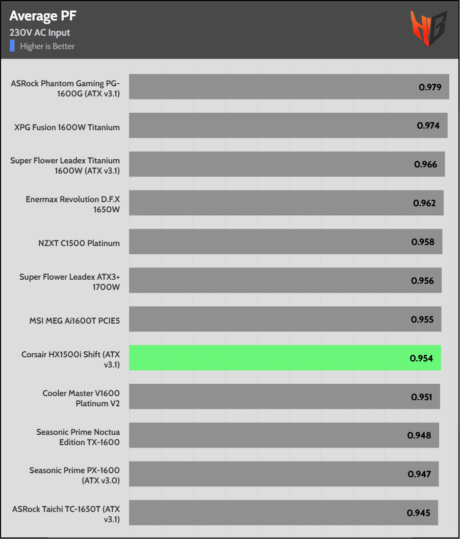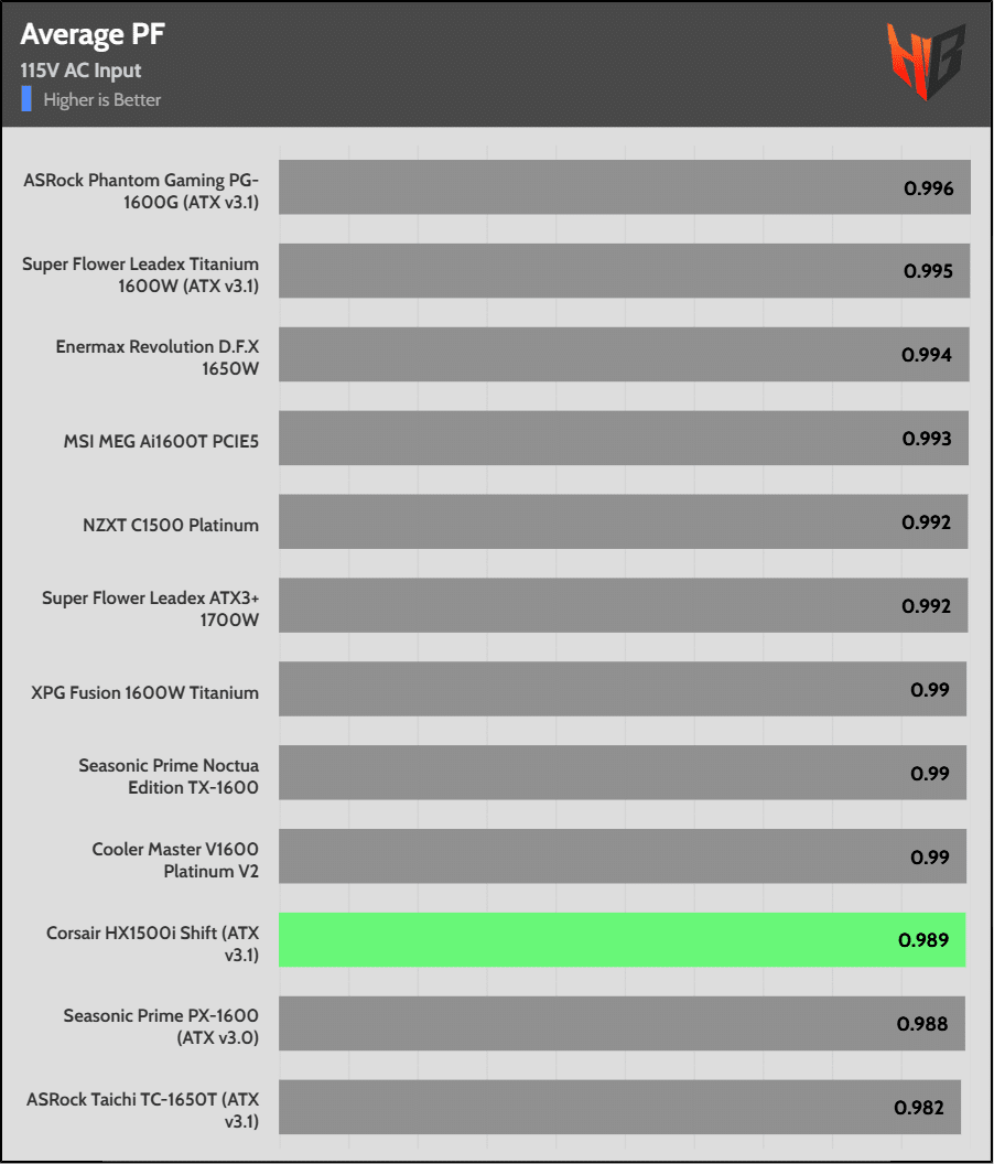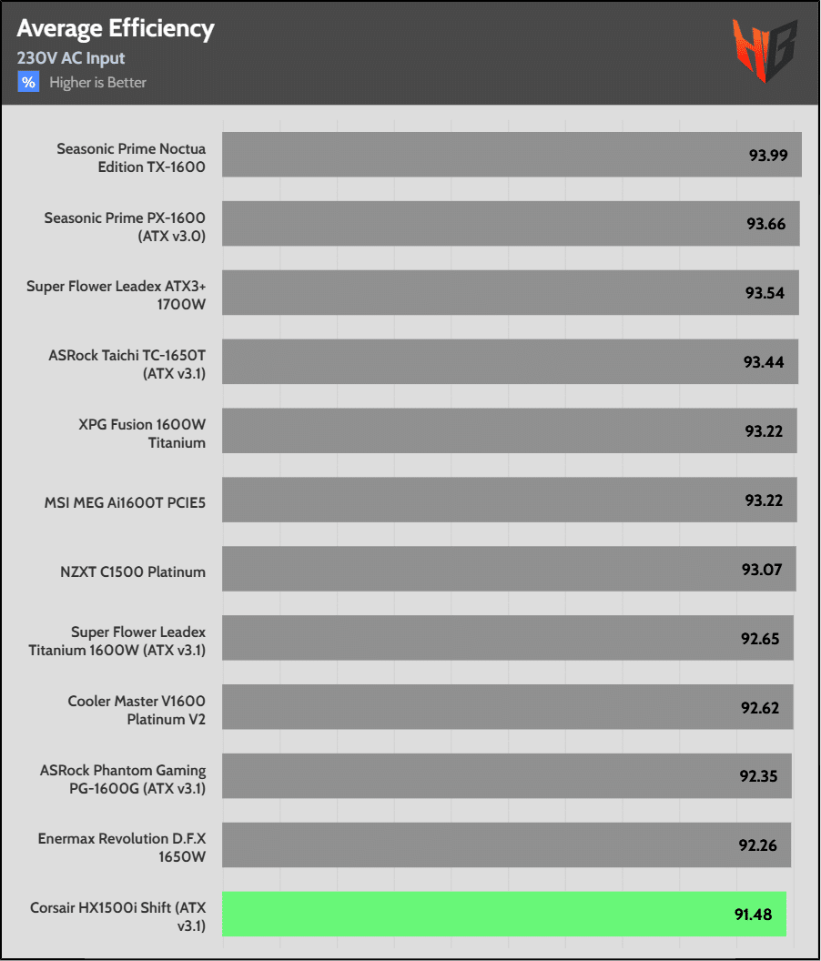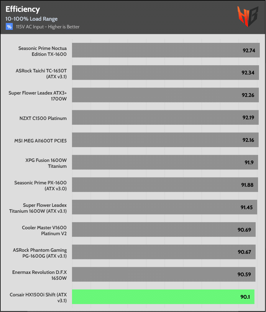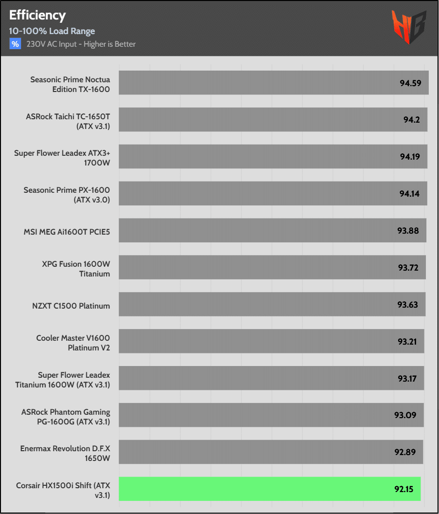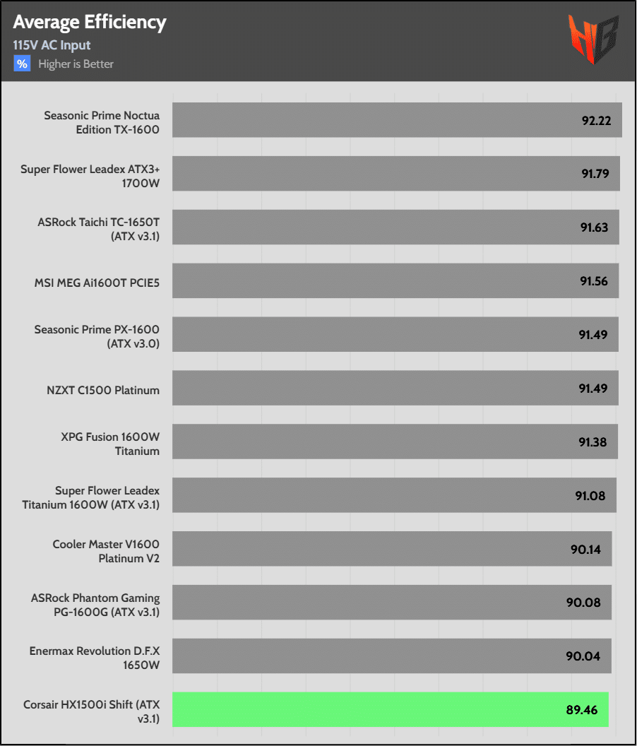 The PSU’s average efficiency with more than 1450 different load levels at 115V and 230V is depicted in the graphs below.