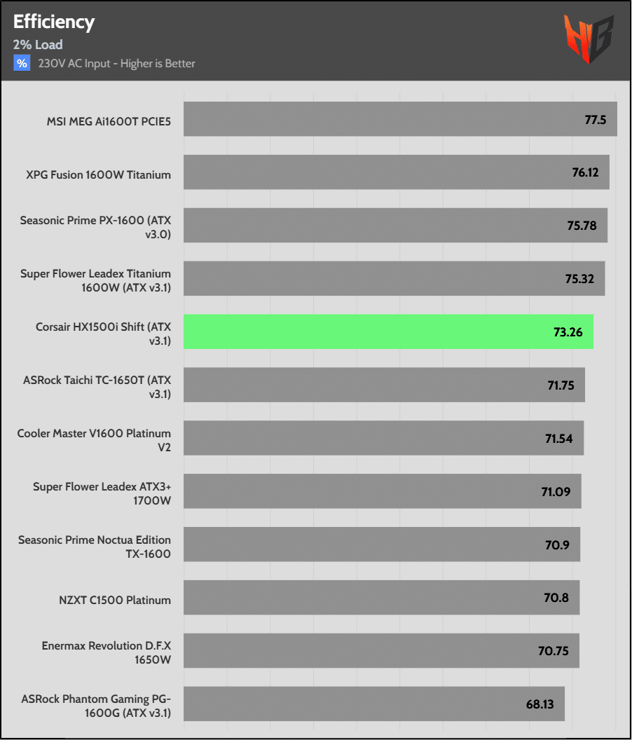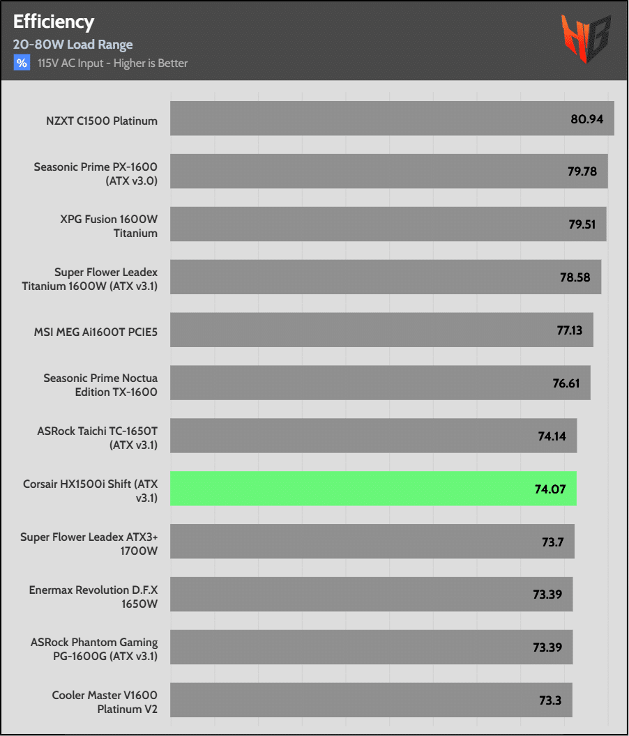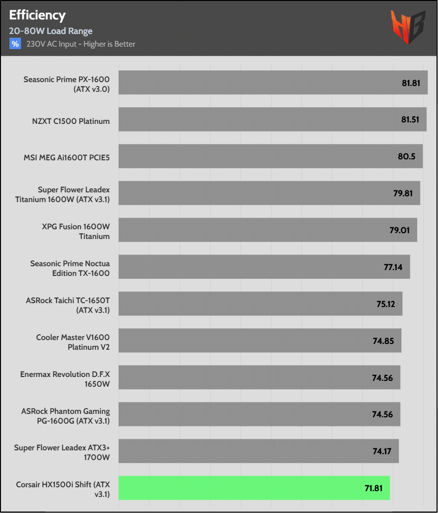 The average efficiency is not as high as that of similar spec units at normal and light loads. It is high enough at super-light loads.