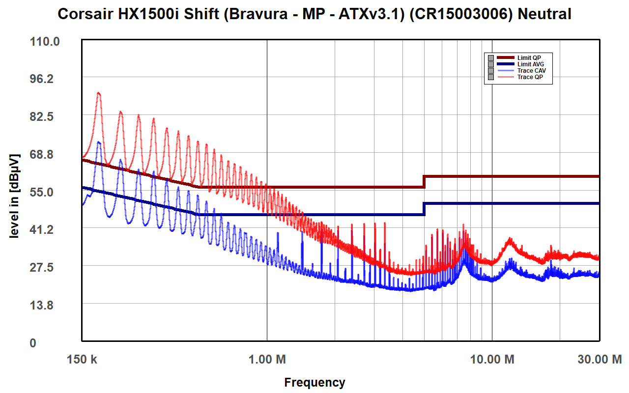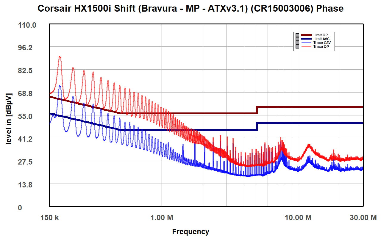Please note that the ATX spec allows a 4 dB margin for conducted and radiated emissions. This means that if a PSU exceeds the limits but stays within the 4 dB margin, it meets the corresponding ATX spec requirement (8.1 Emissions).