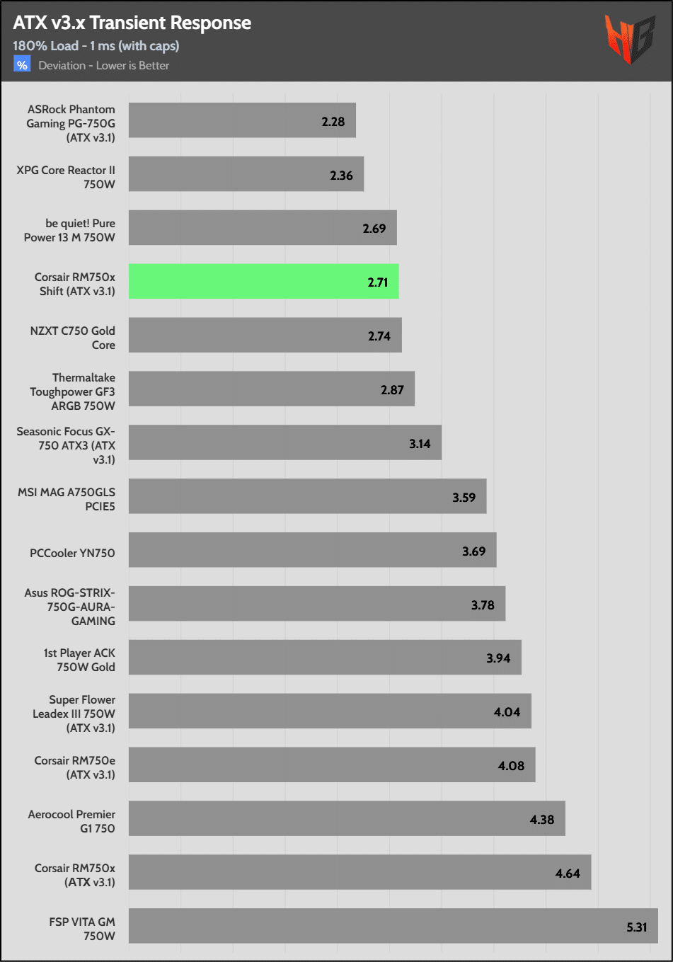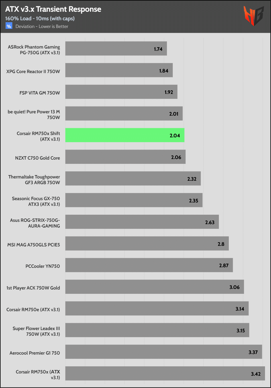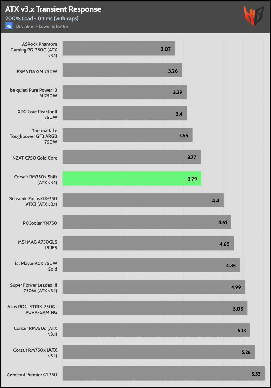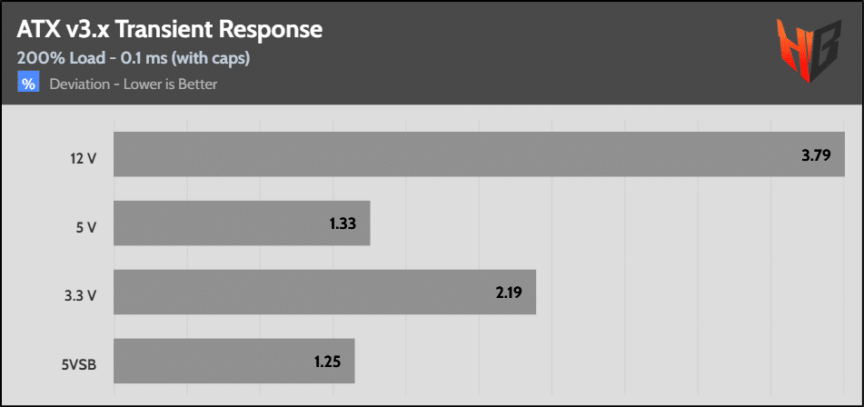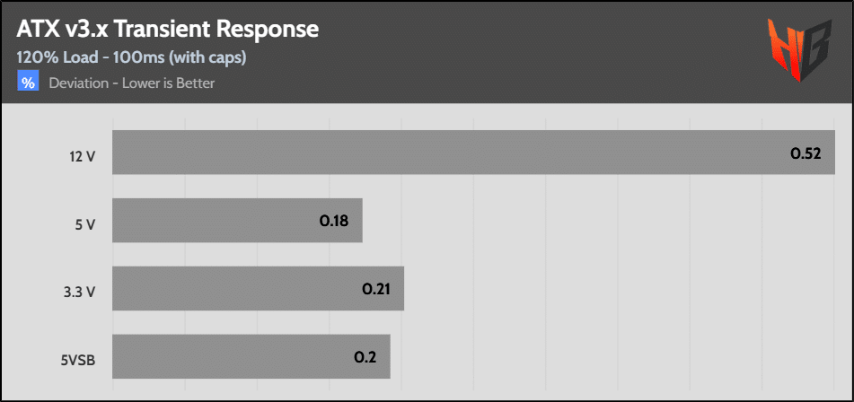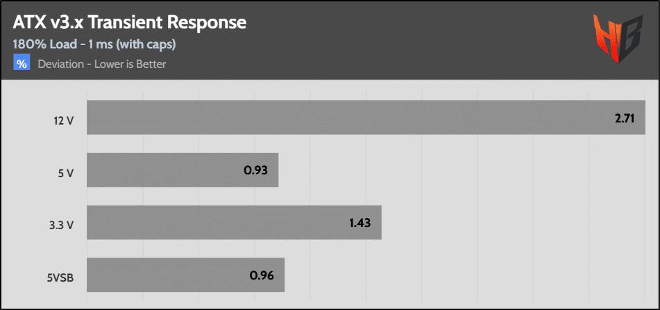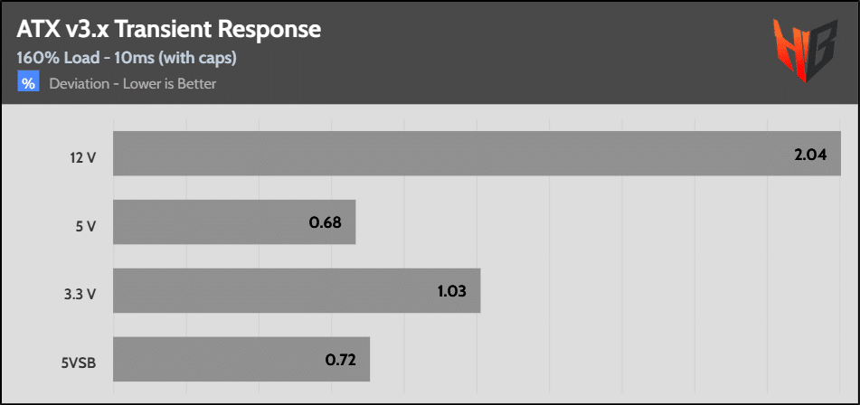[Note] For PSUs without a 12+4 pin connector, the maximum applied load for the transient response tests is 150%, rather than 200%.The PSU passes all ATX v3.1 transient response tests.