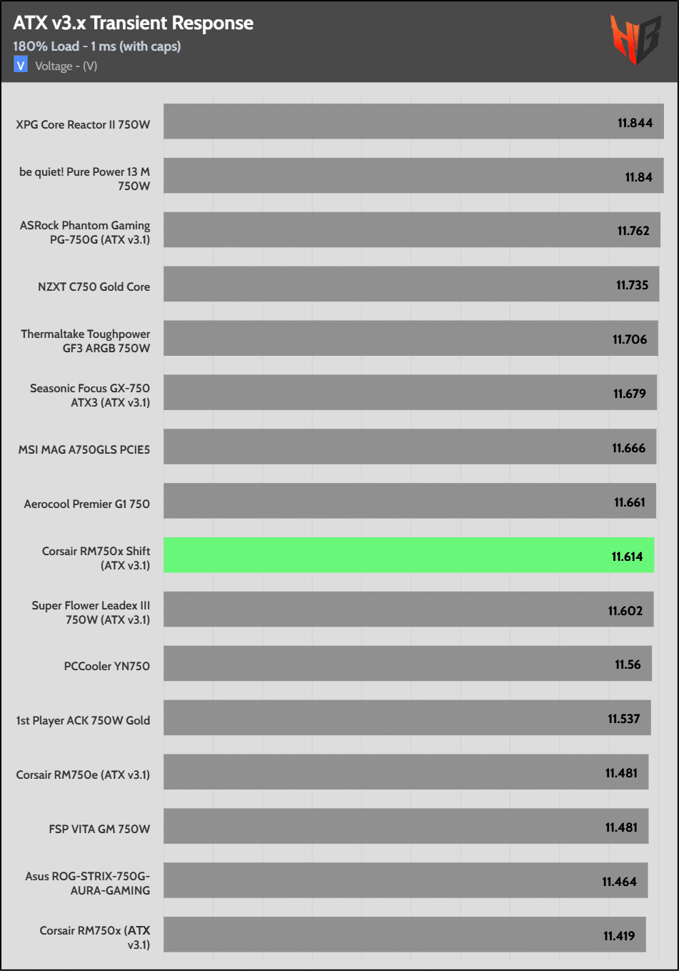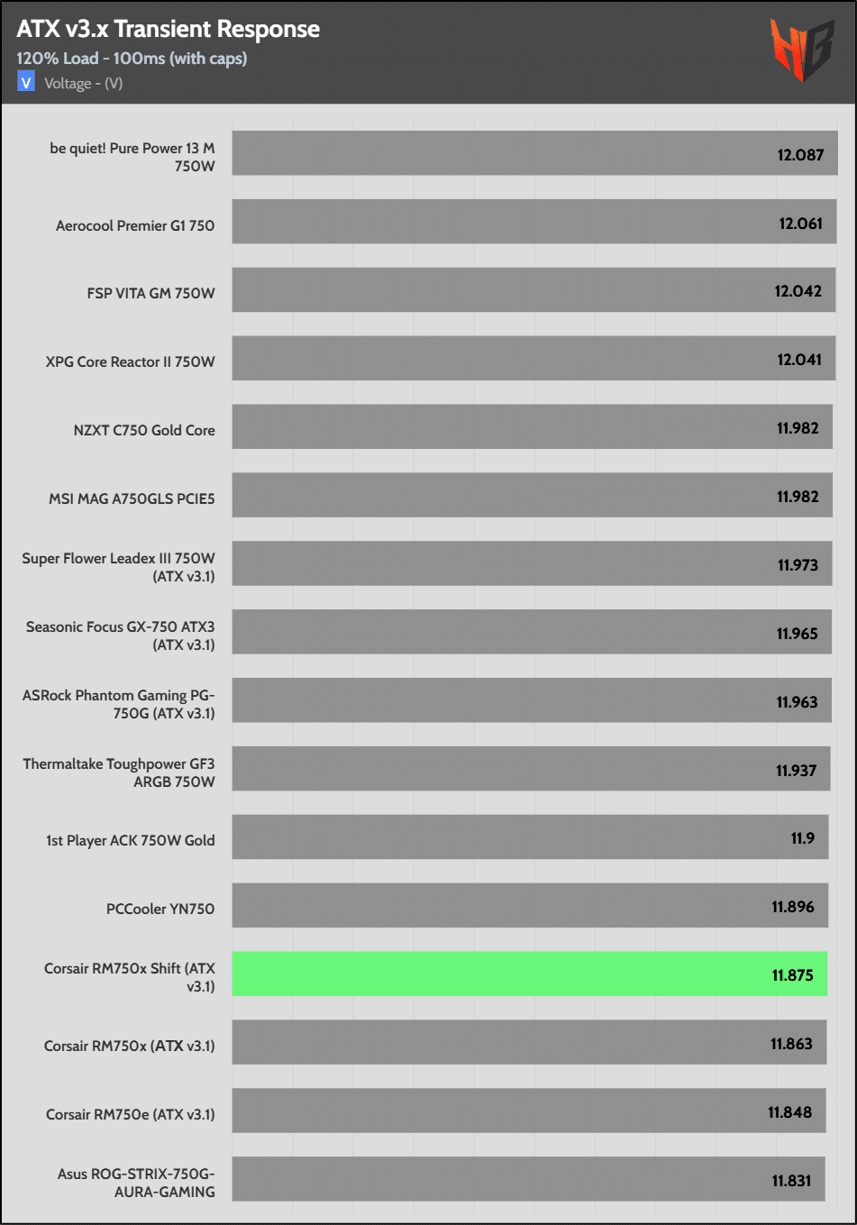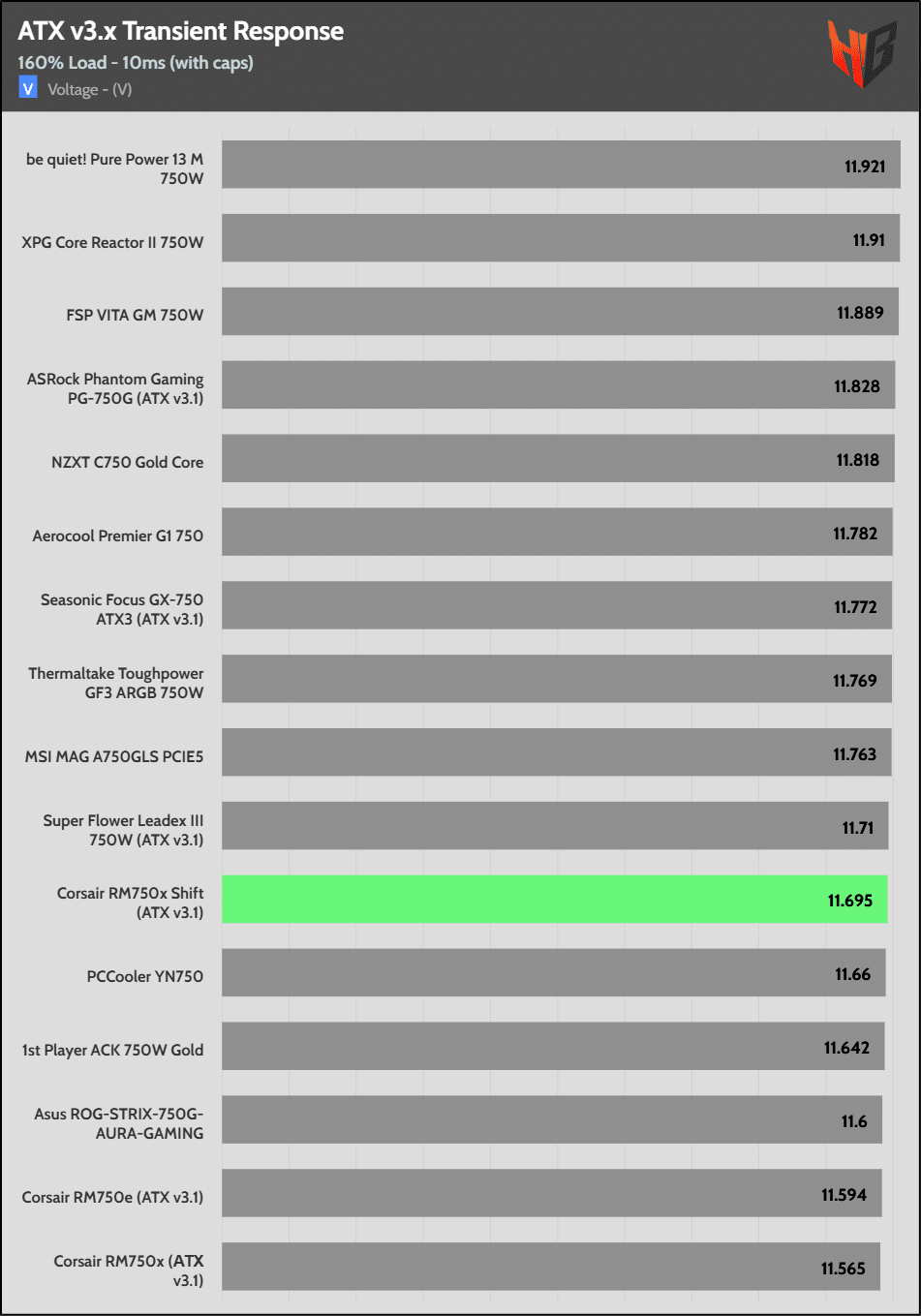 The 12V rail’s performance is average.
