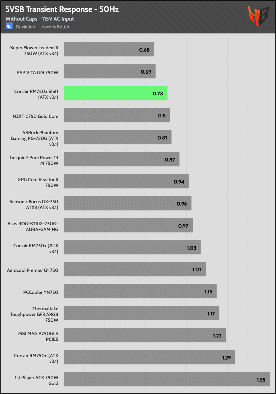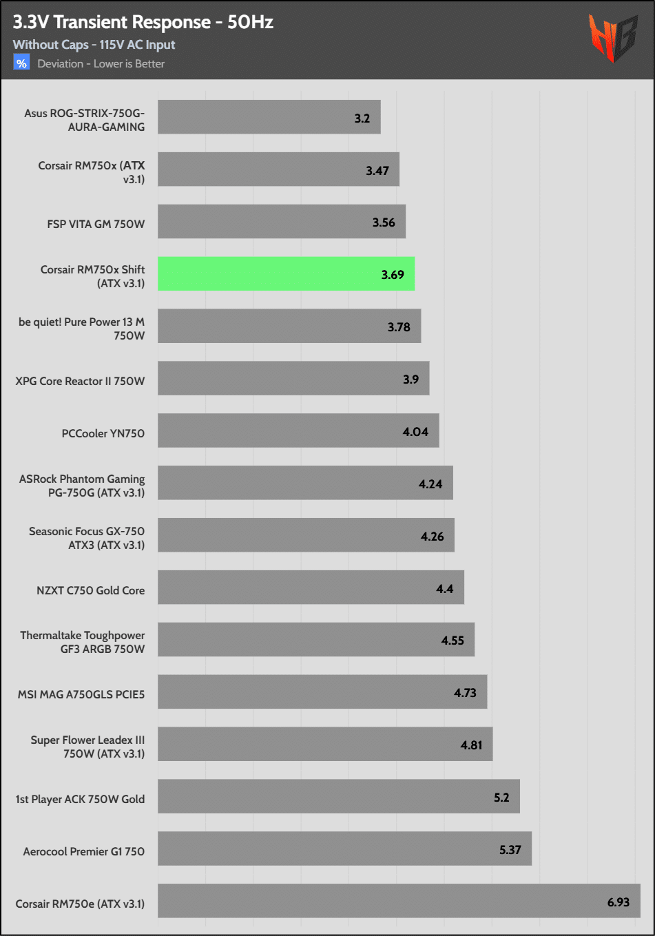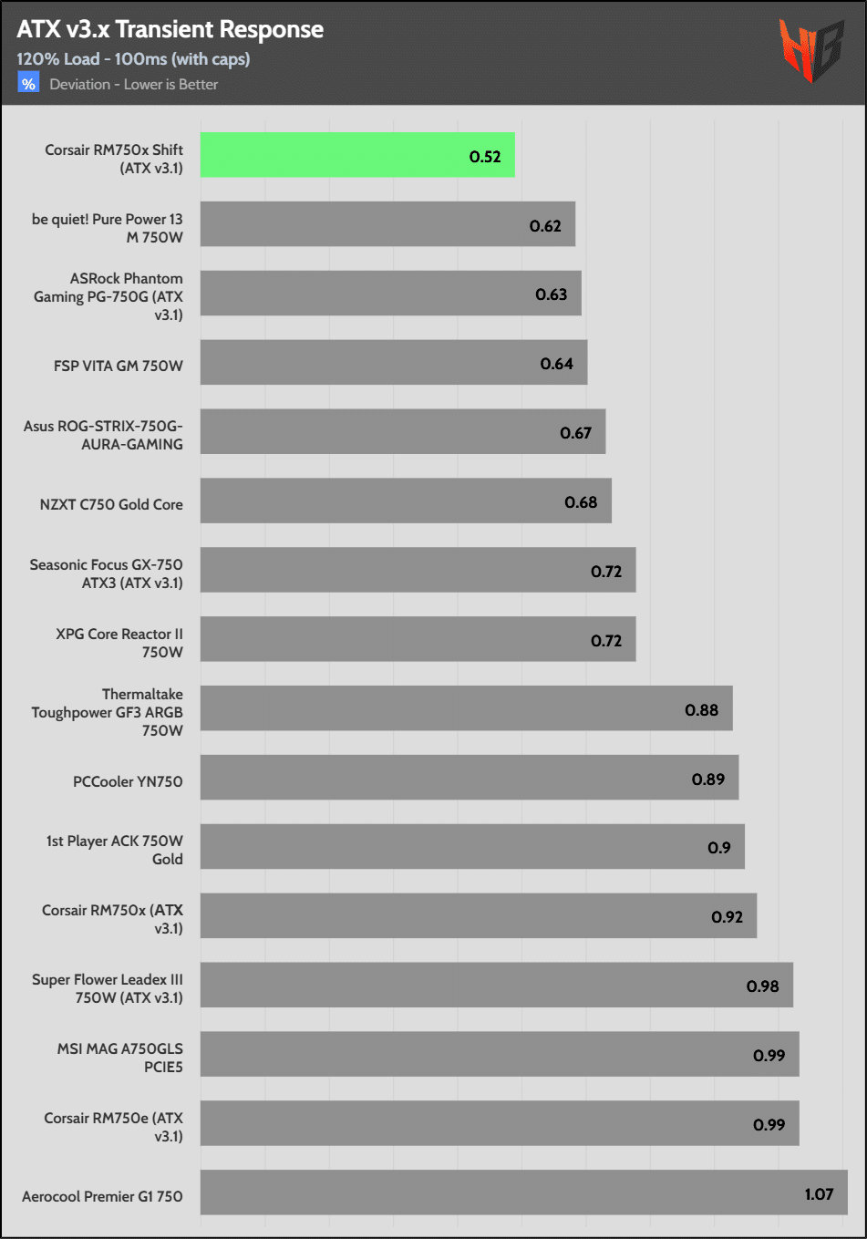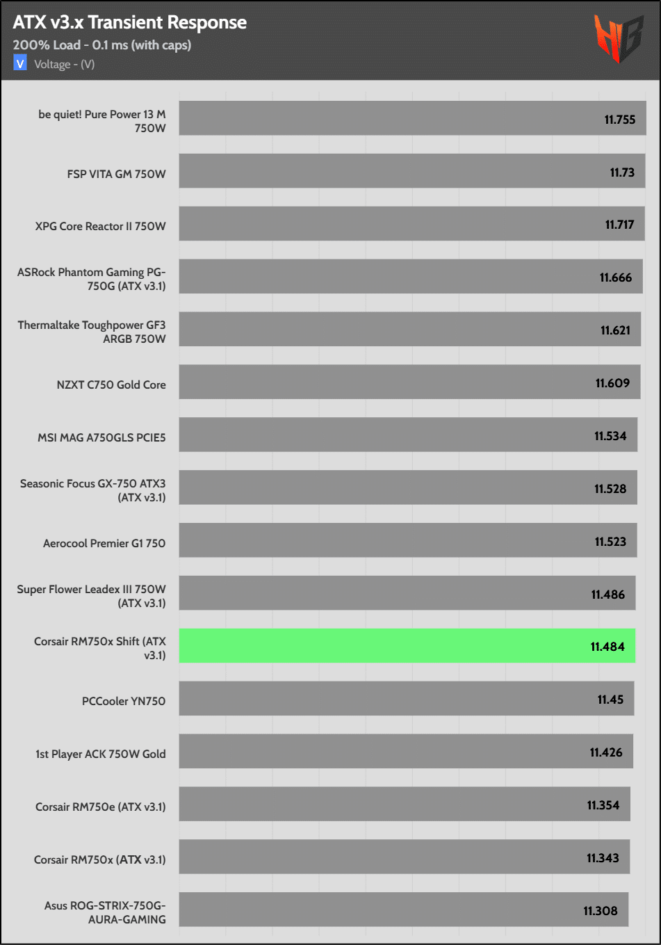The 12V rail’s performance is average.