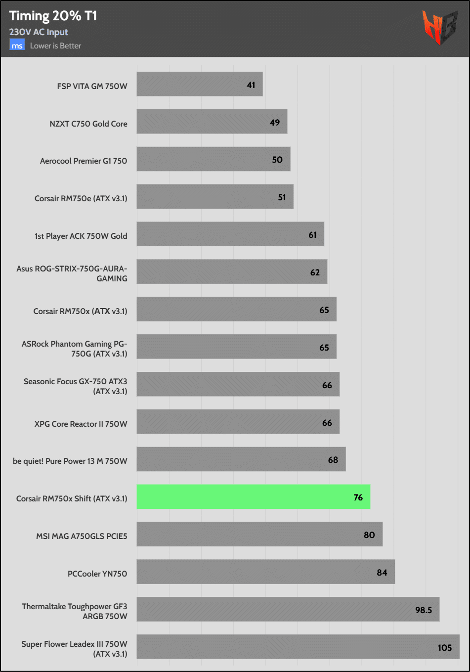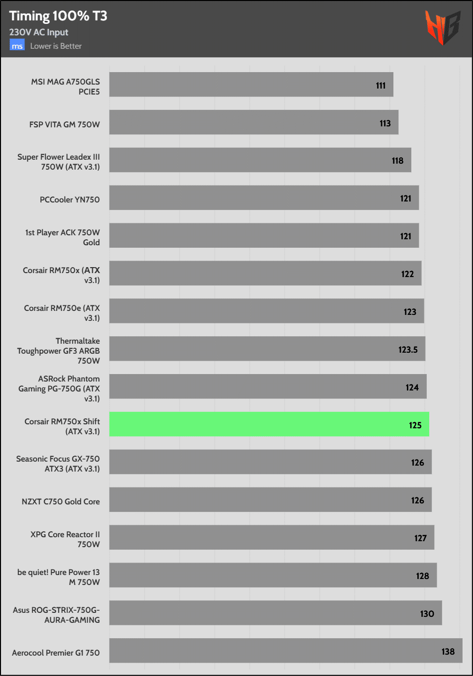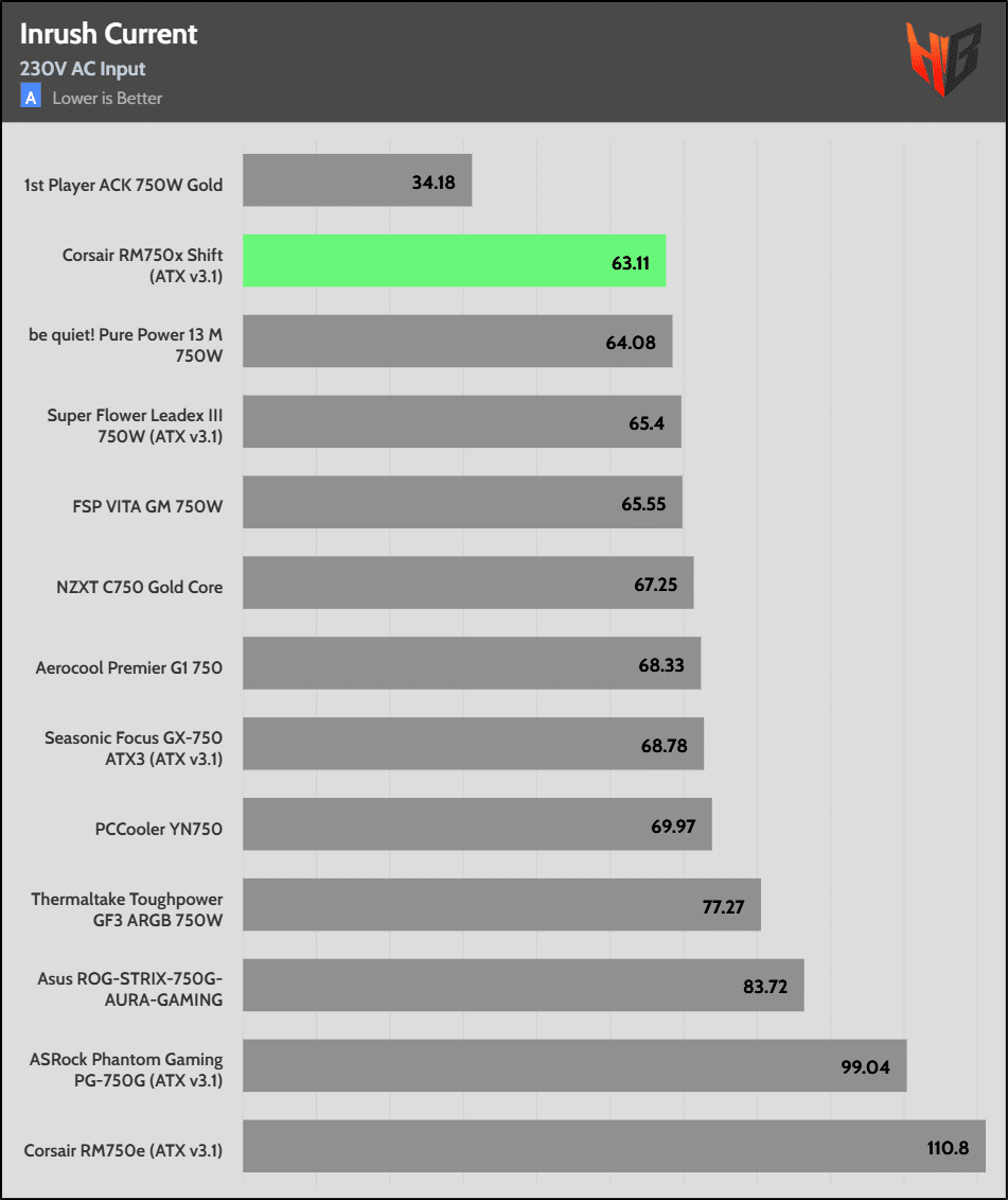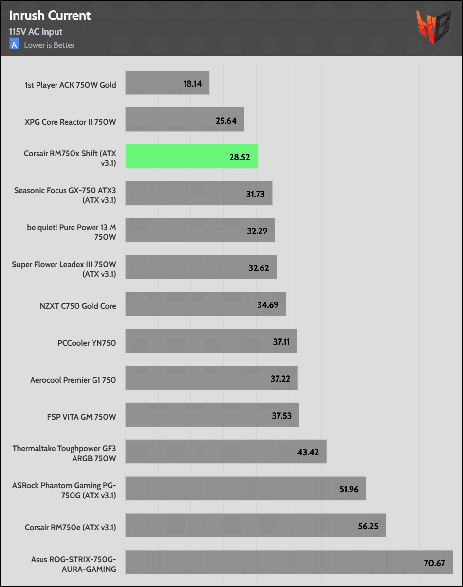 The hold-up time is extended. It is good to see Corsair over-covering the ATX spec’s corresponding requirement.