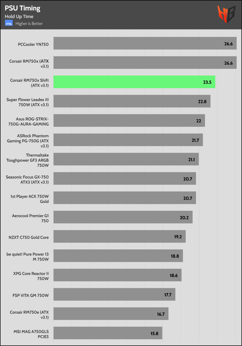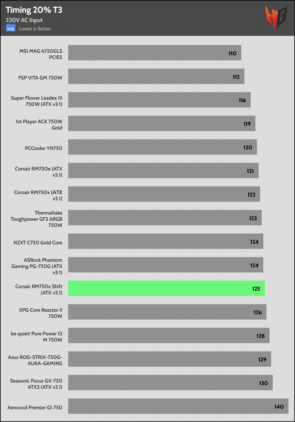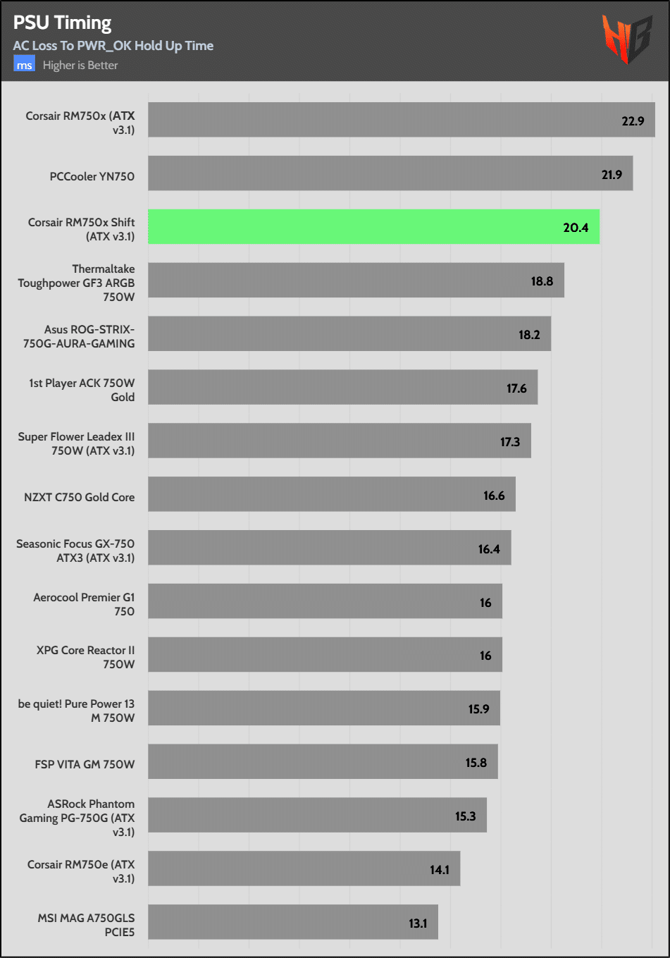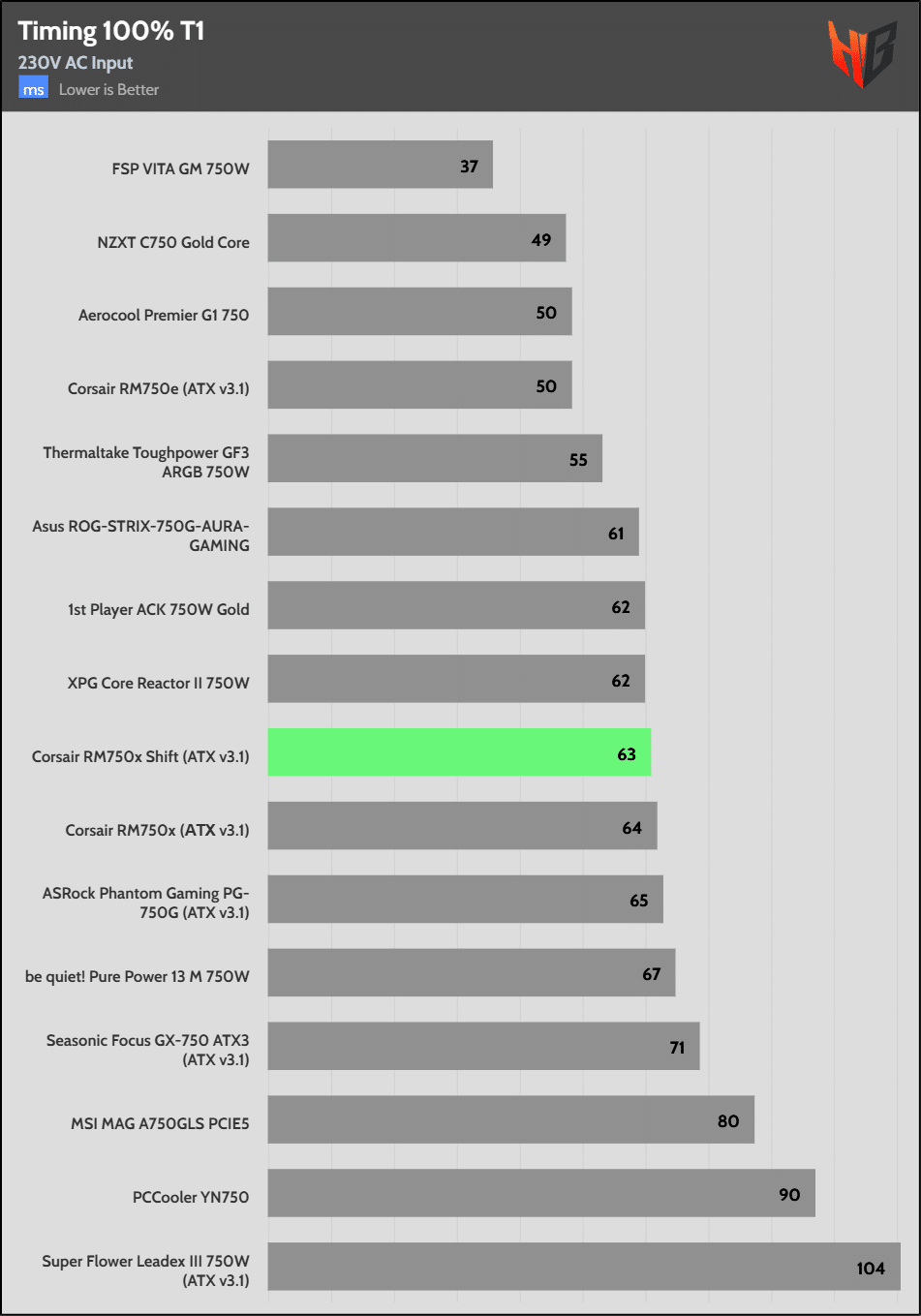 The hold-up time is extended. It is good to see Corsair over-covering the ATX spec’s corresponding requirement.