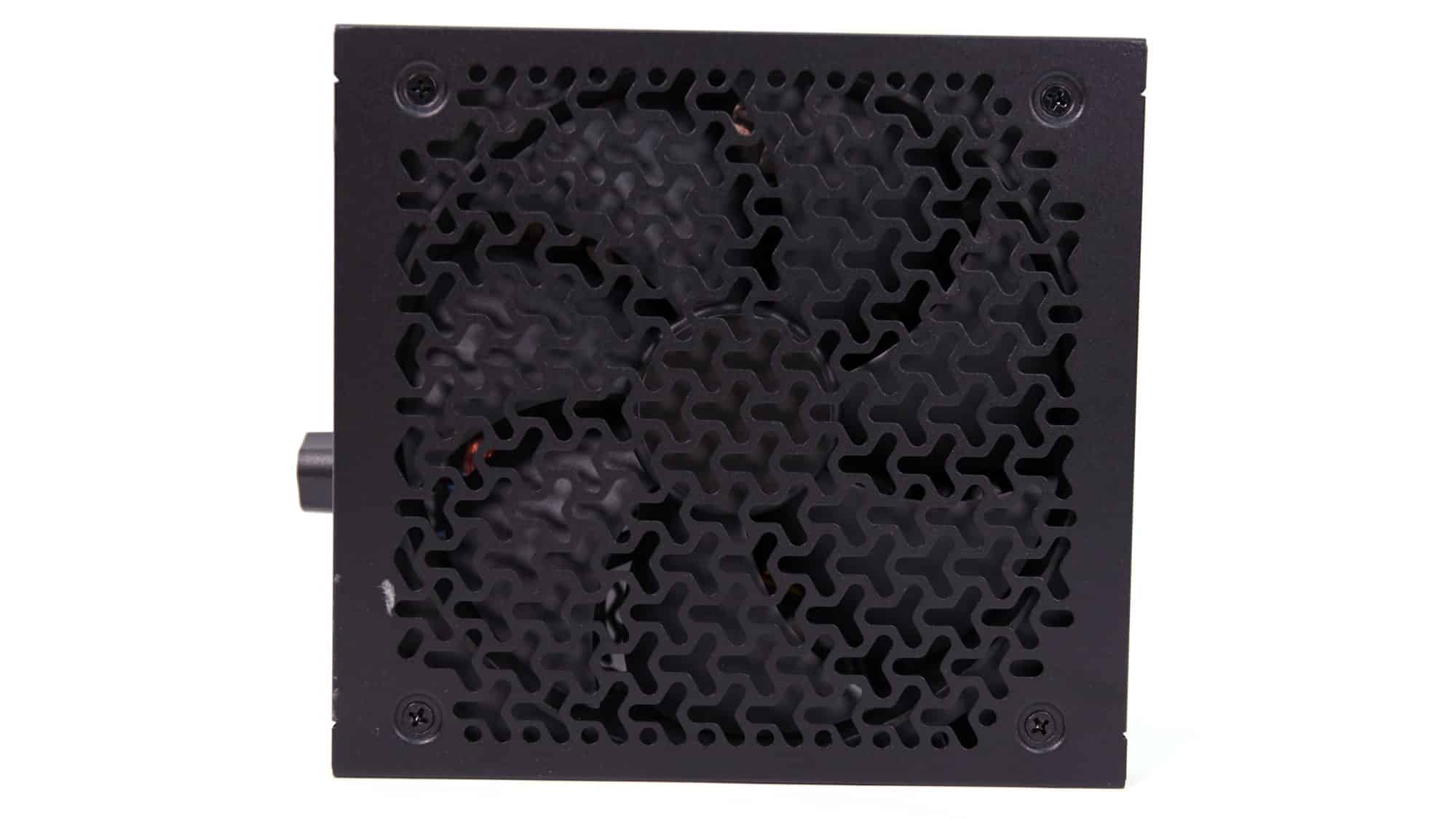 The PSU has standard dimensions, and its punched fan grille includes plenty of perforations, though they’re relatively small. On the front panel, you’ll find the AC inlet, power switch, and a fan-speed control knob that lets users tailor the cooling performance to their preferences.