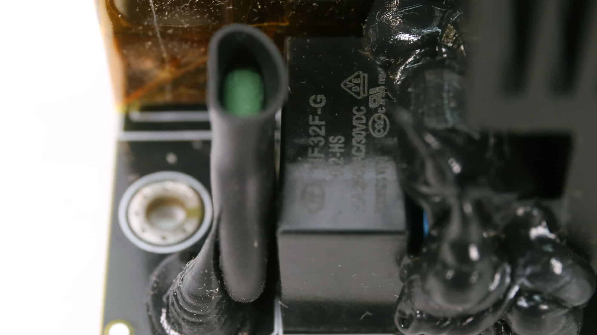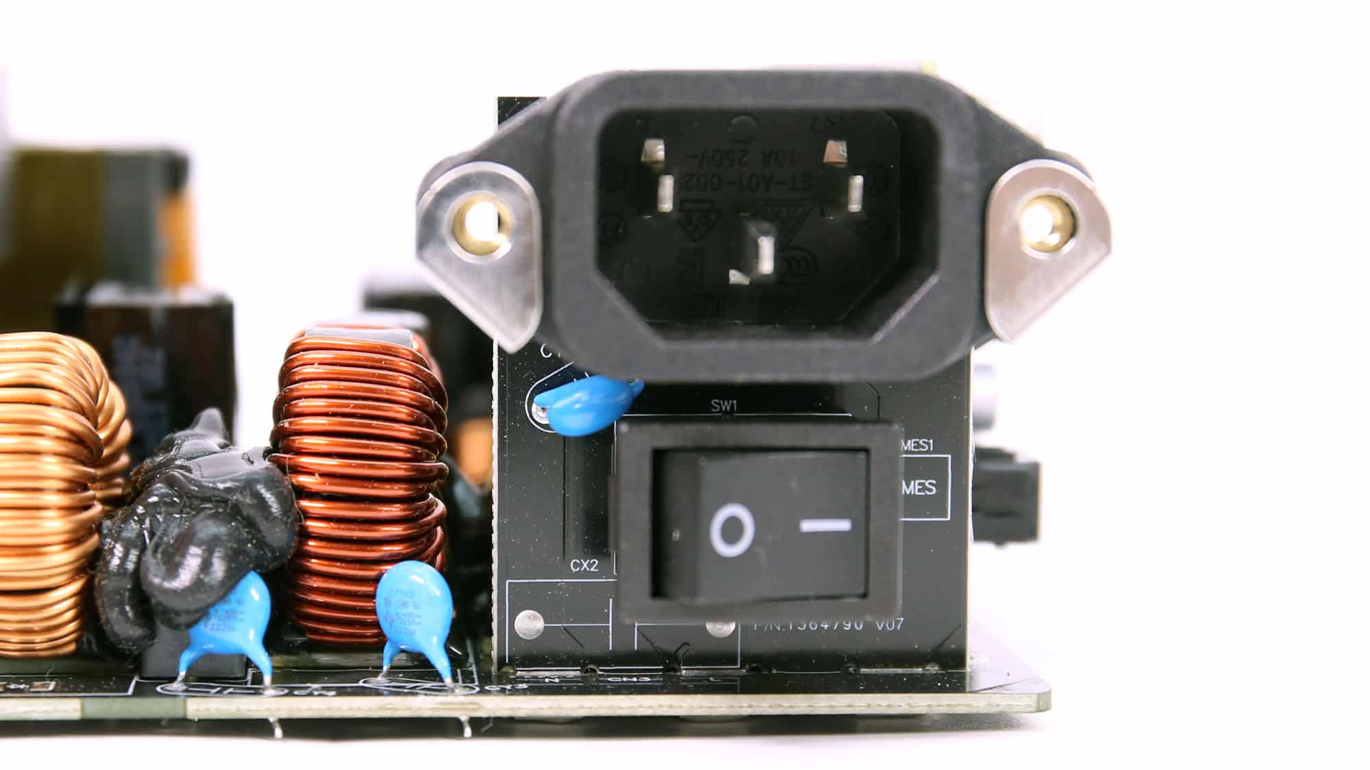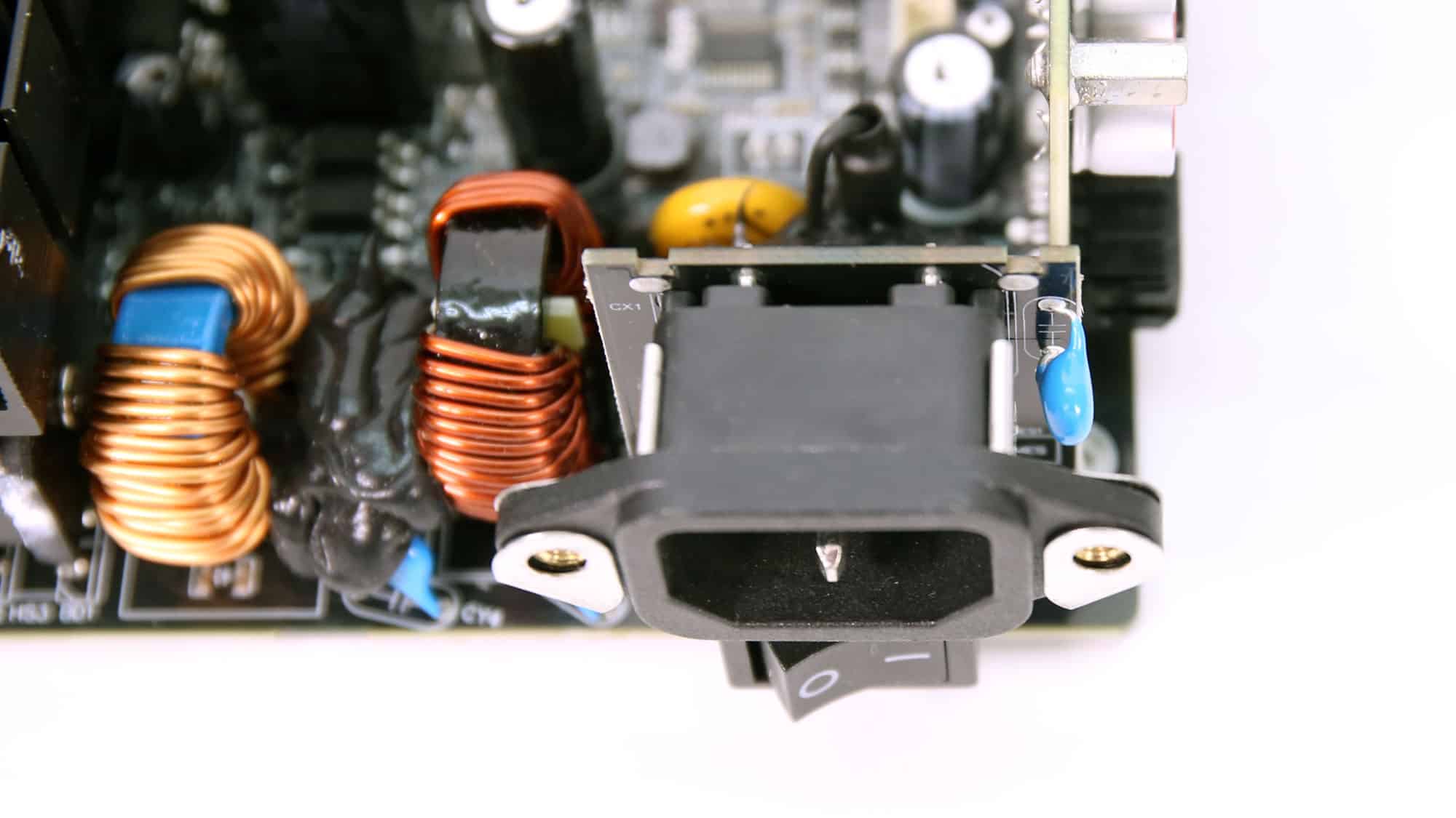 There is an MOV to protect from voltage surges and an NTC thermistor with a resistance of 5 ohms. Moreover, a bypass relay supports the NTC thermistor.
