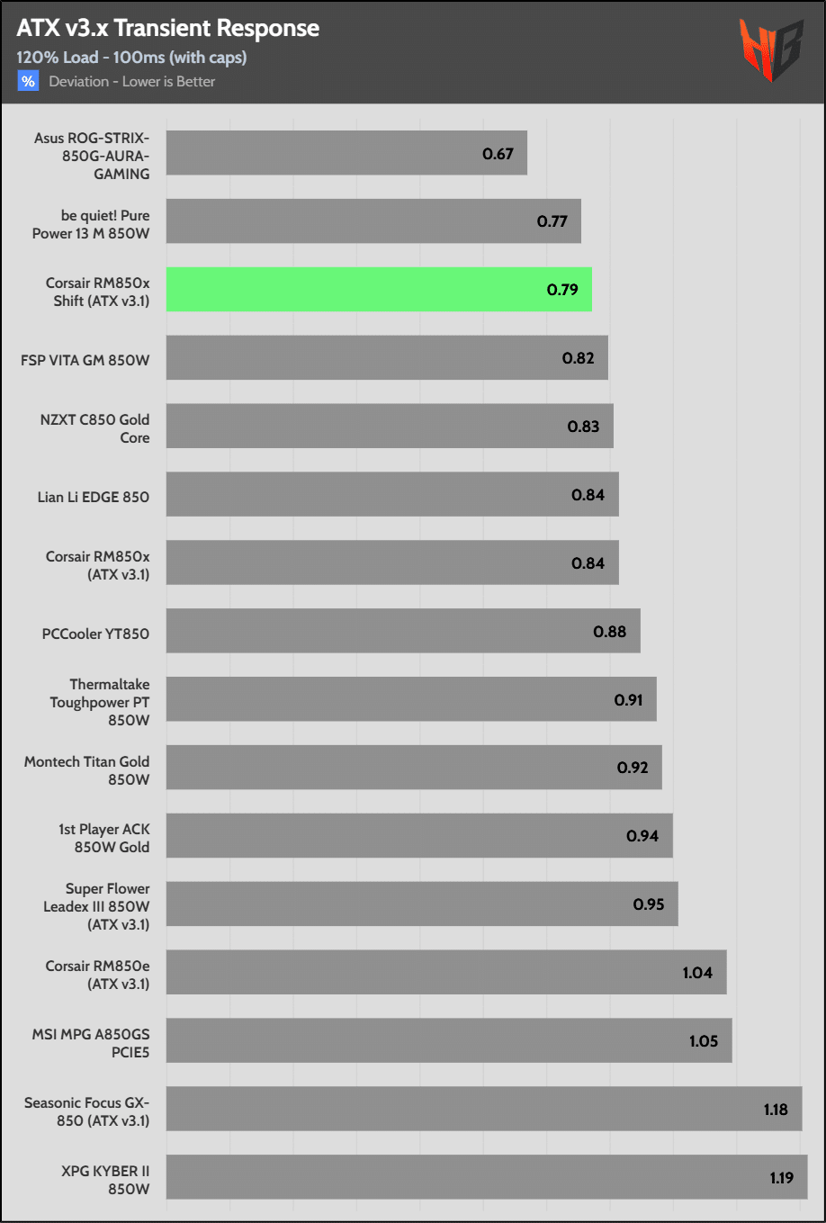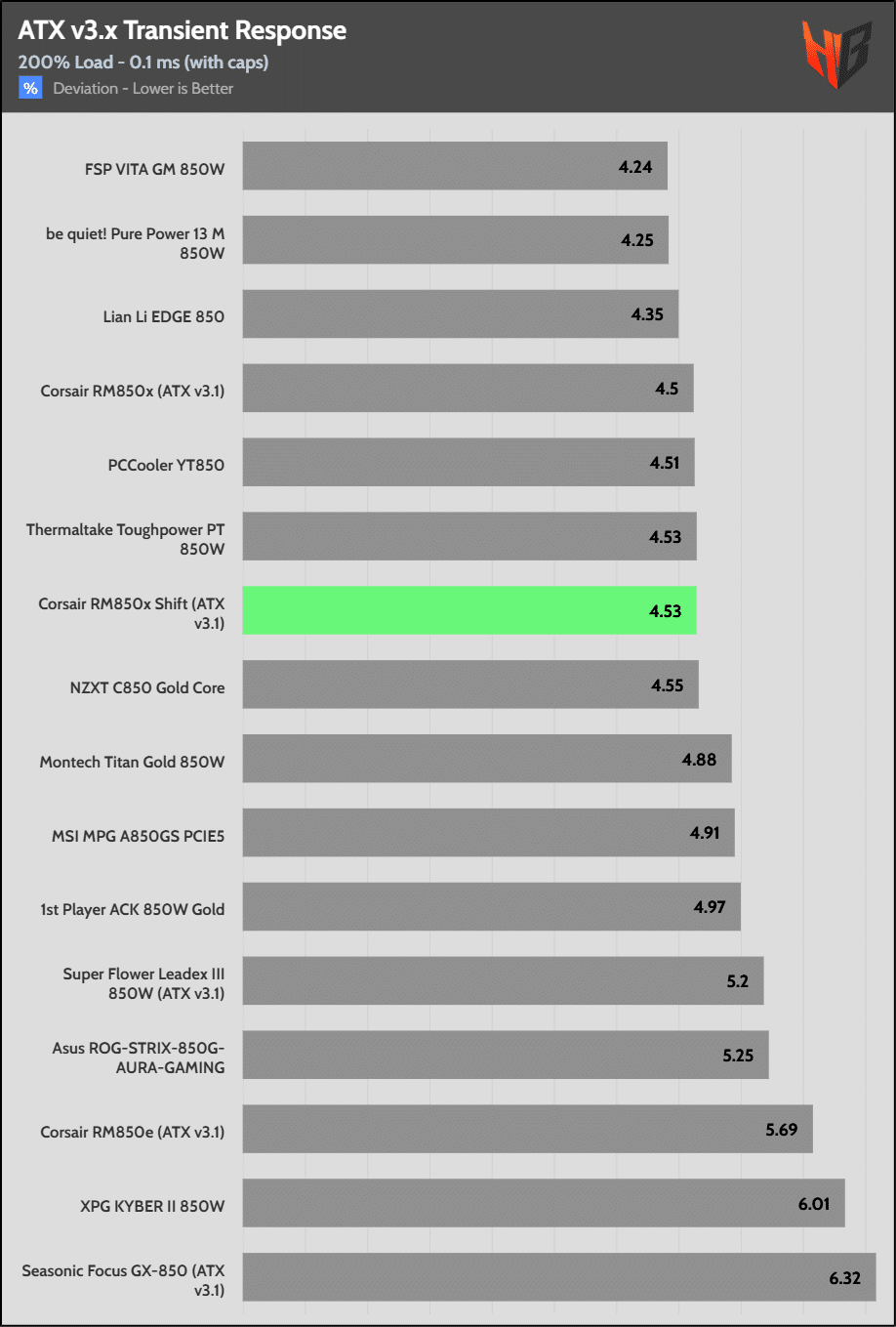 Transient response in power supplies refers to how quickly and effectively the PSU stabilises its output voltage during sudden changes in load demand, such as when a CPU or GPU increases its power draw. It’s measured by the time and voltage deviation during these shifts. A faster, smaller transient response ensures stable power, preventing instability and component damage.