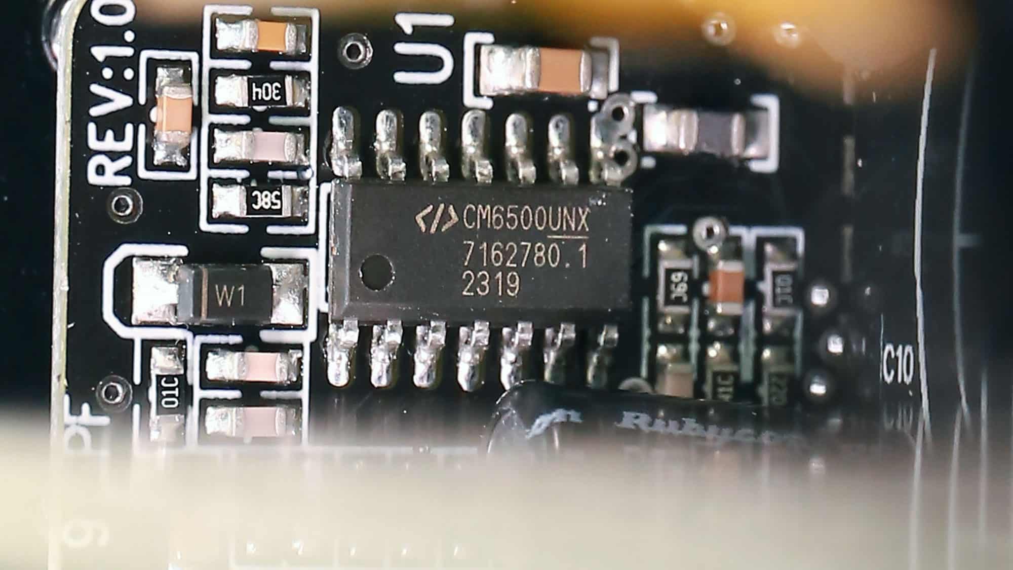 An APFC converter increases the power factor and provides a wide input voltage range. The converter utilizes Infineon IPP50R140CP FETs and a single CRMicro boost diode. The bulk cap is by Nichicon. Its capacity is 1,000uF and is rated for 2,000 h at 105 °C.