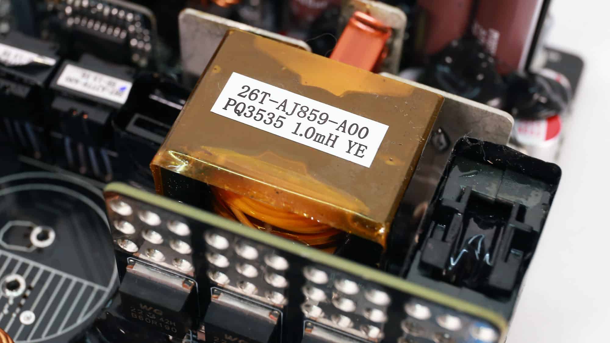 The main transformer that lowers the APFC’s DC bus voltage (around 380 VDC) to much lower levels, closer to 12V.
