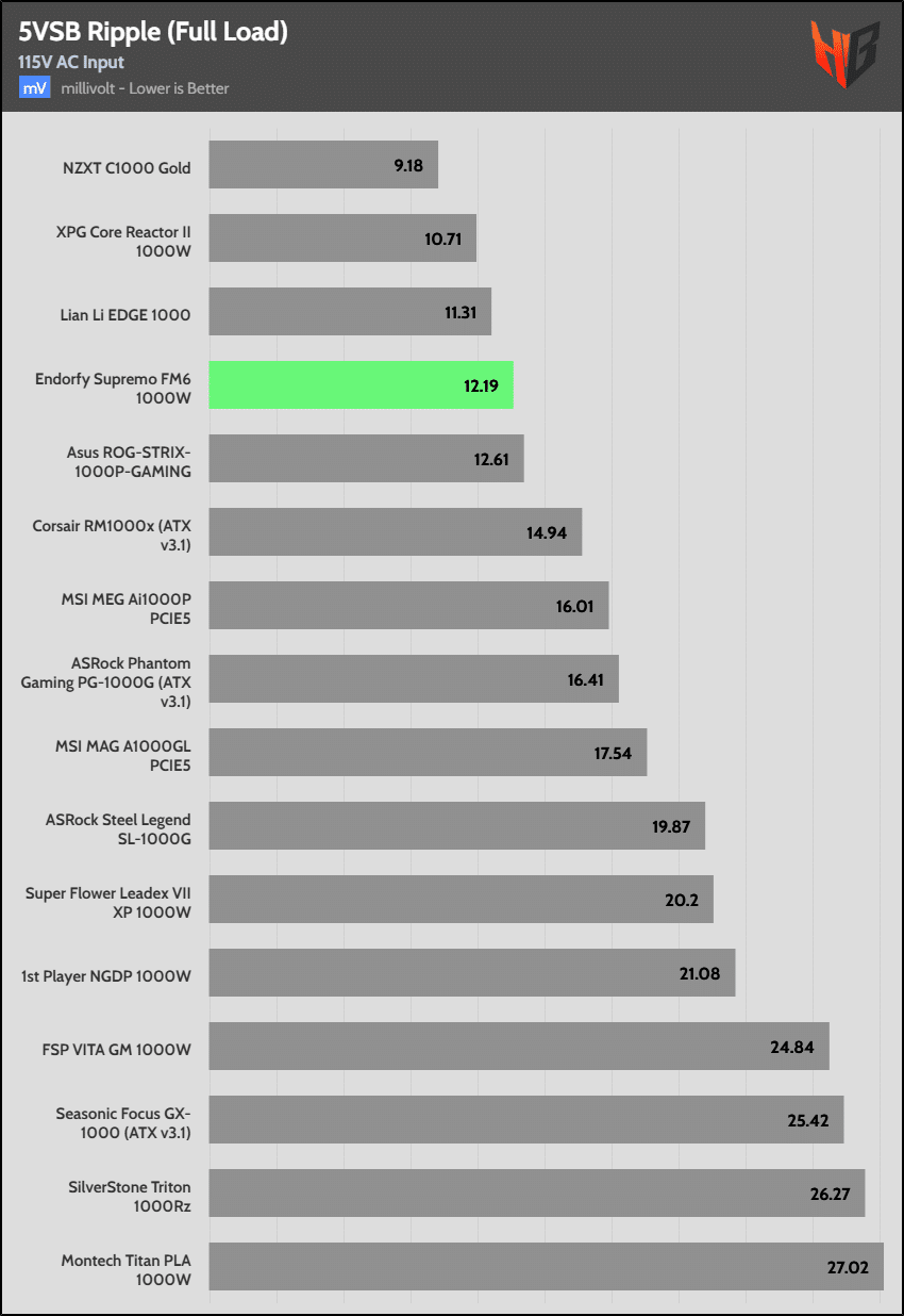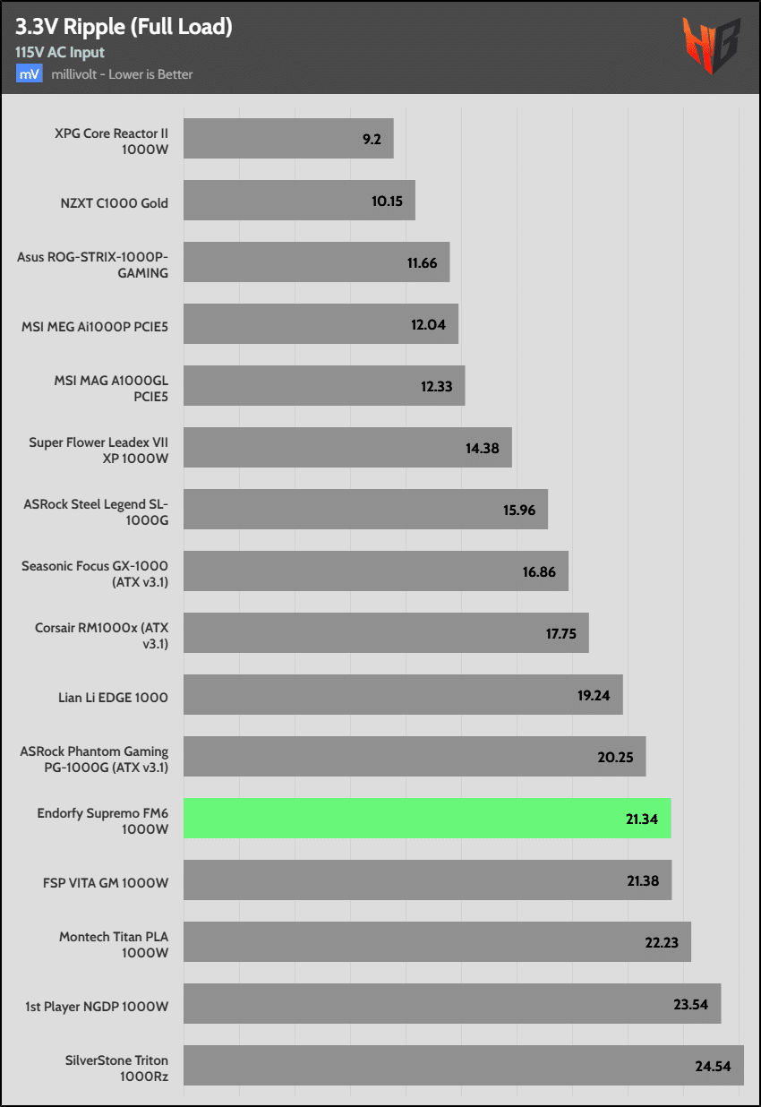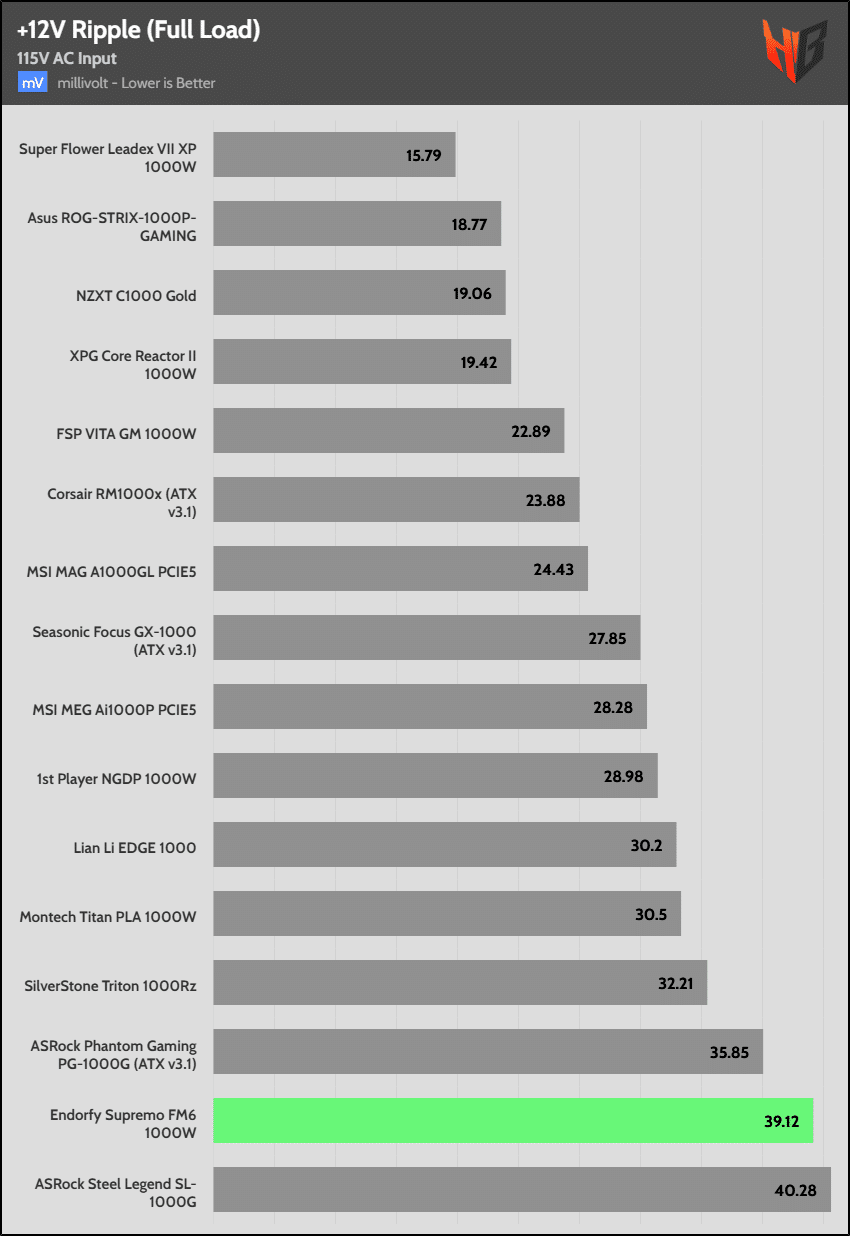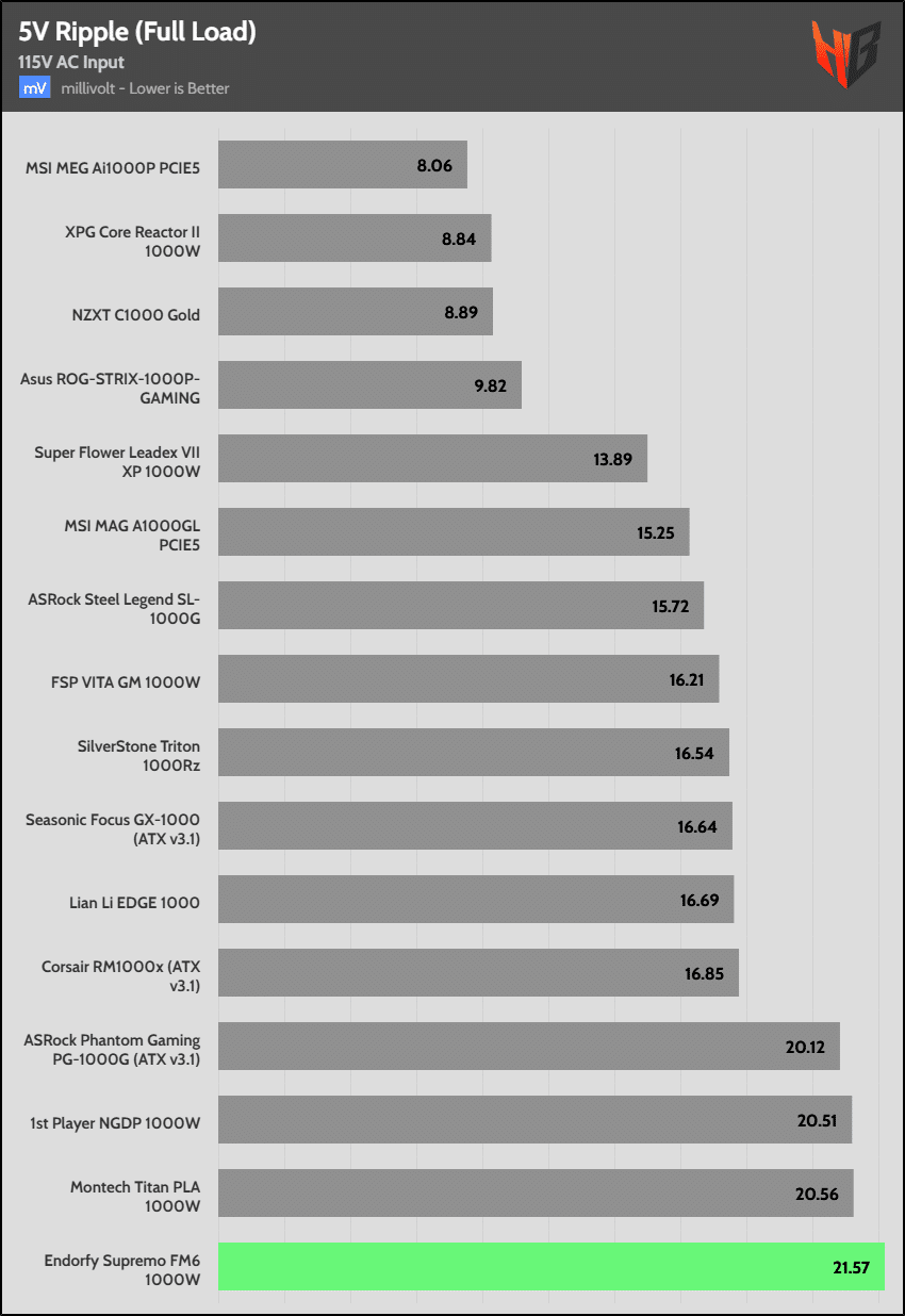 100% Load | 39.1 mV | 21.6 mV | 21.3 mV | 12.2 mV | Pass |