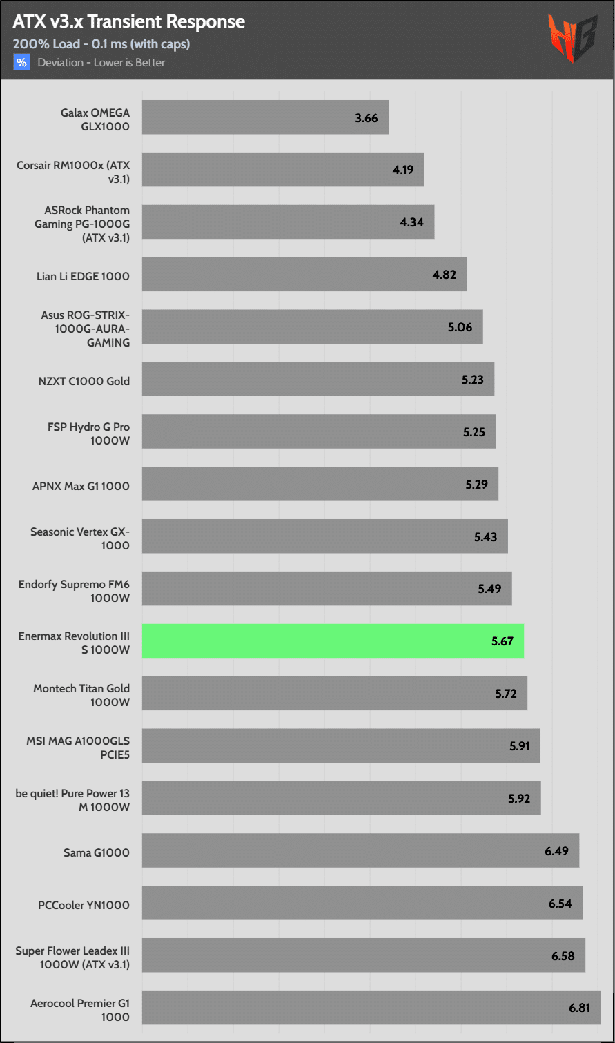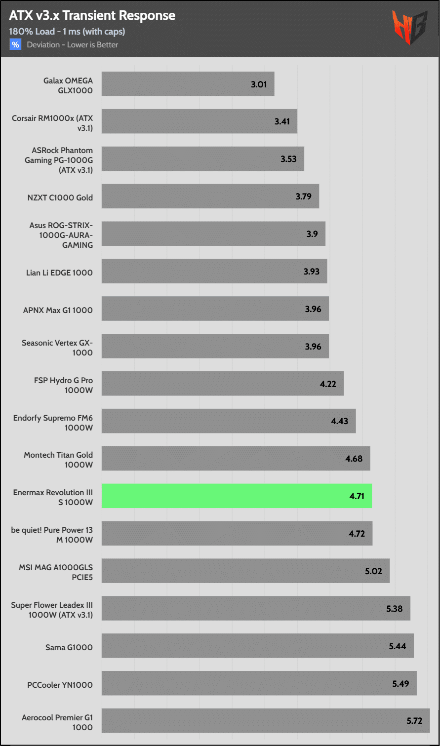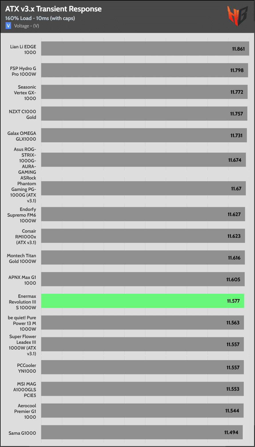 The ATX v3.1 uses an entirely different transient response load scheme, which Cybenetics adopts, to check against this standard.