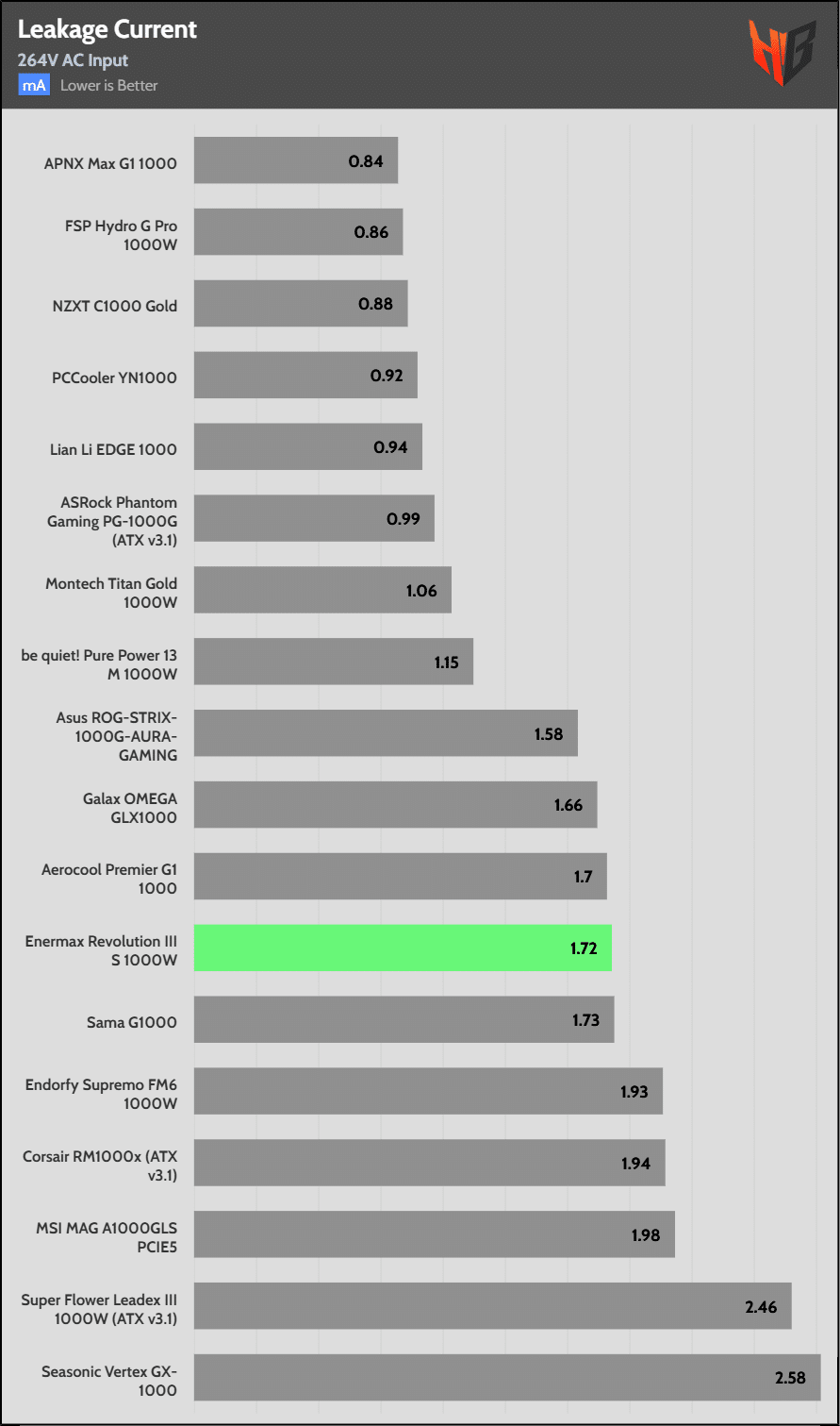 The hold-up time meets the ATX v3.1 spec’s requirements, but it is among the shortest in this category.