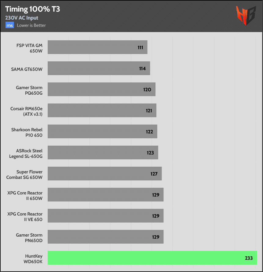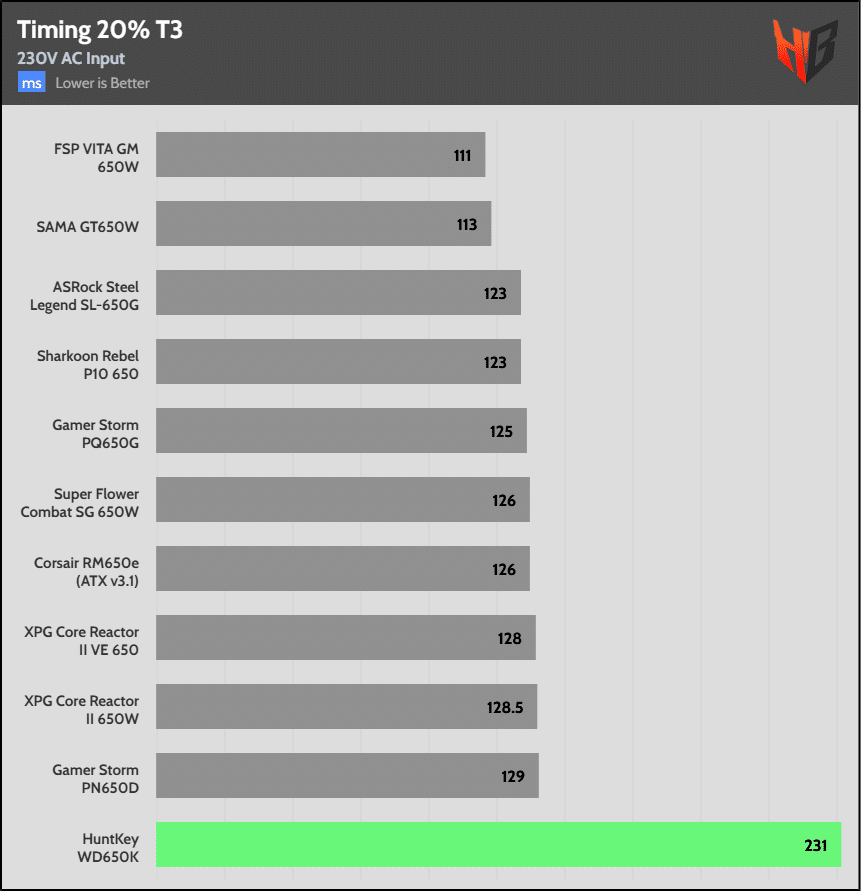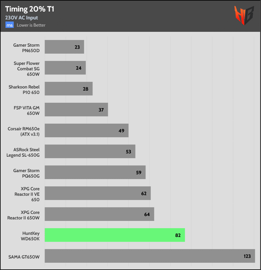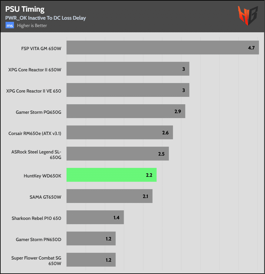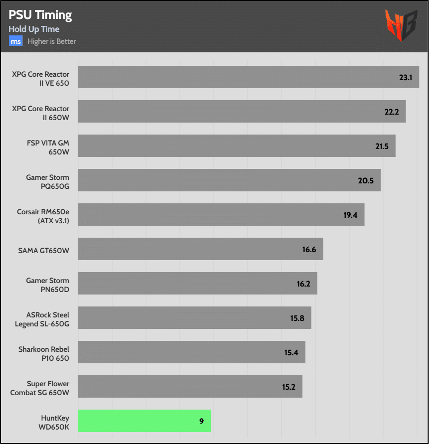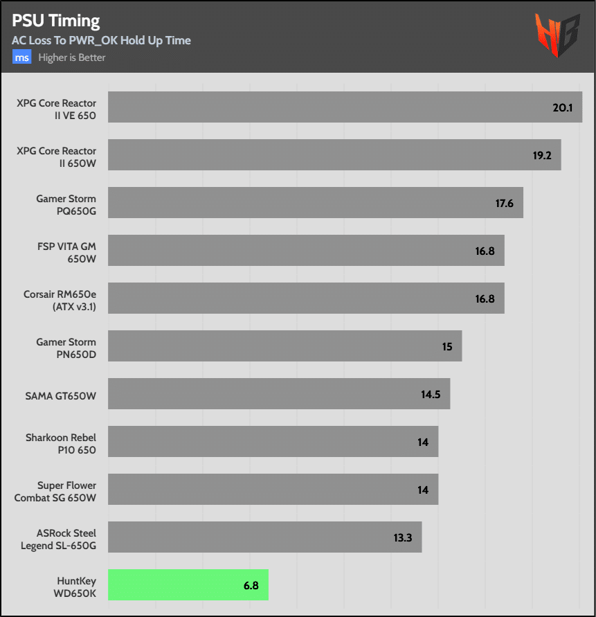 The hold-up time is dead low, which is one reason this unit is not ATX v3.1 compliant.
