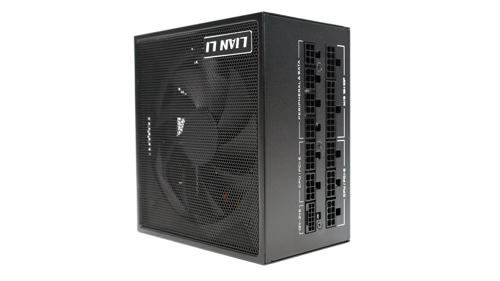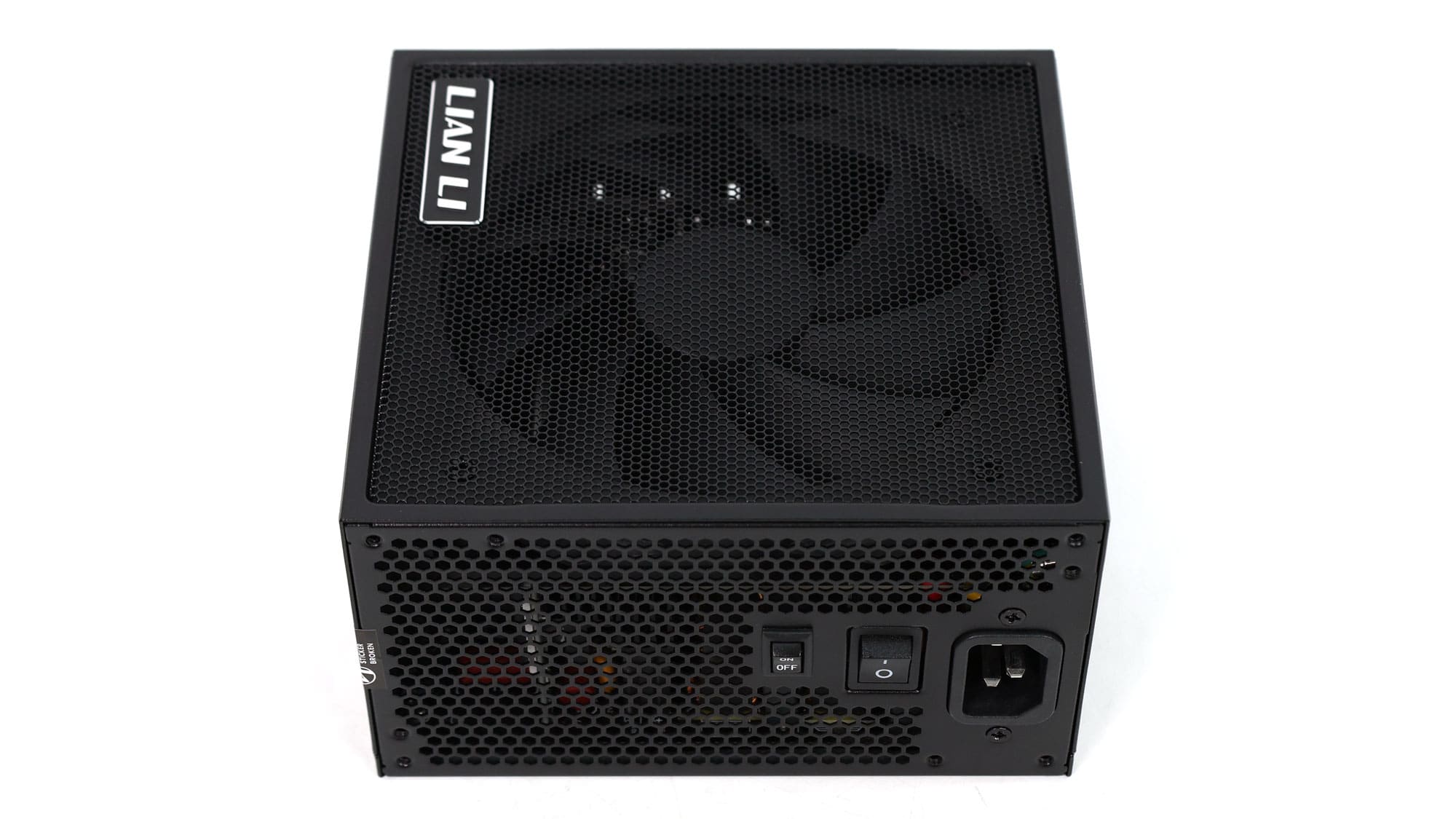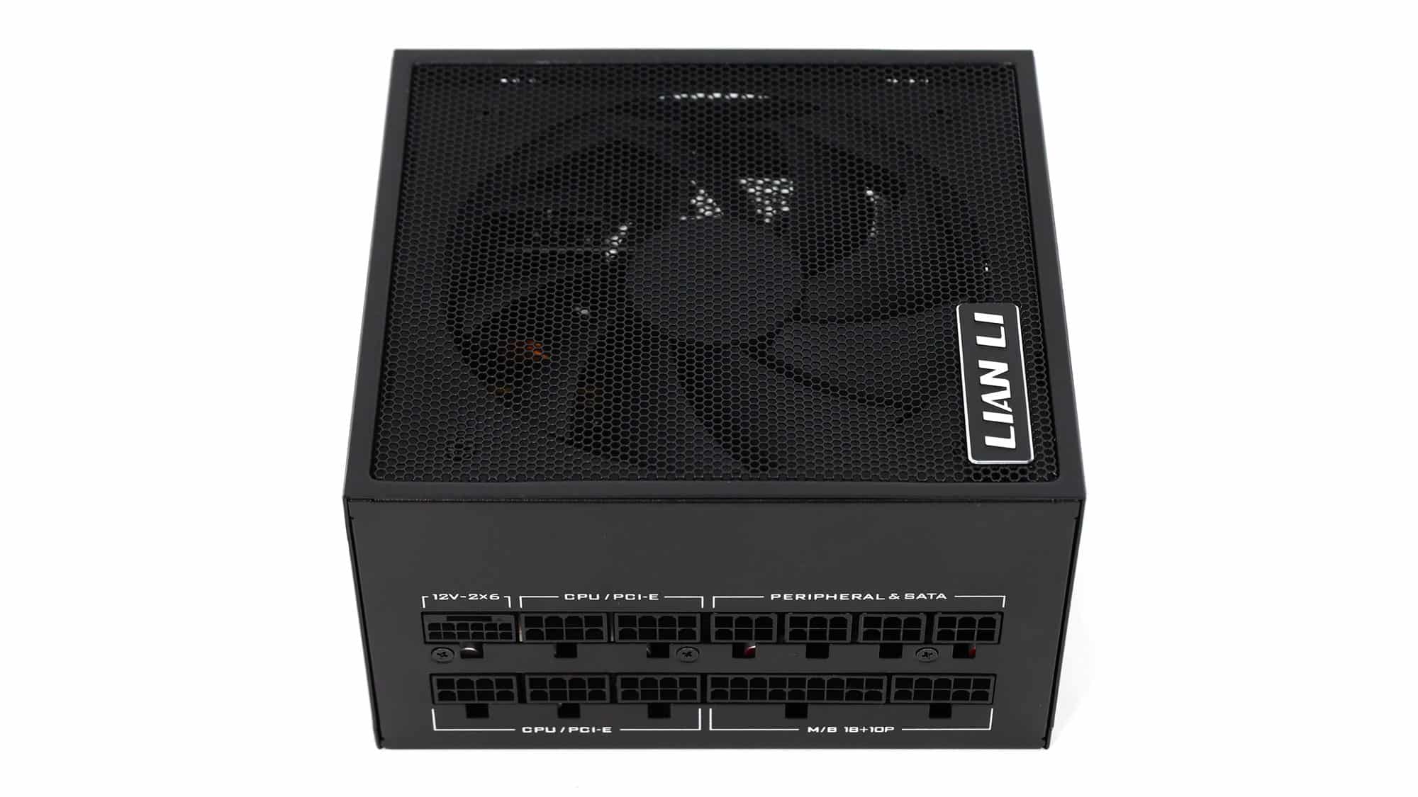 Overall, the dimensions are compact, with only 140mm in depth, making this PSU one of the smallest in the category (in footprint). This is why a 135-140mm fan couldn’t be installed; Lian Li opted for a 120mm fan instead.