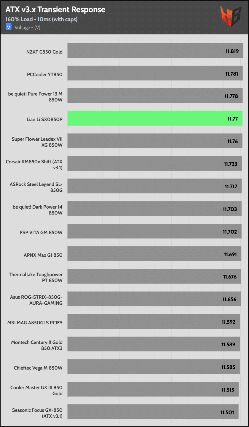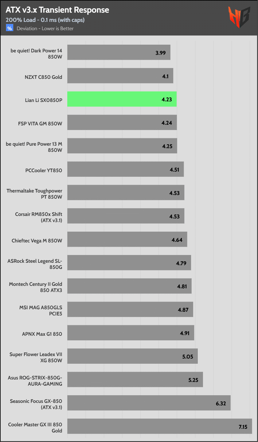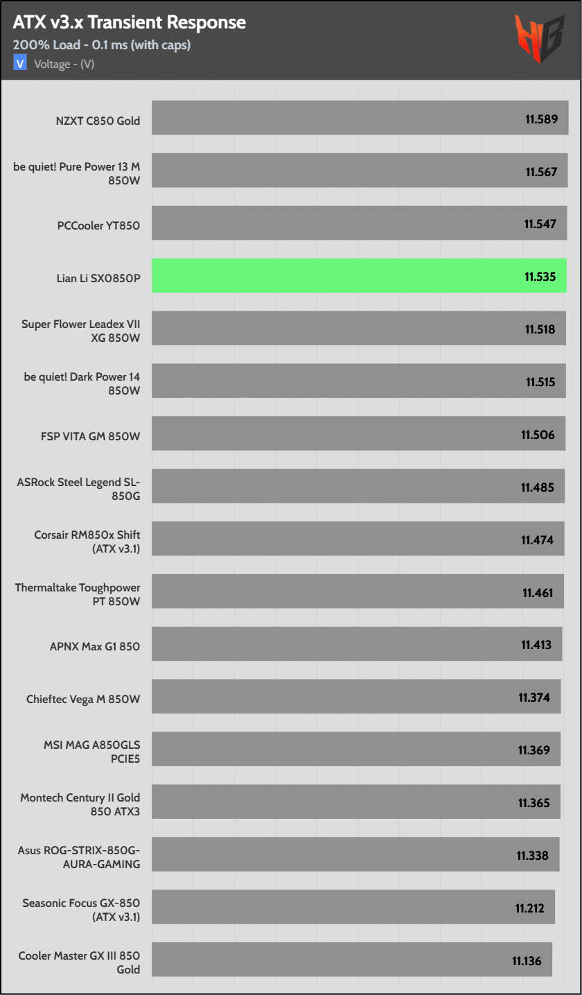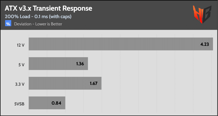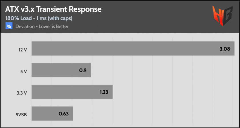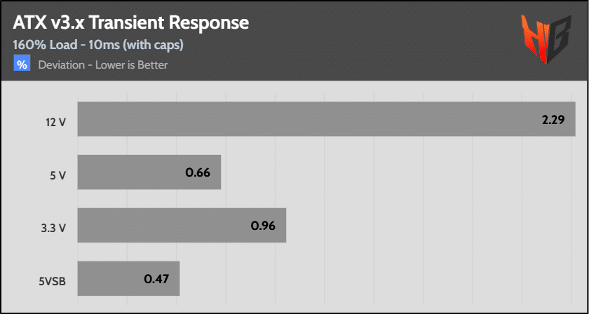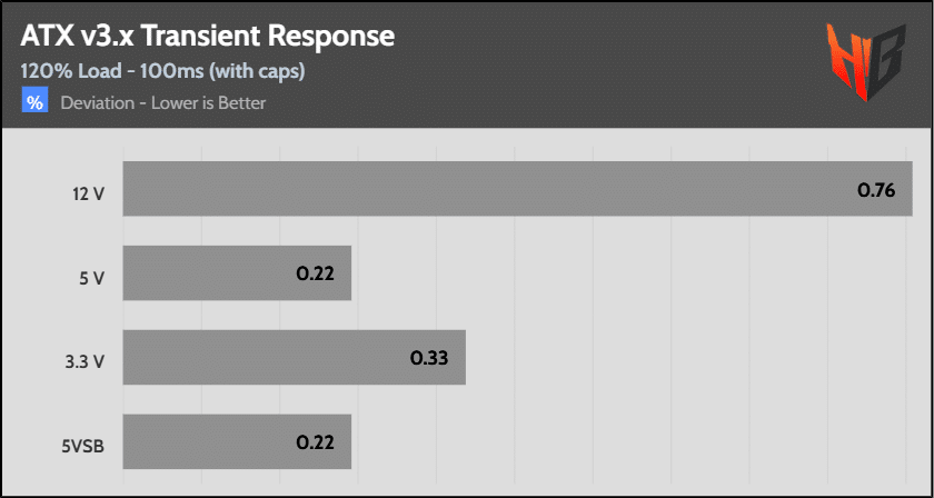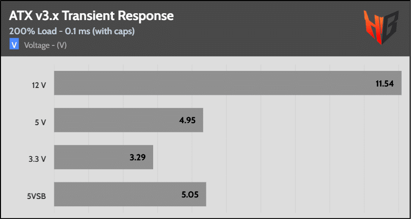 [Note] For PSUs without a 12+4 pin connector, the maximum applied load for the transient response tests is 150%, rather than 200%.The PSU passes all ATX v3.1 transient response tests.