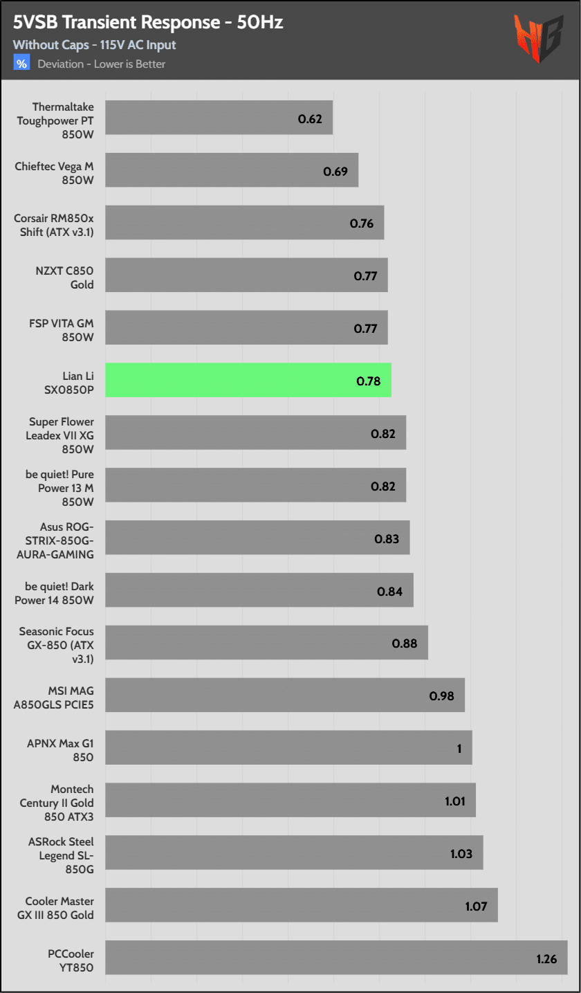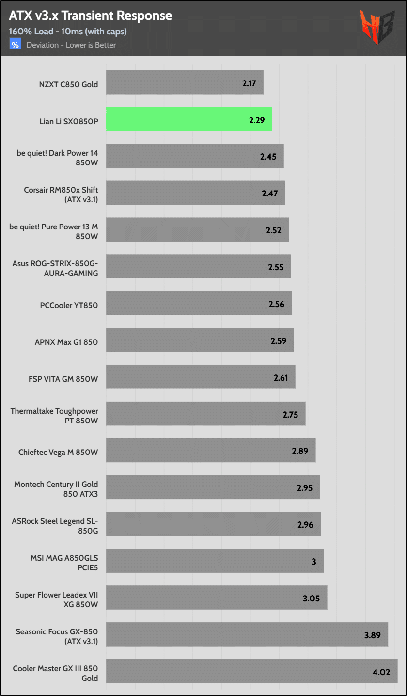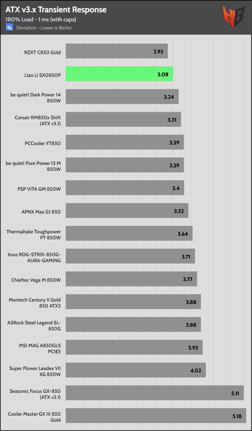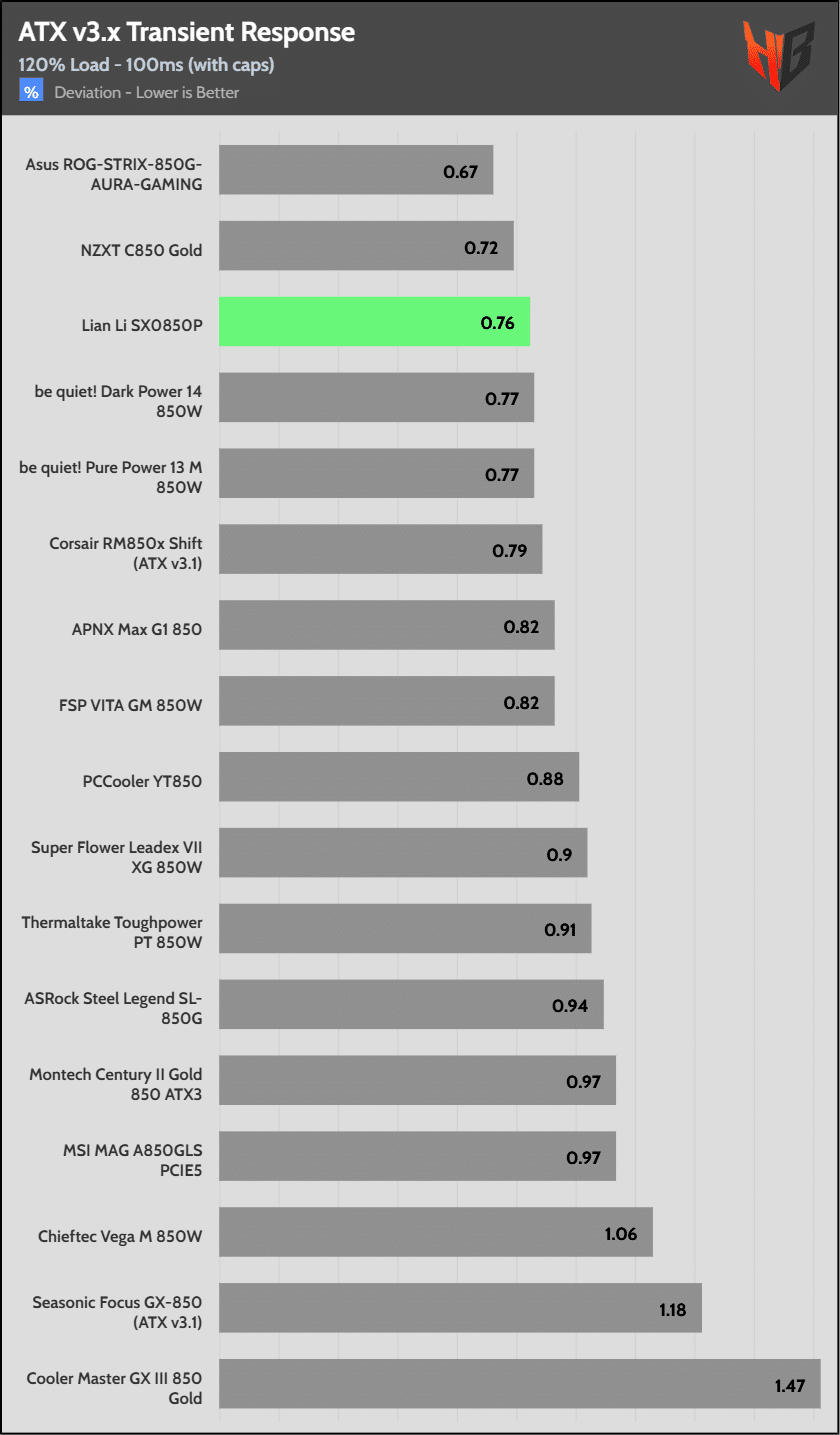 [Note] For PSUs without a 12+4 pin connector, the maximum applied load for the transient response tests is 150%, rather than 200%.The PSU passes all ATX v3.1 transient response tests.