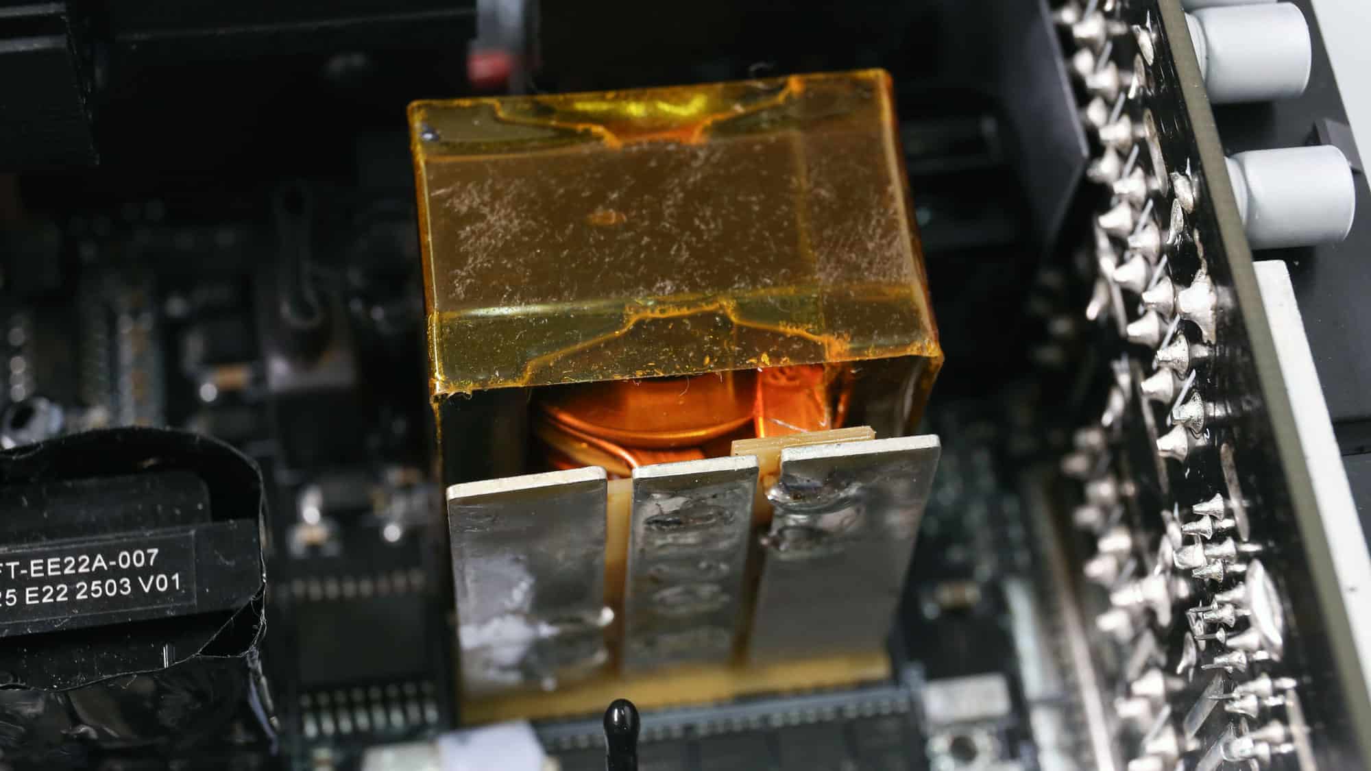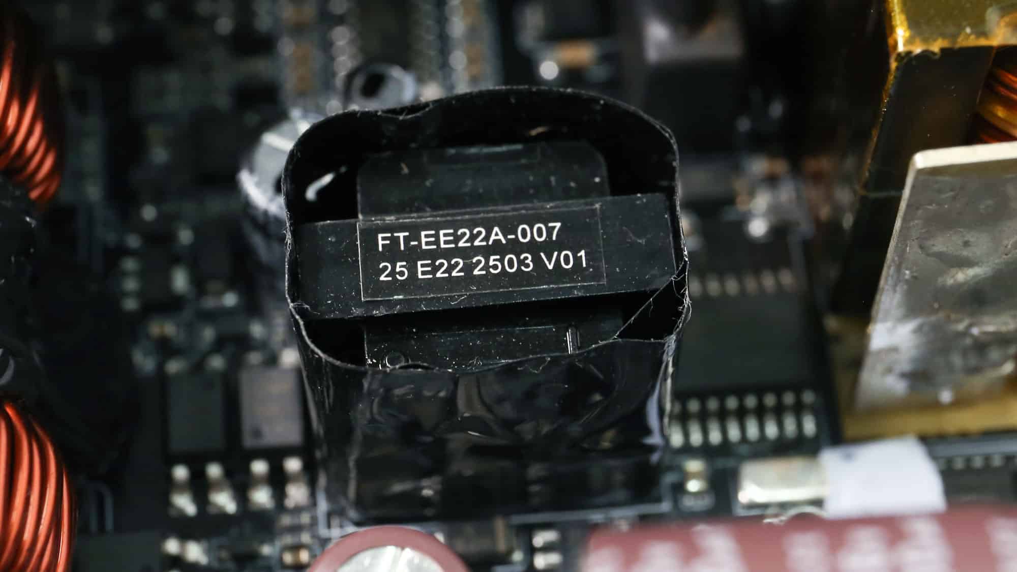 The PSU’s main transformer. One of its main functions is to isolate the primary and secondary sides electrically.