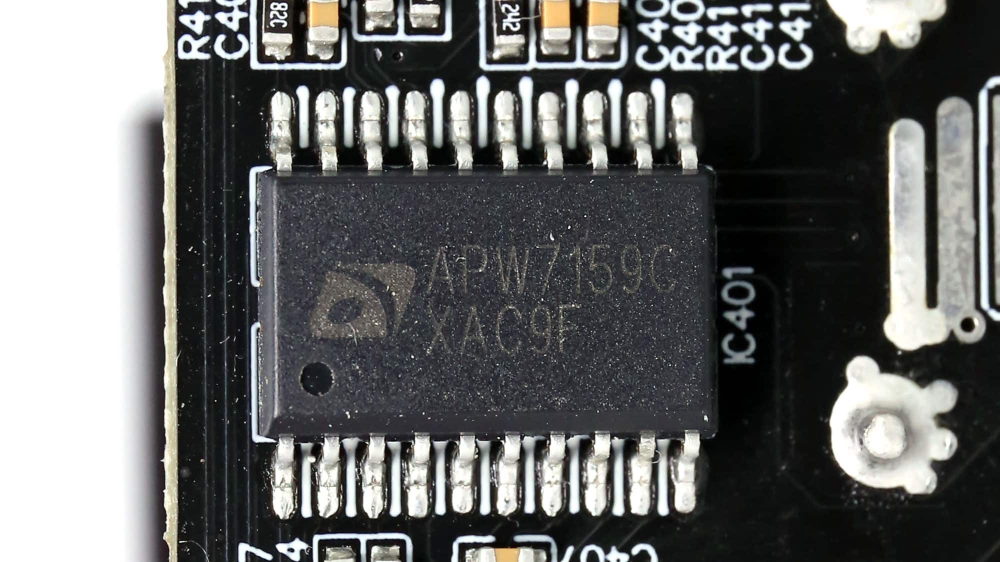 Two DC-DC converters generate the minor rails. They use four DMTH3004LK3 FETs. The PWM controller is an Anpec APW7159C.