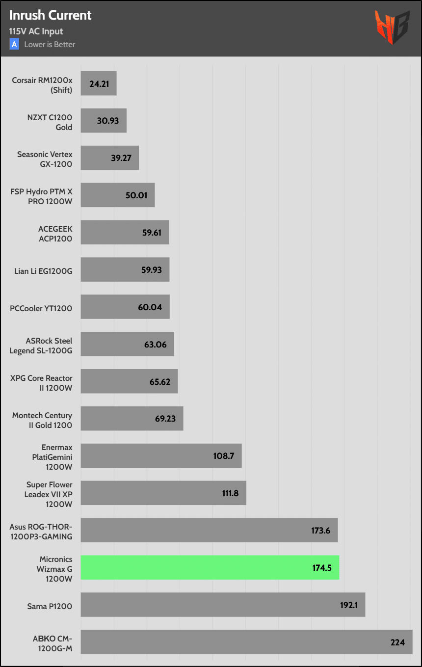 Inrush current in power supplies is the initial surge of current drawn when a PSU is first powered on, caused by the charging of capacitors and other components. It’s typically much higher than normal operating current and lasts briefly. A lower inrush current is preferable, as high surges can stress components, trip circuit breakers, or cause wear over time.