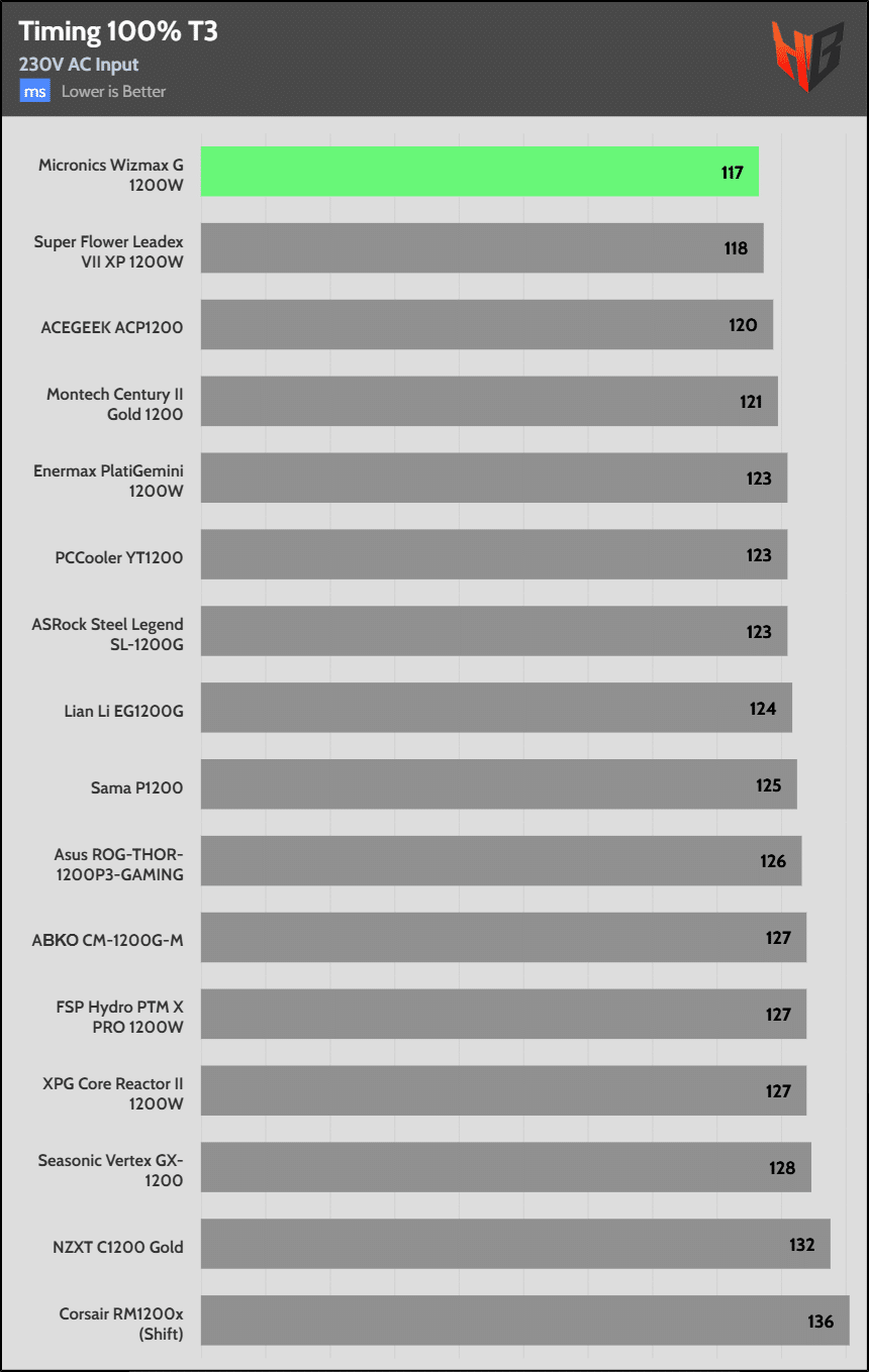 - T3 (Power Good Delay): This is the time interval between when the output voltages reach their nominal levels and when the PWR_OK signal is asserted, typically ranging from 100 to 500 ms. For ALPM compliance, it has to be between 100-250 ms, with Intel recommending 100 – 150 ms. T3 ensures the PSU signals the system only when the power output is fully stable.