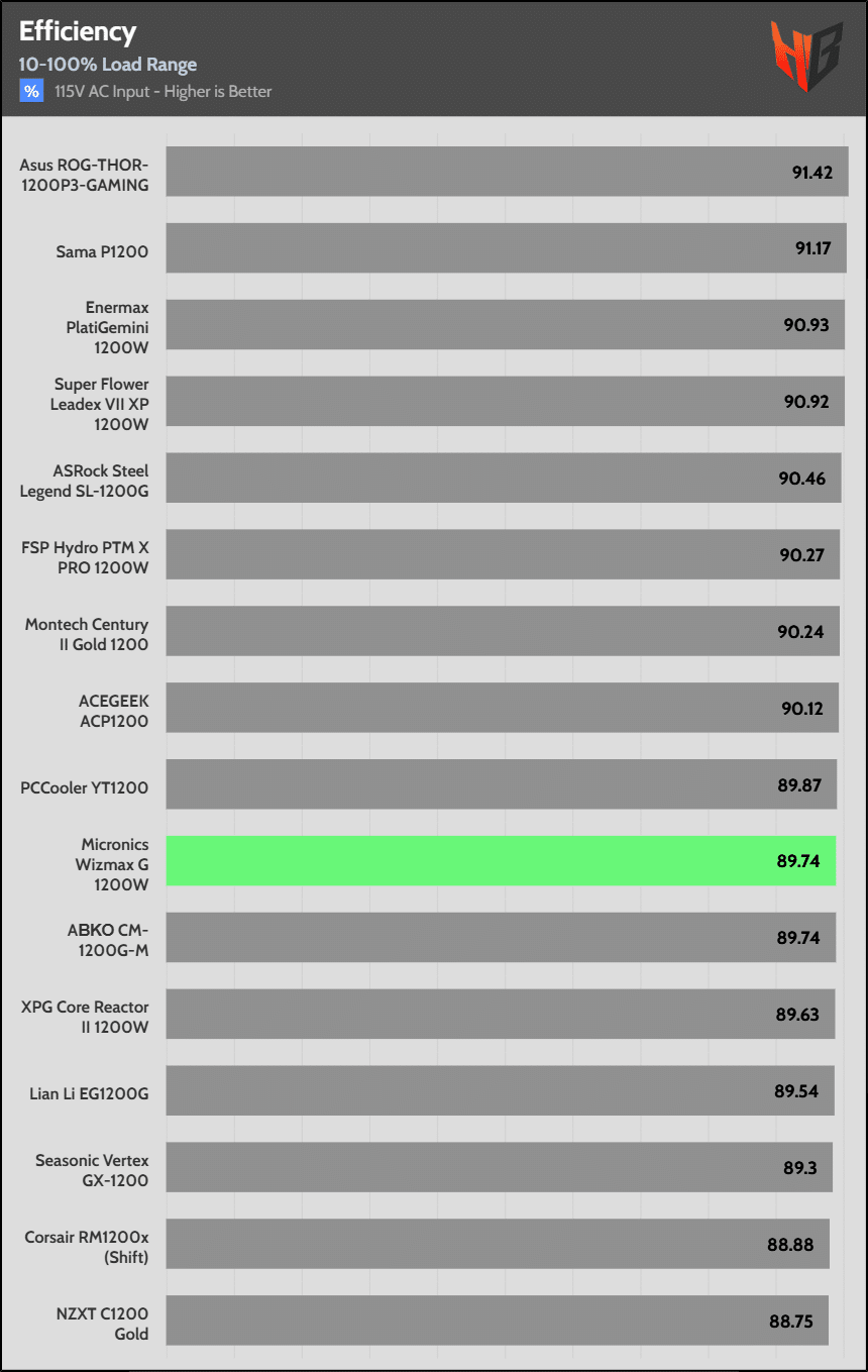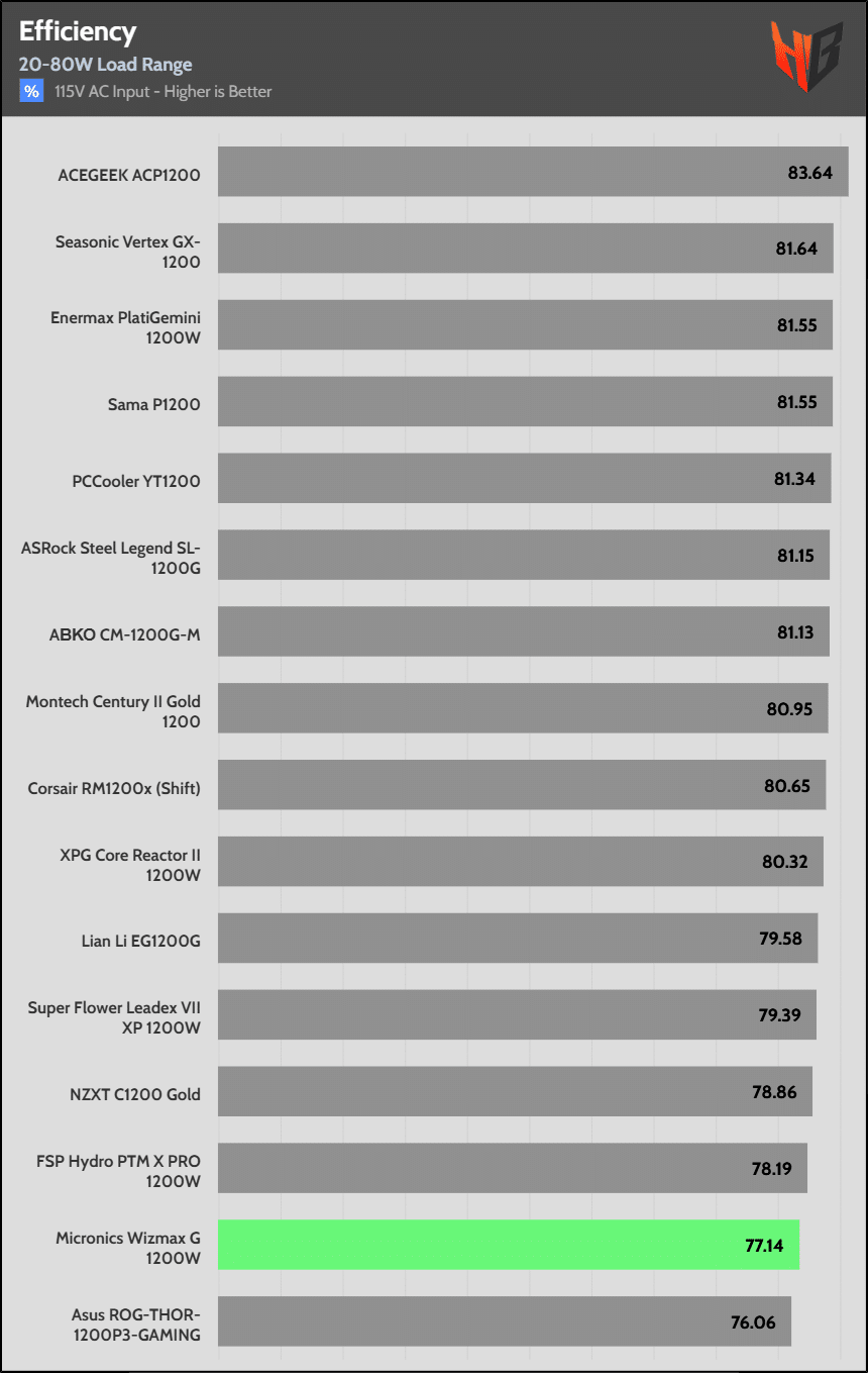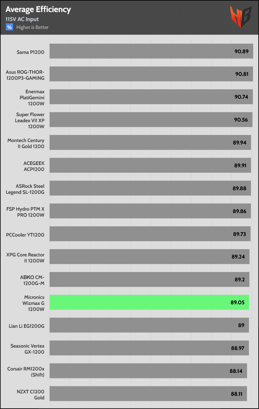 The average efficiency barely meets the Cybenetics Platinum criteria.