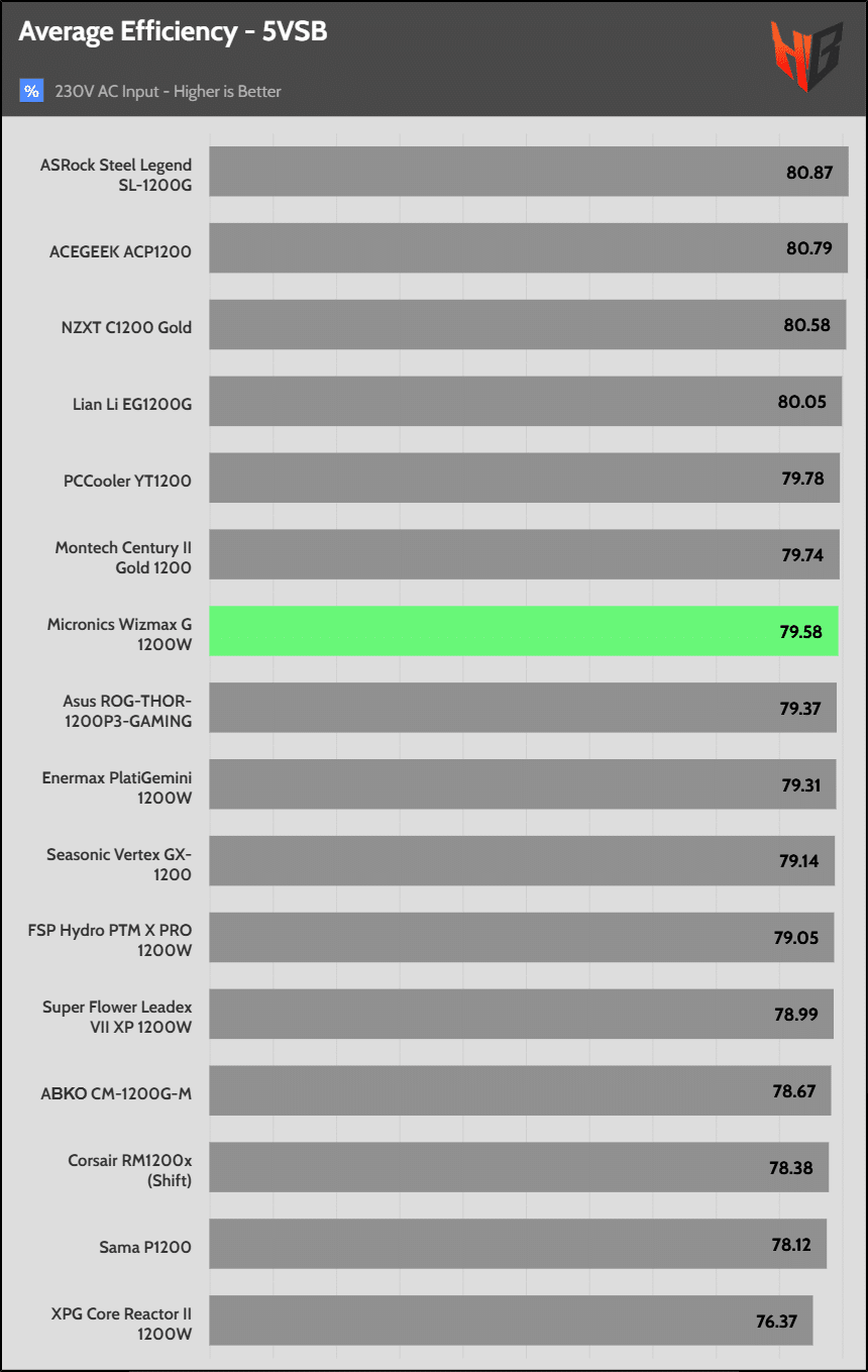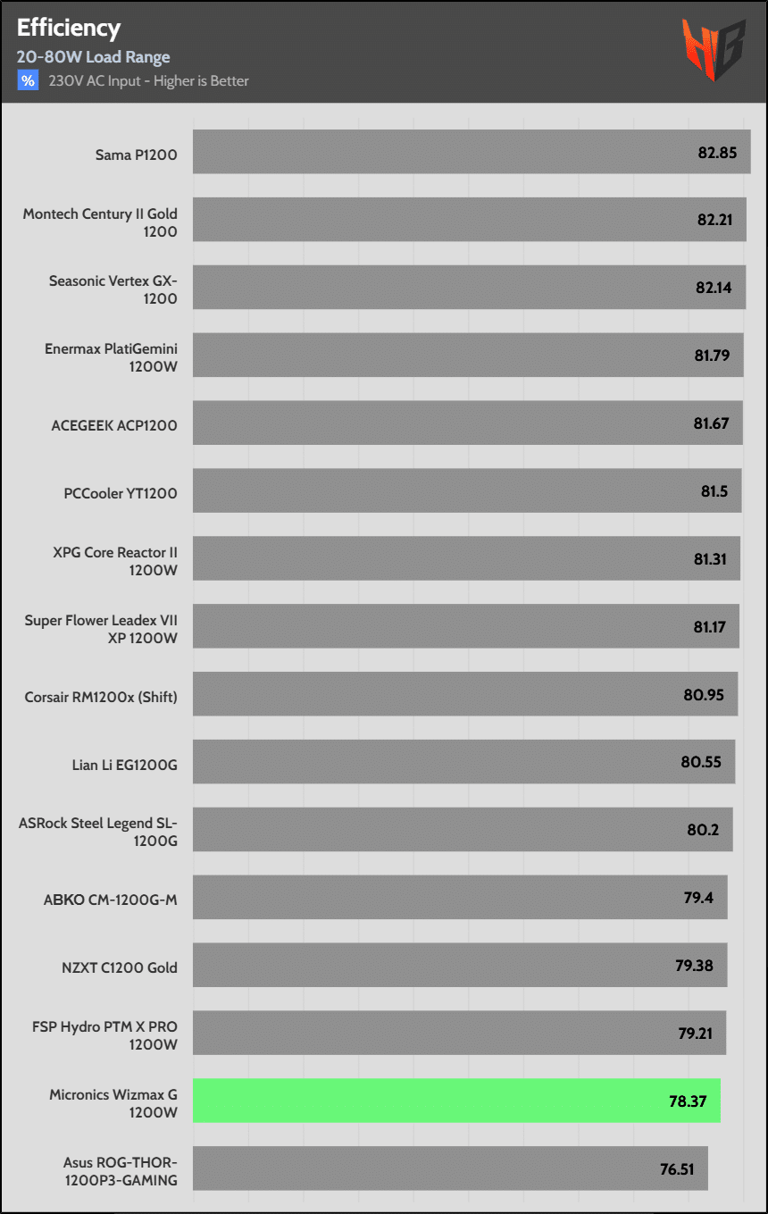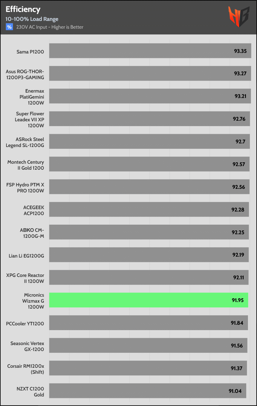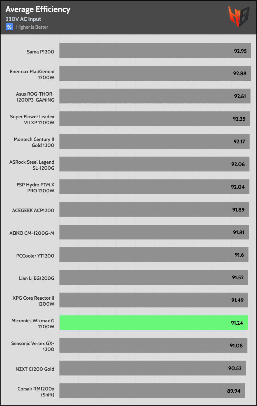 The average efficiency barely meets the Cybenetics Platinum criteria.