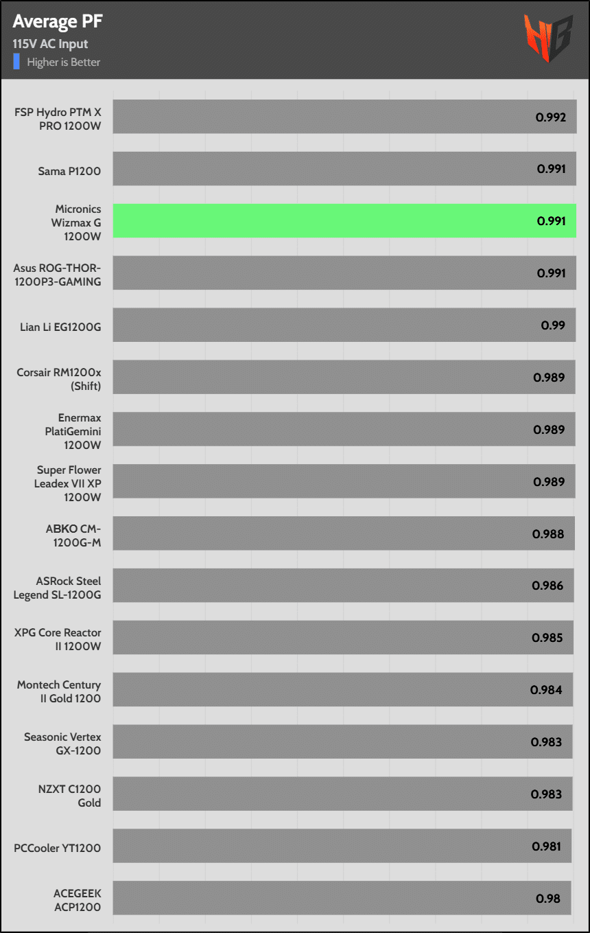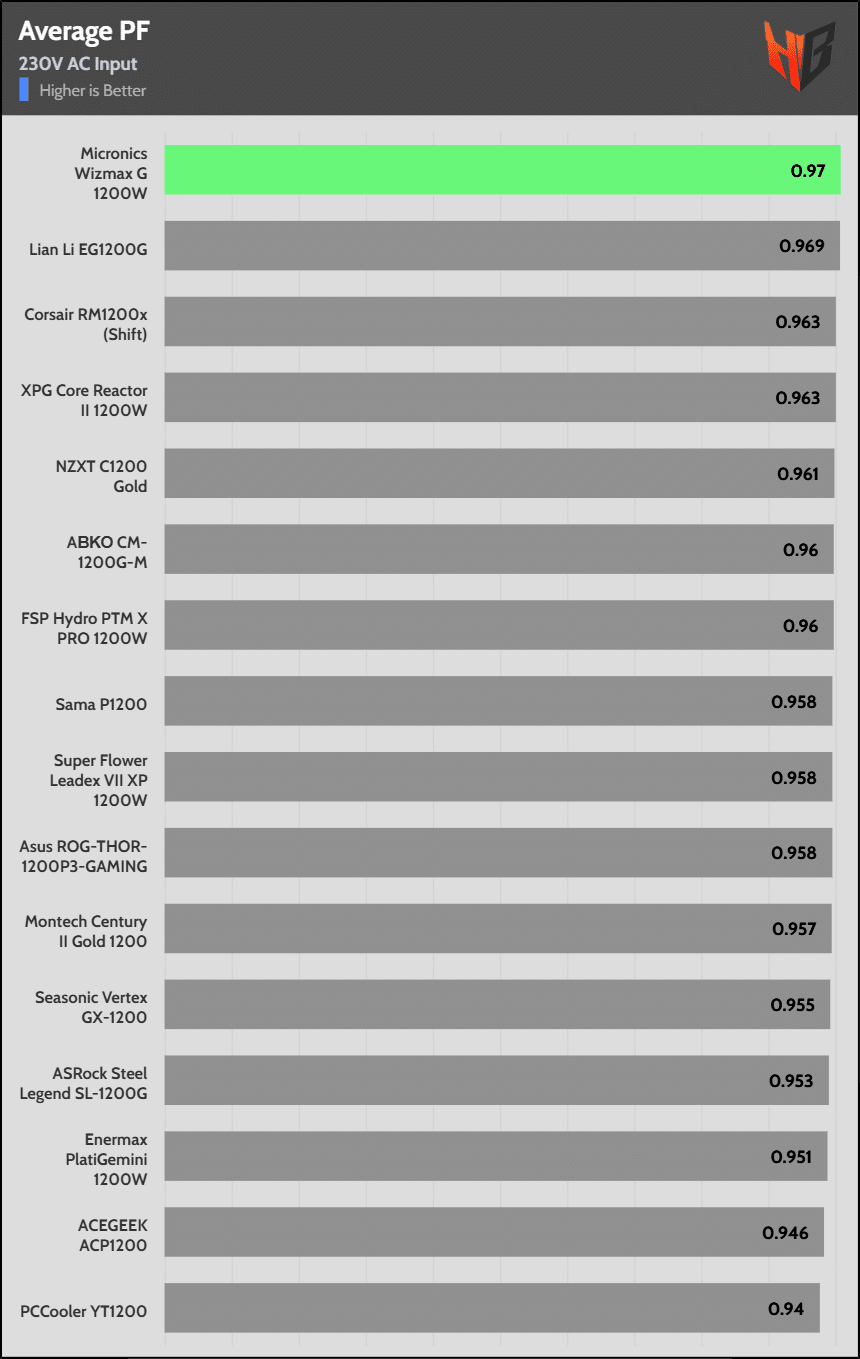 The PSU’s average efficiency with more than 1450 different load levels at 115V and 230V is depicted in the graphs below.