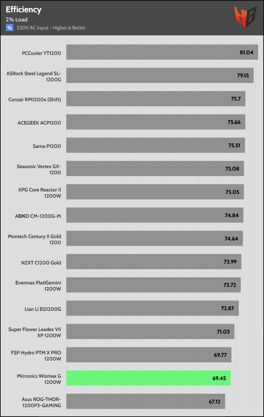 Compared to similar Wattage units, efficiency is not competitive across all efficiency ranges.
