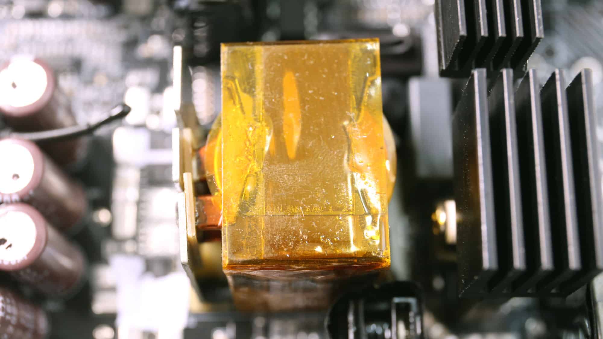 The PSU’s main transformer. One of its main functions is to isolate the primary and secondary sides electrically.