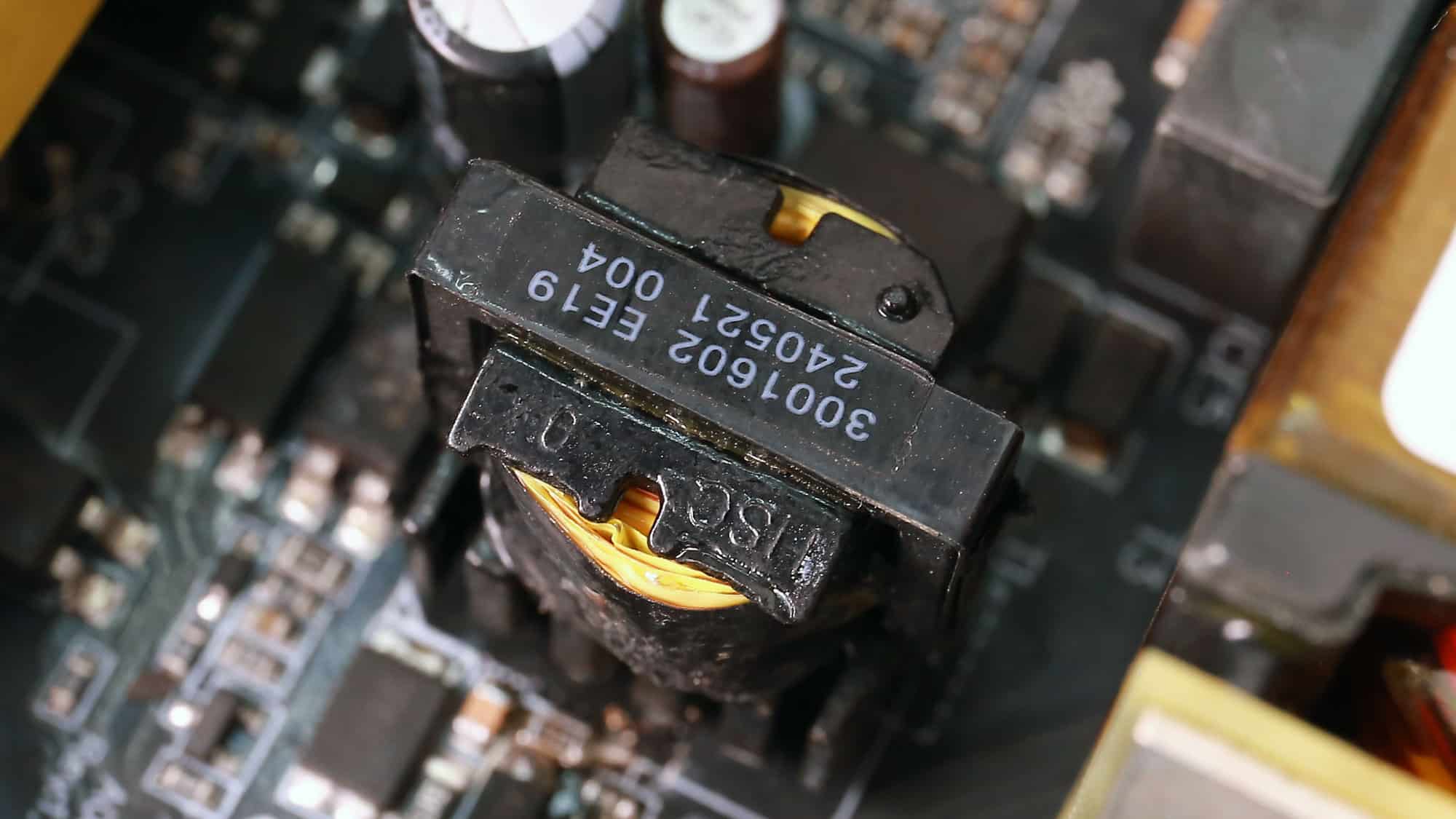 The two InfWay-On WMJ36N65F2 primary switching FETs are installed in a half-bridge topology, and an LLC resonant converter is used for higher efficiency.